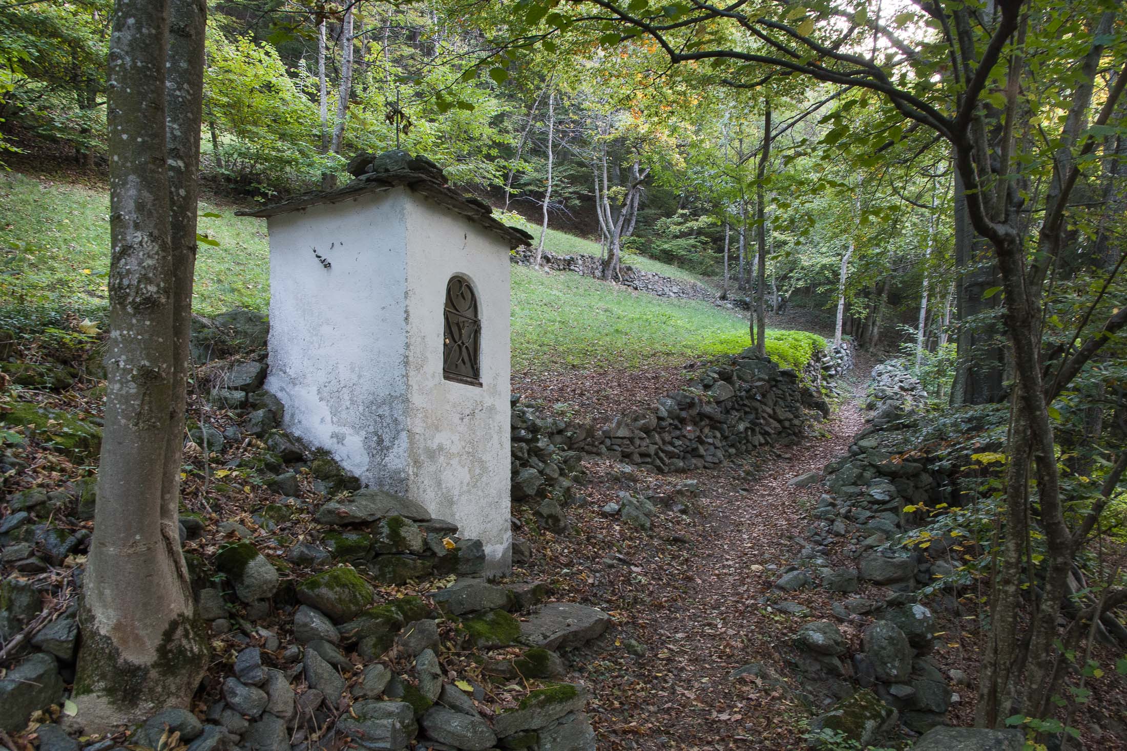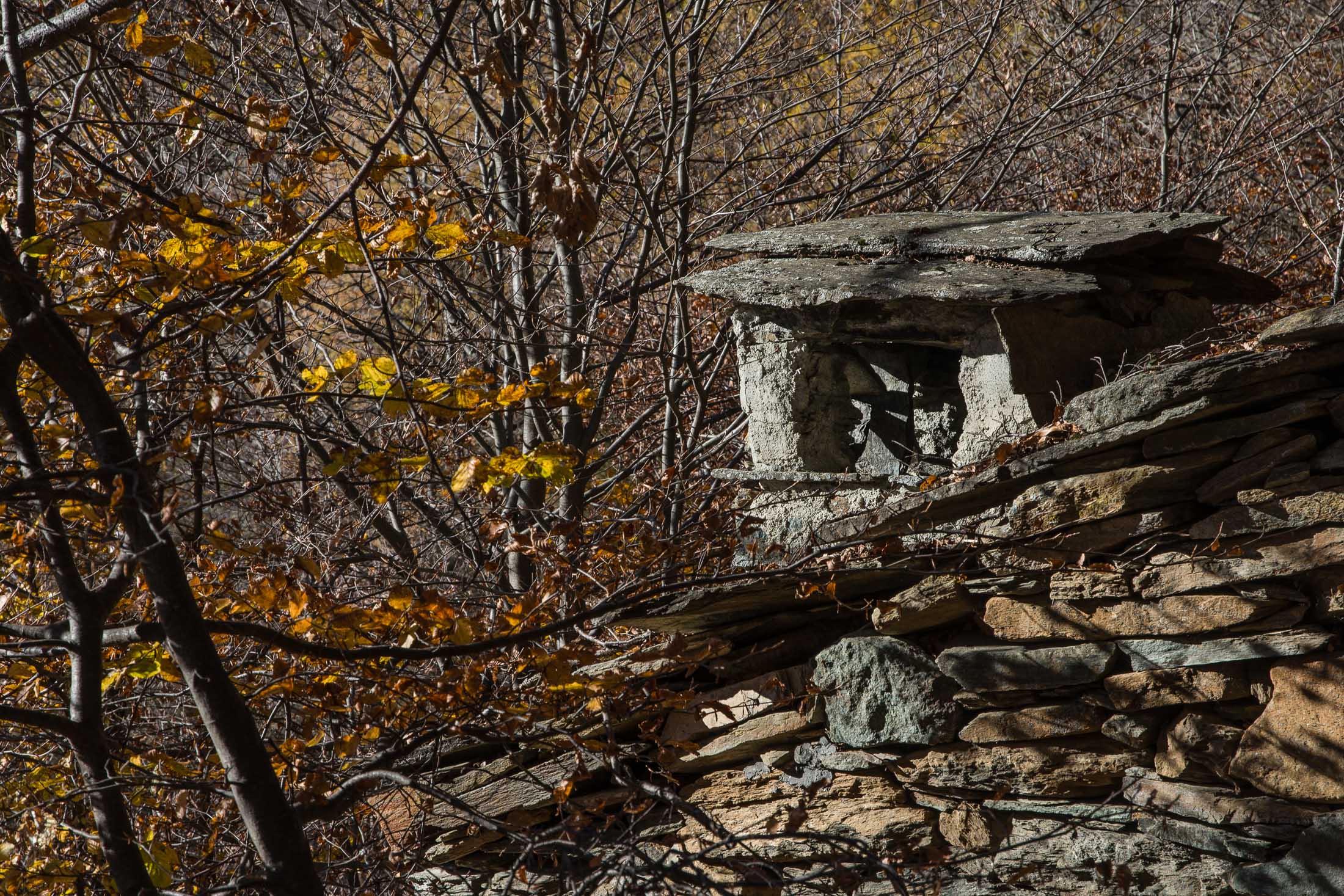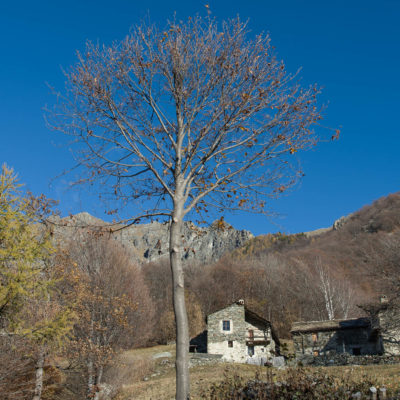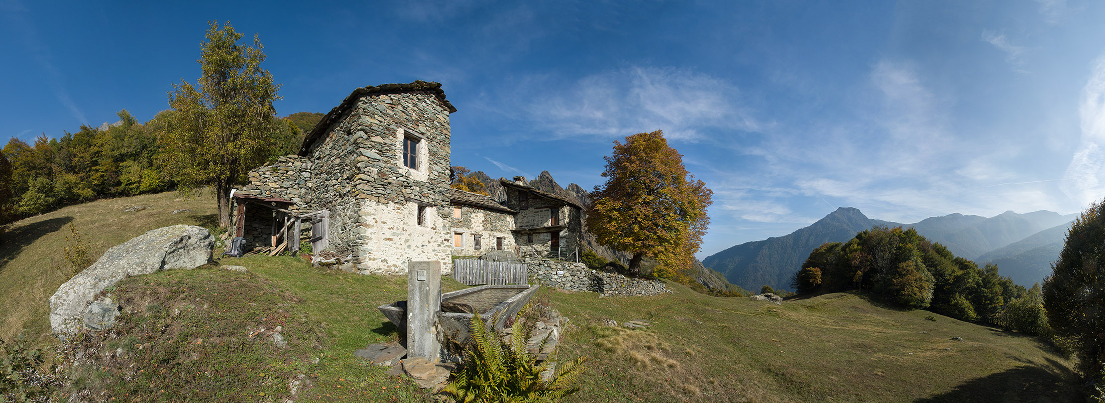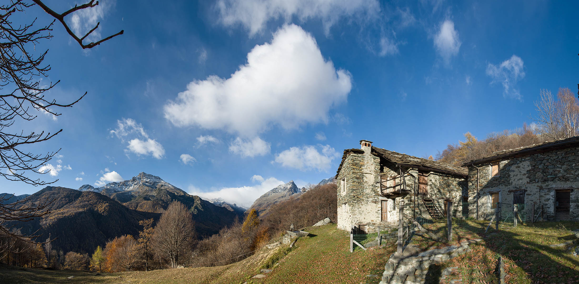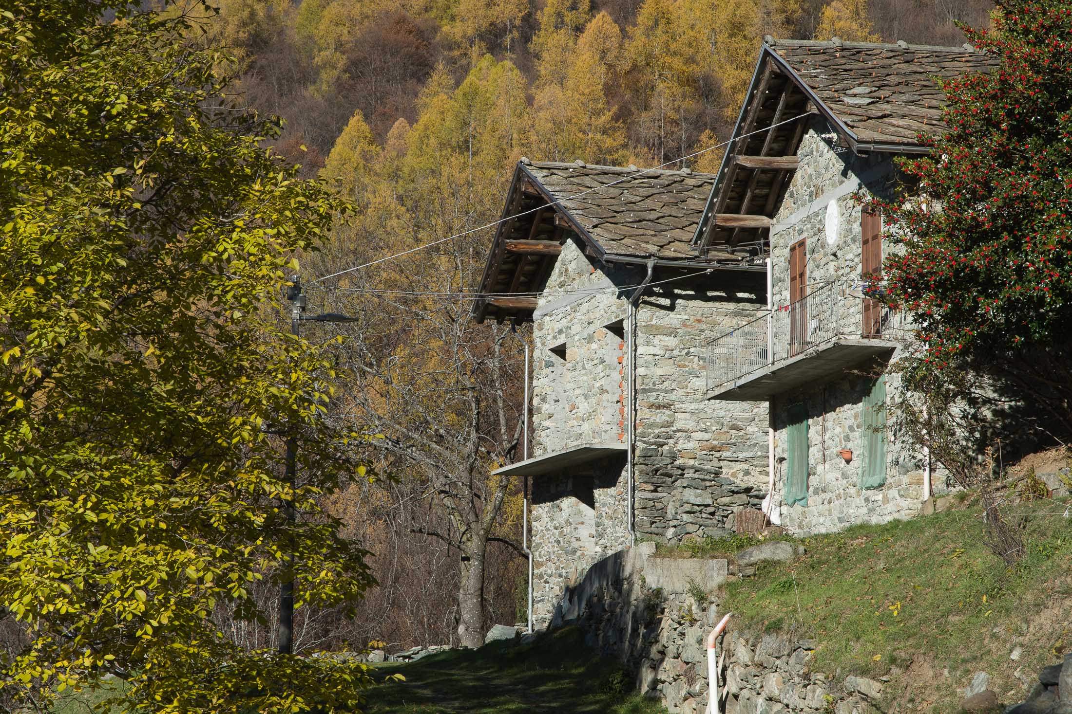 Vom Dorfplatz in Ala di Stura (1075 m) wandert man zunächst auf der Fahrstrasse, wenig später auf schöner Mulattiera zum oberhalb gelegenen Ortsteil Pian del Tetto (1148 m). Trotz der guten Erreichbarkeit und der Nähe zum Talboden wirkt der Ort ein wenig verschlafen. Frühmorgens herrscht hier eine friedvolle Stille, in den verwinkelten Gassen begegnet man keiner Menschenseele, viele der hübsch renovierten Häuser sind heute nur noch am Wochenende oder in Ferien bewohnt. Lediglich die wenigen Neubausünden entlang der Strasse stören ein wenig das ästhetische Wohlbefinden.