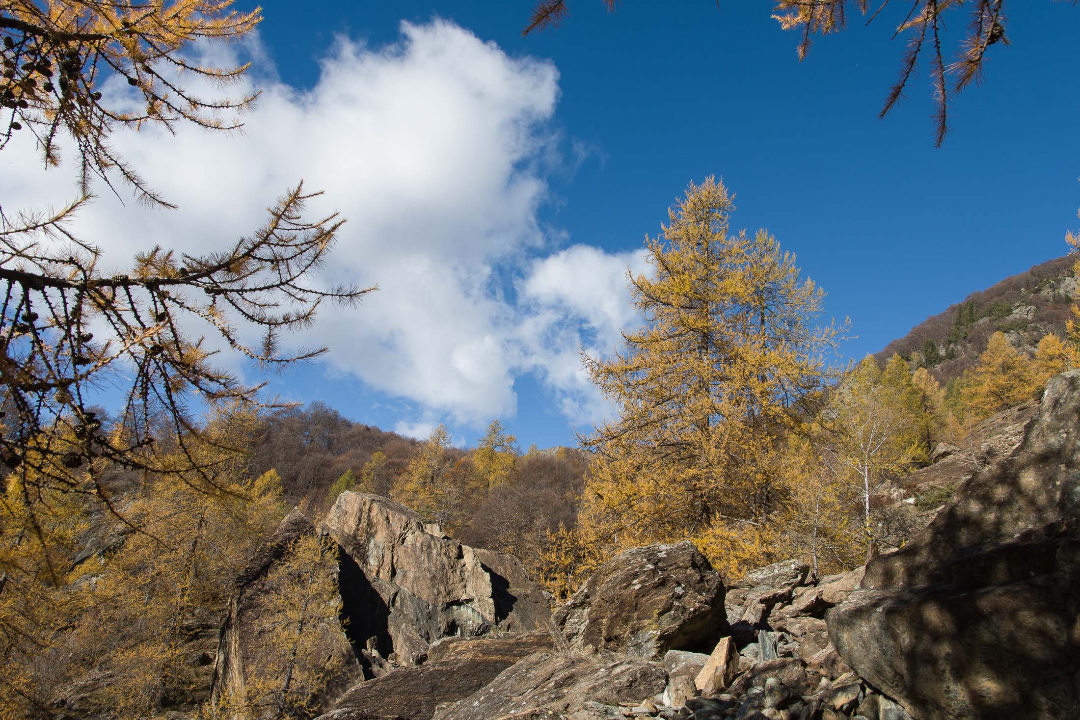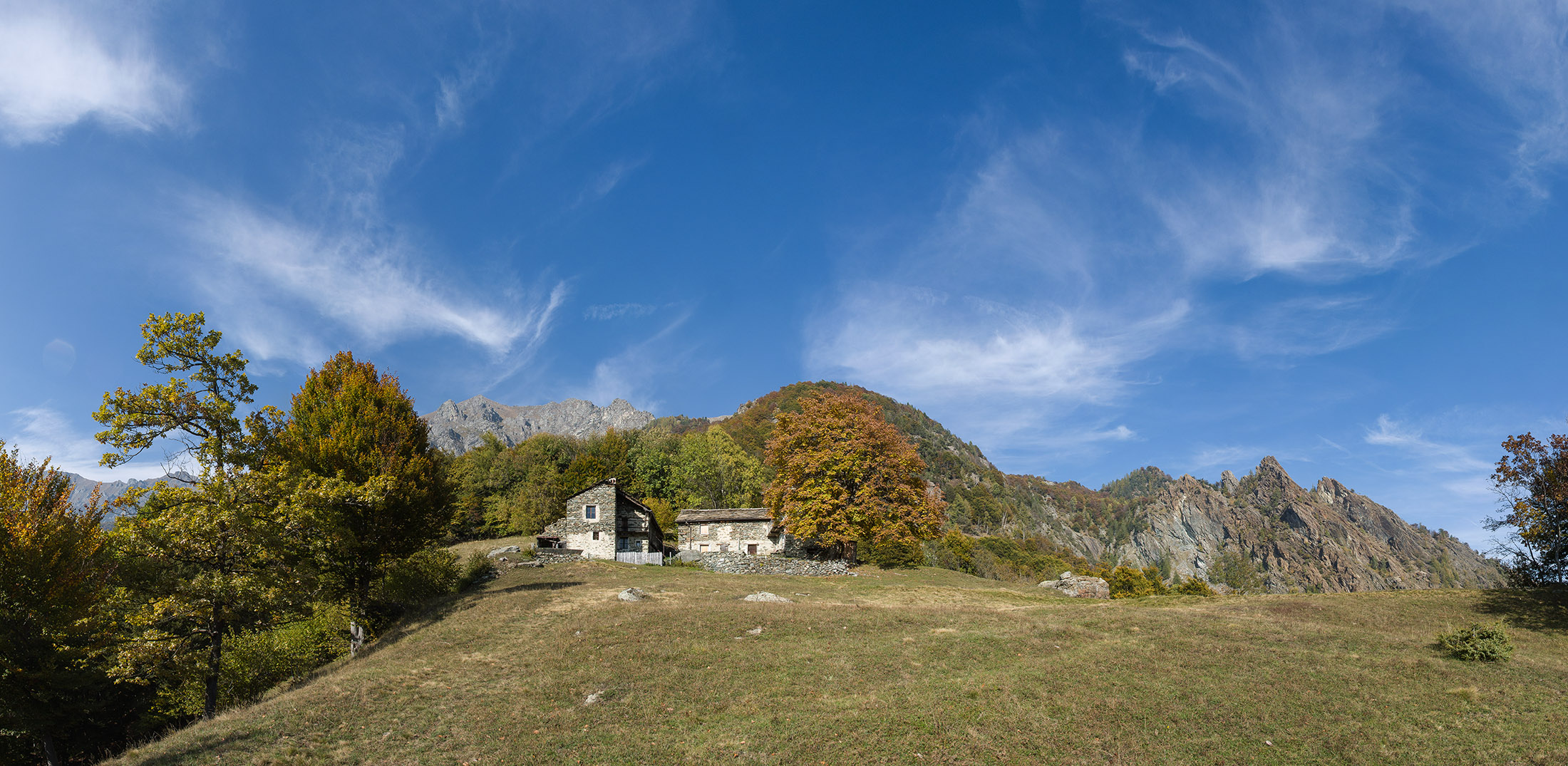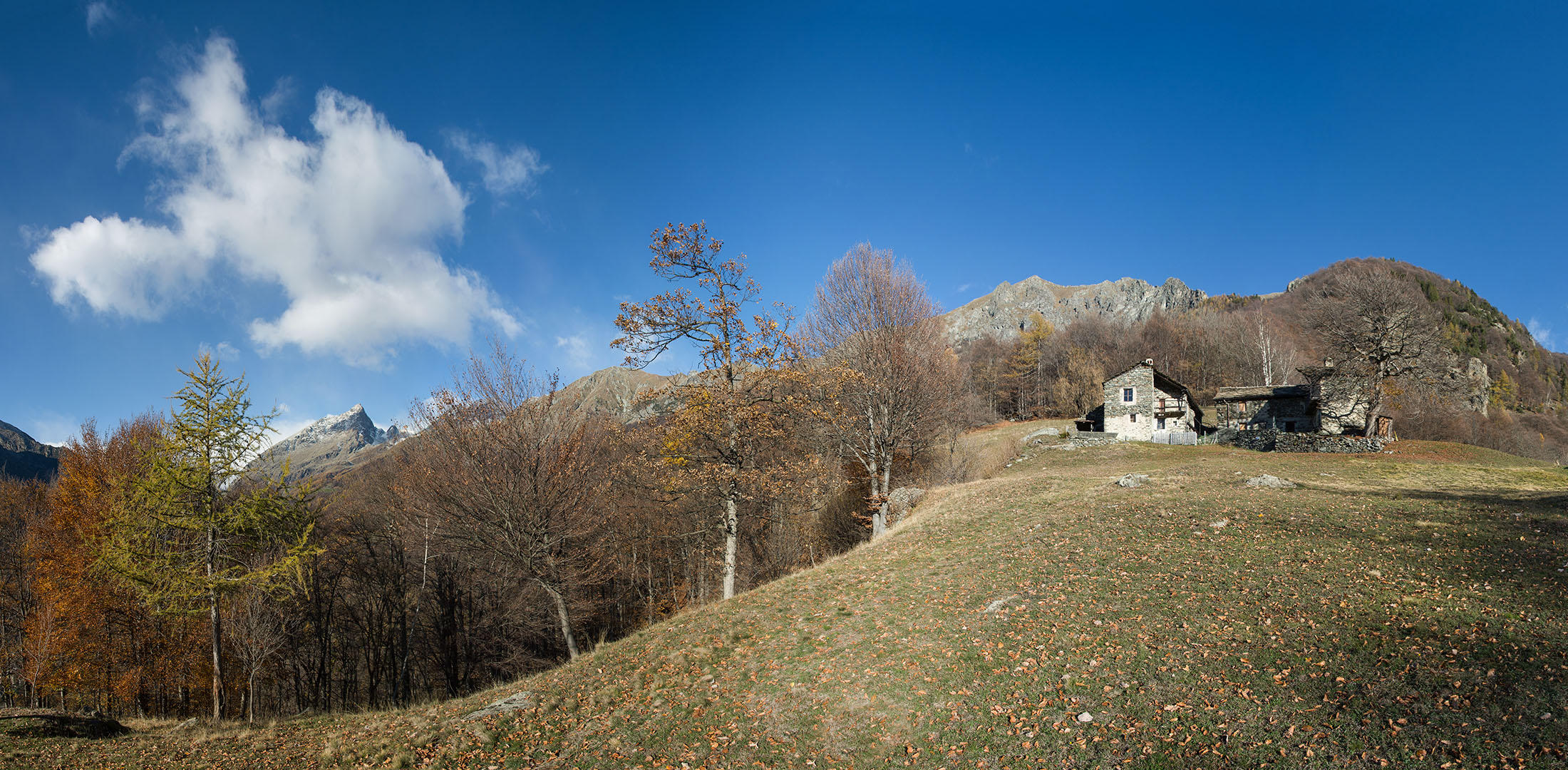 Abwechslungsreiche Rundwanderung auf abschnittsweise unmarkierten aber einfach zu begehenden Wegen in der Umgebung von Ala di Stura, ganz besonders lohnend im Herbst.