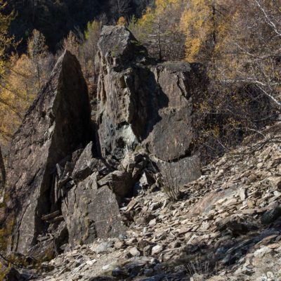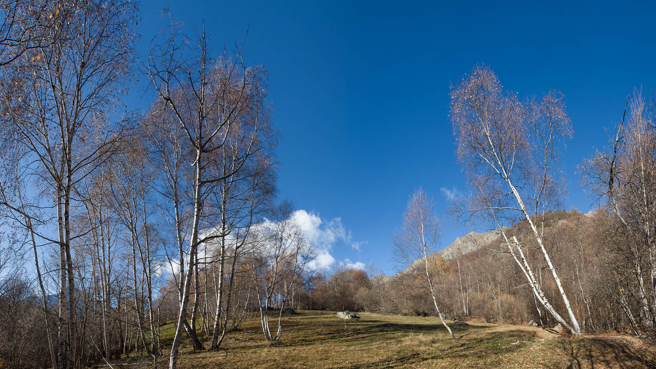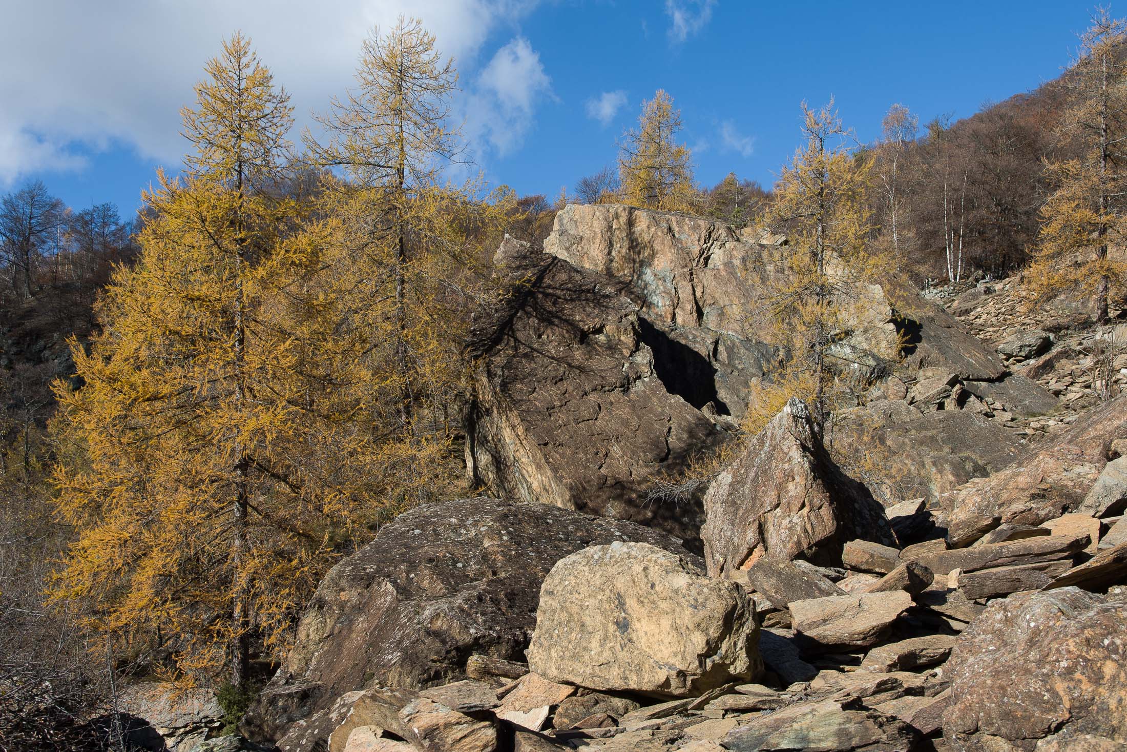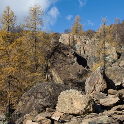 Abwechslungsreiche Rundwanderung auf abschnittsweise unmarkierten aber einfach zu begehenden Wegen in der Umgebung von Ala di Stura, ganz besonders lohnend im Herbst.