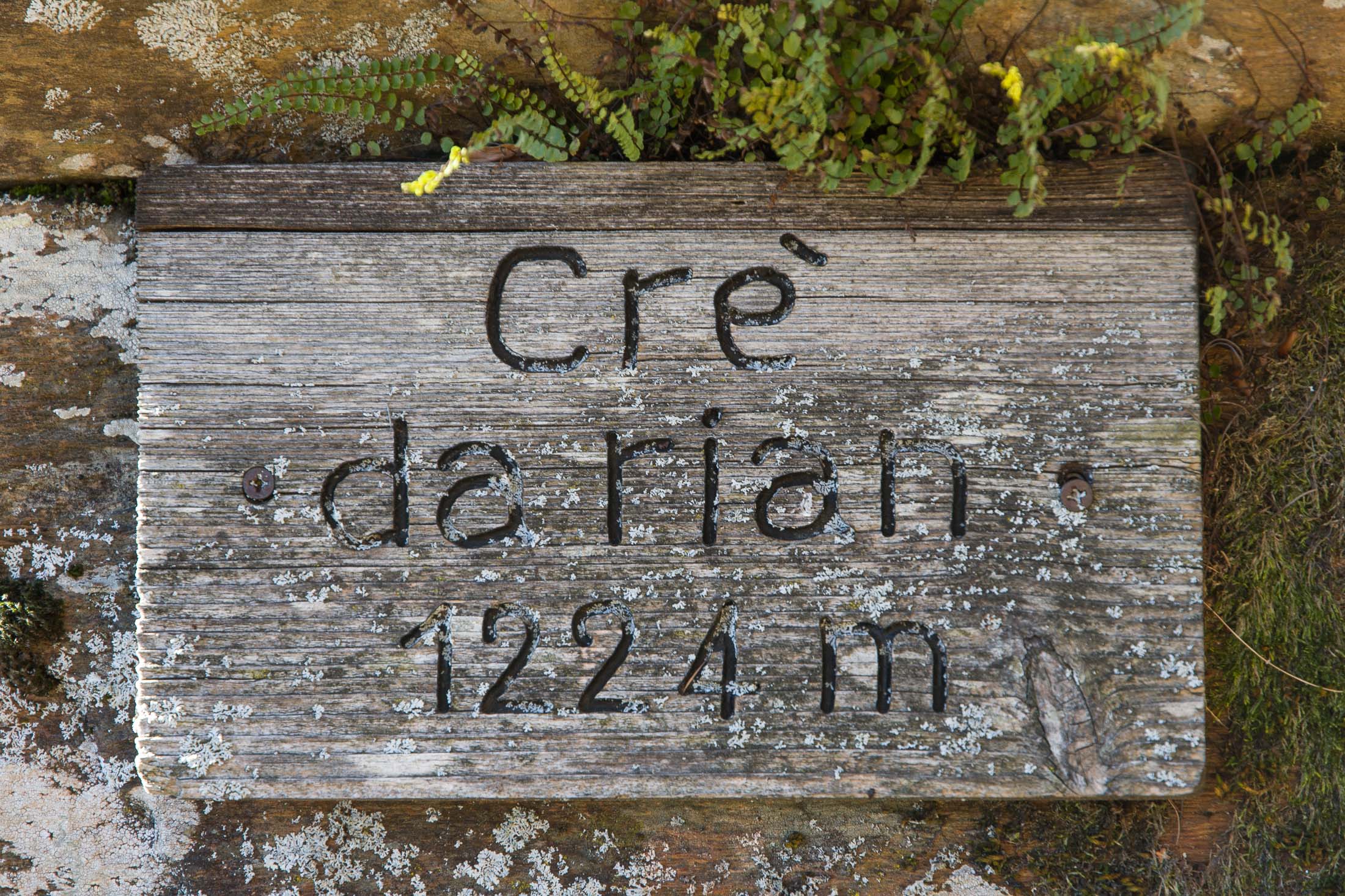 Bei der oben erwähnten Wegverzweigung folgt man der Beschilderung nach Credarian und geht geradeaus, vorbei an einem Bildstock, der direkte Weg nach Il Tourn bleibt unbeachtet. Auf schöner Mulattiera wandert man durch lauschigen Buchenwald in einer halben Stunde nach Credarian (1224 m), eine aufgegebene Alp am Rand eines mächtigen Geröllfelds unterhalb der felsigen Südflanke des Monte Plù (2197 m), die hier steil ins Tal abfällt. Ein aussergewöhnlich schöner Ort, trotz der steinigen und auf den ersten Blick unwirtlichen Umgebung, hölzerne Bänke und Tische laden zum Verweilen ein.
