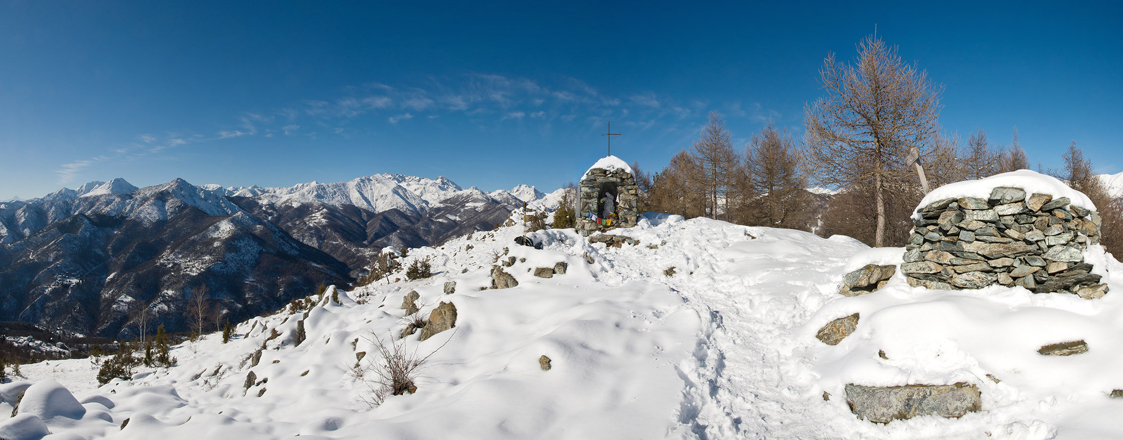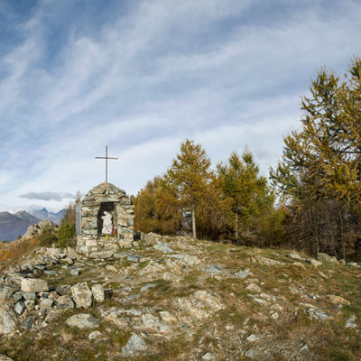 Bei der Infotafel am südlichen Ortsrand von Chiaves folgt man dem Wegweiser, zunächst geht es steil im Wald bergauf. Nach einer Viertelstunde erreicht man einen von vielen Birken übersäten Rücken und steigt über diesen auf teils steinigem Pfad in weiteren 20 Minuten zur Punta Serena (1162 m). Auf dem Gipfel befindet sich eine kleine Kapelle, die zu einer gemütlichen Rast einlädt, hier kann man stundenlang verweilen und seinen Gedanken freien Lauf lassen.