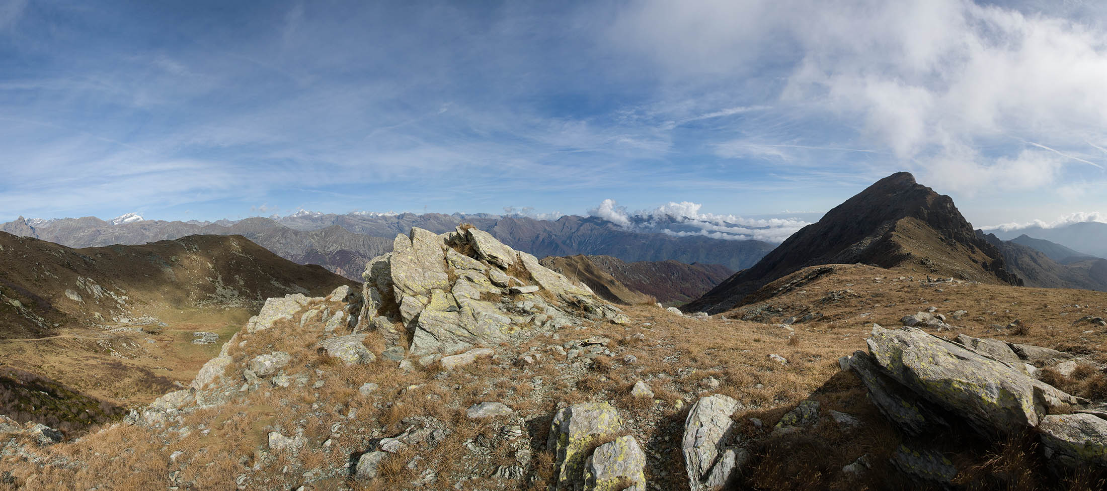 Die Rocca Moross ist ein überaus lohnendes Gipfelziel über dem Vallone dei Tornetti, ein abgeschiedenes und nur noch von wenigen Menschen bewohntes Seitental des Valle di Viù. Eine landschaftlich abwechslungsreiche Runde auf meist einfach zu begehenden Wegen, nur der Schlussanstieg ist recht steil. Der Gipfel ist wenig frequentiert, ausser an Schönwetterwochenenden begegnet man unterwegs kaum einer Menschenseele. Die Rocca Moross ist die höchste Erhebung auf dem langen Gratrücken zwischen dem Vallone dei Tornetti und dem Bassa Valle, ein wildes und zerklüftetes Felsmassiv mit zahllosen Zinnen und Türmen, das nach Süden steil abfällt.