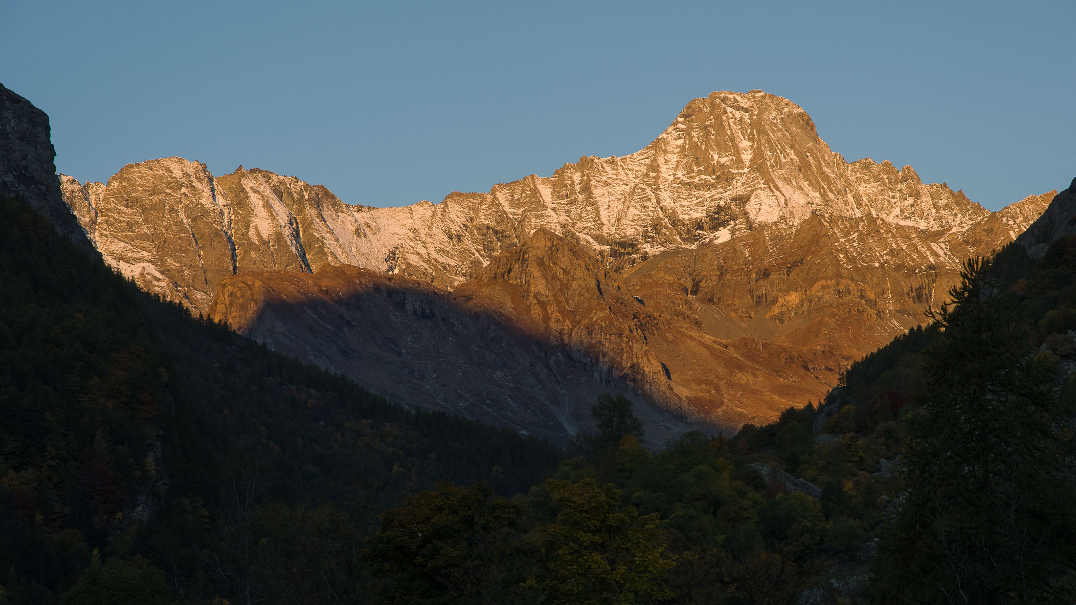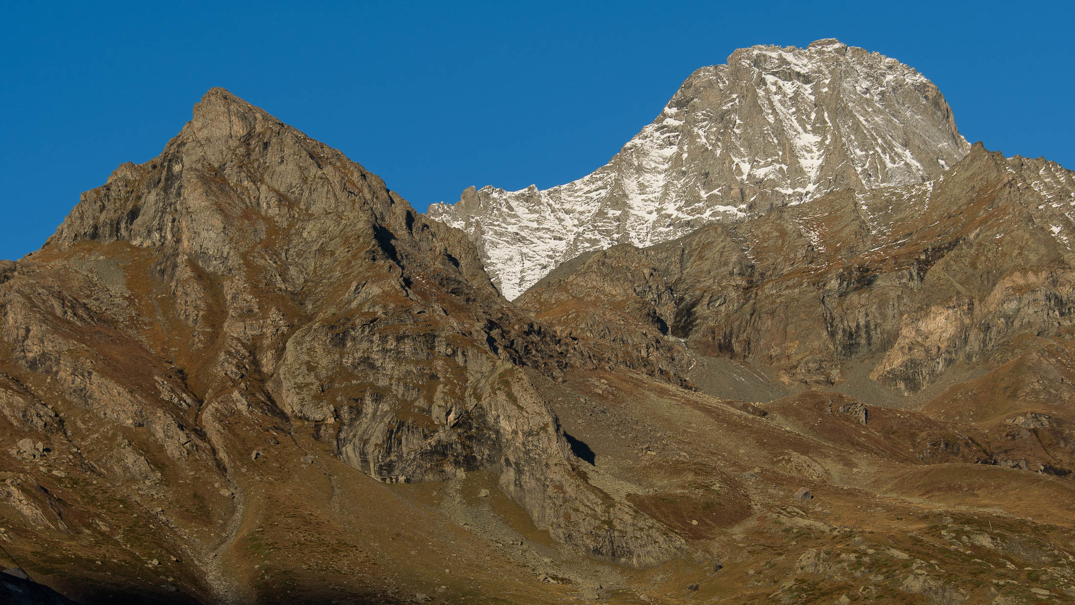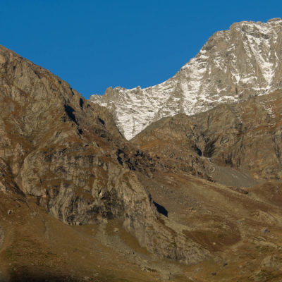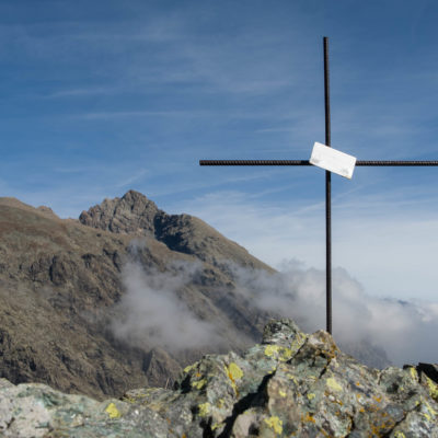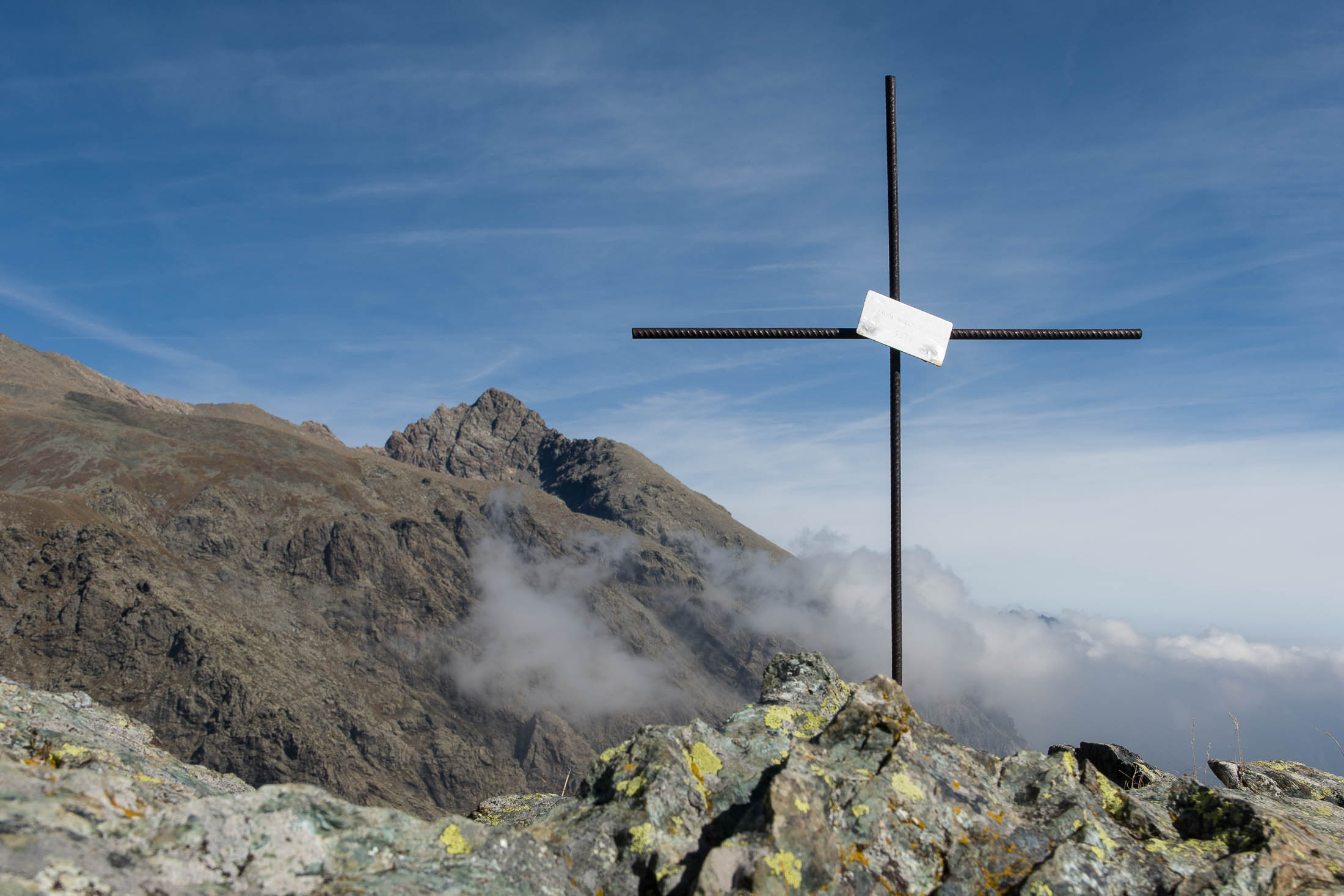 Los gehts. Jenseits des Parkplatzes bei dem historischen und überaus einladenden Ristorante Bricco lässt man die Zivilisation hinter sich und überquert wenig später auf einer Brücke (Wegweiser) den hier noch jungen Fiume Stura di Ala. Bereits nach wenigen Schritten macht sich Stille breit. Der Weg verschwindet im lichten Lärchenwald, kurz darauf hat man die Qual der Wahl. Zwei Möglichkeiten. Steil oder noch steiler mit einer leicht ausgesetzten Passage? Im Zweifel, vor allem bei Nässe, besser rechts gehen. Im weiteren Verlauf überwindet der gut markierte Pfad eine felsige Geländestufe, die hier steil zum Pian della Mussa abfällt. Eine Dreiviertelstunde später ist dieser ruppige Anstieg geschafft, die Umgebung wird sanfter. Vor einem die malerische Hochfläche des Pian Saulera. Lärchen, soweit das Auge reicht, kein Mensch unterwegs, ein würziger Duft von Harz liegt in der Luft, in der Ferne Kuhgebimmel, was für ein Frieden. Nach einer Weile kommt man zu einer Verzweigung von drei verschiedenen Wegen, die nur unzureichend ausgeschildert ist. Kein Grund zur Verwirrung. Der Weg zum Colle Sud del Tovetto bleibt zunächst unbeachtet, an gleicher Stelle trifft man ebenfalls auf die anfangs erwähnte zweite Aufstiegsvariante, die durch das wilde Vallone di Saulera weiter zum Passo delle Mangioire führt. Auf diesem in wenigen Minuten hinab zu den Alpgebäuden der Alpe Saulera (2095 m). Pause. Es wird Zeit, die tolle Aussicht zu geniessen. Über der gegenüberliegenden Talseite trohnt majestätisch die Uja di Ciamarella (3676 m), die höchste Erhebung der drei Lanzo-Täler, im Westen erhebt sich der Alpenhauptkamm mit der gewaltigen Ostwand der Bessanese (3604 m). Bereits zum Greifen nah der auffällige Felsklotz der Rocca Tovo, das Gipfelziel dieser Wanderung. Von der Alpe Saulera geht es nochmals kurz abwärts bis zu einer Hochfläche mit einer grossen Weide. Am östlichsten Ende der Ebene befindet sich ein Wegweiser, kurz darauf überquert man den Rio Saulera. Jenseits des Bergbaches geht es nun auf gut markiertem Weg steil bergauf, eine halbe Stunde später erreicht man den bereits von weitem sichtbaren Colletto del Tovo (2216 m). Von dort in Kürze auf einem mit Steinmännchen markiertem Pfad hinauf zum Gipfelkreuz der Rocca Tovo (2298 m). Das Panorama auf die hochalpine Kulisse des oberen Val d‘Ala ist eindrücklich, der sich bietende Tiefblick von der quasi senkrechten Abbruchkante auf den 500 m tiefer liegenden Pian della Mussa ist schwindelerregend. Stolpern ist hier verboten!
