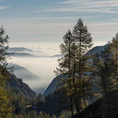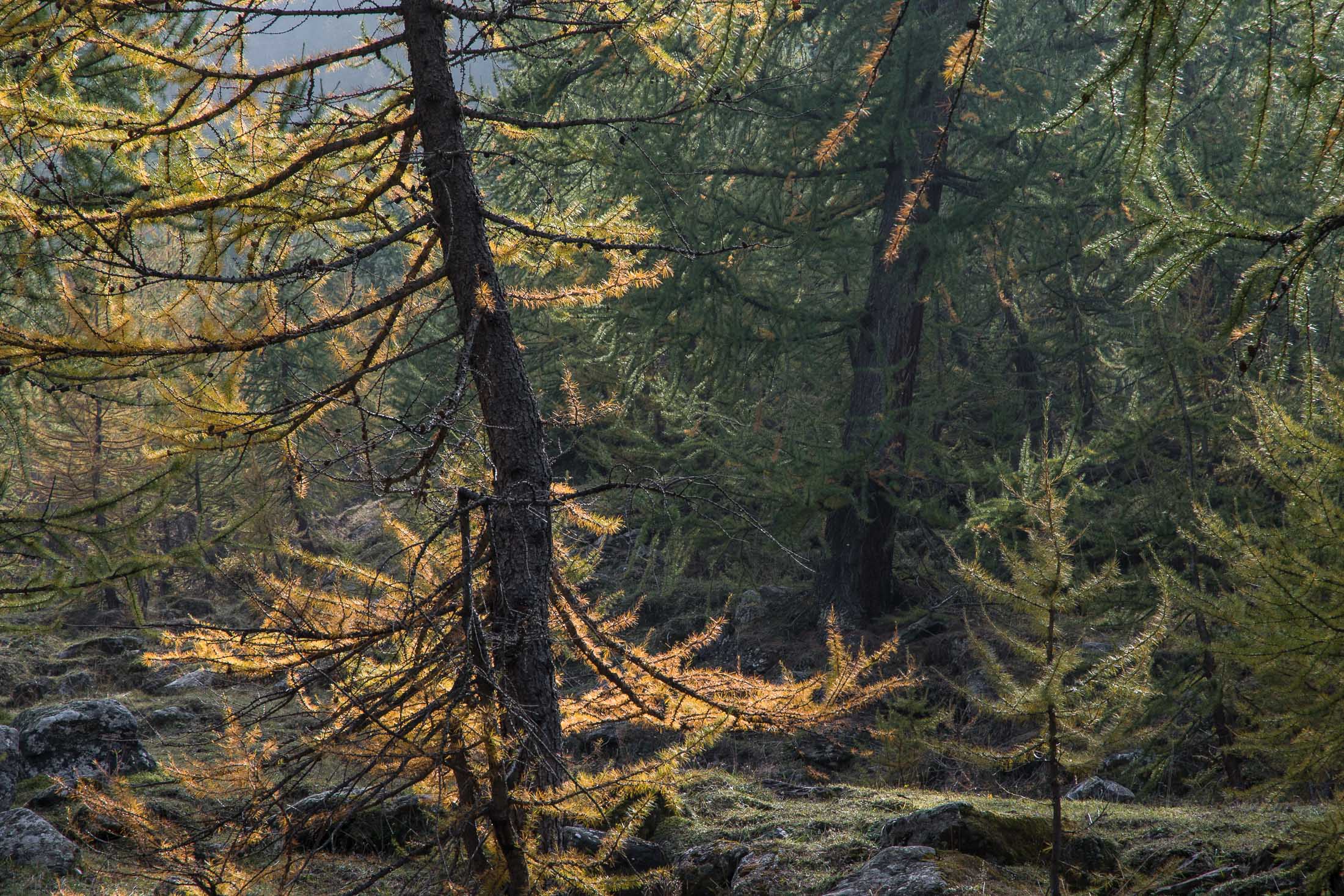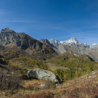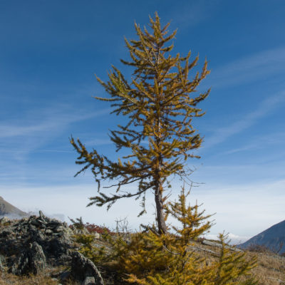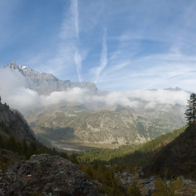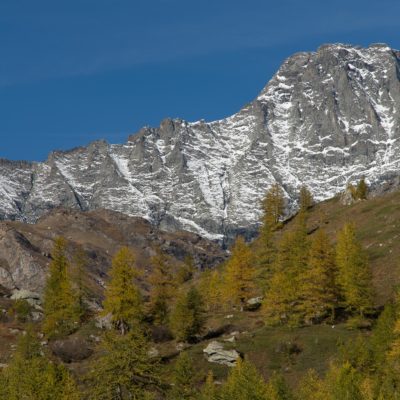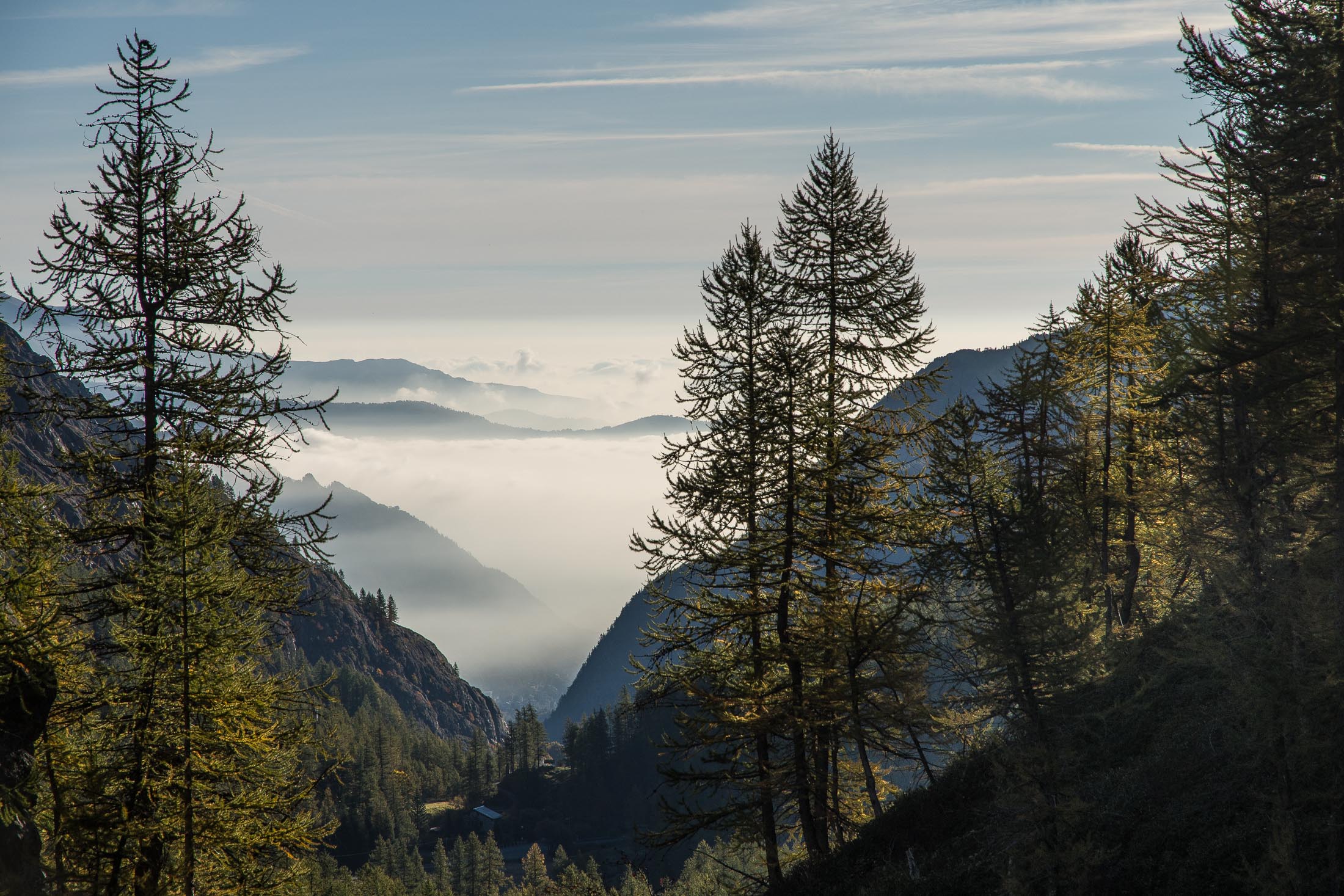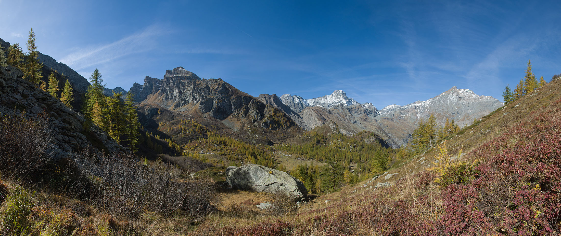 Ausgangspunkt der Tour ist der Pian della Mussa, eine zwei Kilometer lange Hochebene mit wunderschönem Lärchenbestand, welche einst von einem eiszeitlichen See geformt wurde. Der Pian della Mussa wurde (leider) mit einer Strasse erschlossen und ist ein von Turin bequem und relativ schnell erreichbares Ausflugsziel. An Sonntagen mit schönem Wetter verwandelt sich die malerische Hochfläche nicht selten in einen gigantischen Parkplatz. Hier erlebt man Italien hautnah, die einen gehen spazieren, die anderen kommen nur hierher gefahren, um im Restaurant zu Mittag zu essen. Andere wiederum zelebrieren ein riesiges Picknick auf der Wiese oder in der Nähe des Autos, eine überaus beliebte Freizeitbeschäftigung vieler Stadt-Italiener. Viele sind auch einfach nur auf der Suche nach etwas Abkühlung von der im Sommer brütend heissen Tiefebene. Wo soviele Menschen beisammen kommen, bleiben negative Auswüchse nicht aus. Wenigstens ein Minimum an Umweltbewusstsein ist leider bei vielen Italienern noch nicht in den Köpfen angekommen. Nicht selten wird Müll einfach in der Landschaft zurückgelassen, geschweige denn ist man bereit, diesen bei der Entsorgung zu trennen. 100 oder 200 km mit dem Auto, nur für ein Picknick im Grünen? Ist das heute noch zeitgemäss? Fragen über Fragen in einer grenzenlos (über)motorisierten Nation. Der Rummel beschränkt sich jedoch nur auf die Ebene selbst oder auf die Restaurants in der näheren Umgebung, am frühen Abend ist der Spuk vorbei und es kehrt Ruhe ein. Unter der Woche begegnet man hier bis auf den Ferienmonat August kaum jemandem. Zwischen November und April bleibt die Strasse aufgrund der Wintersperre geschlossen.
