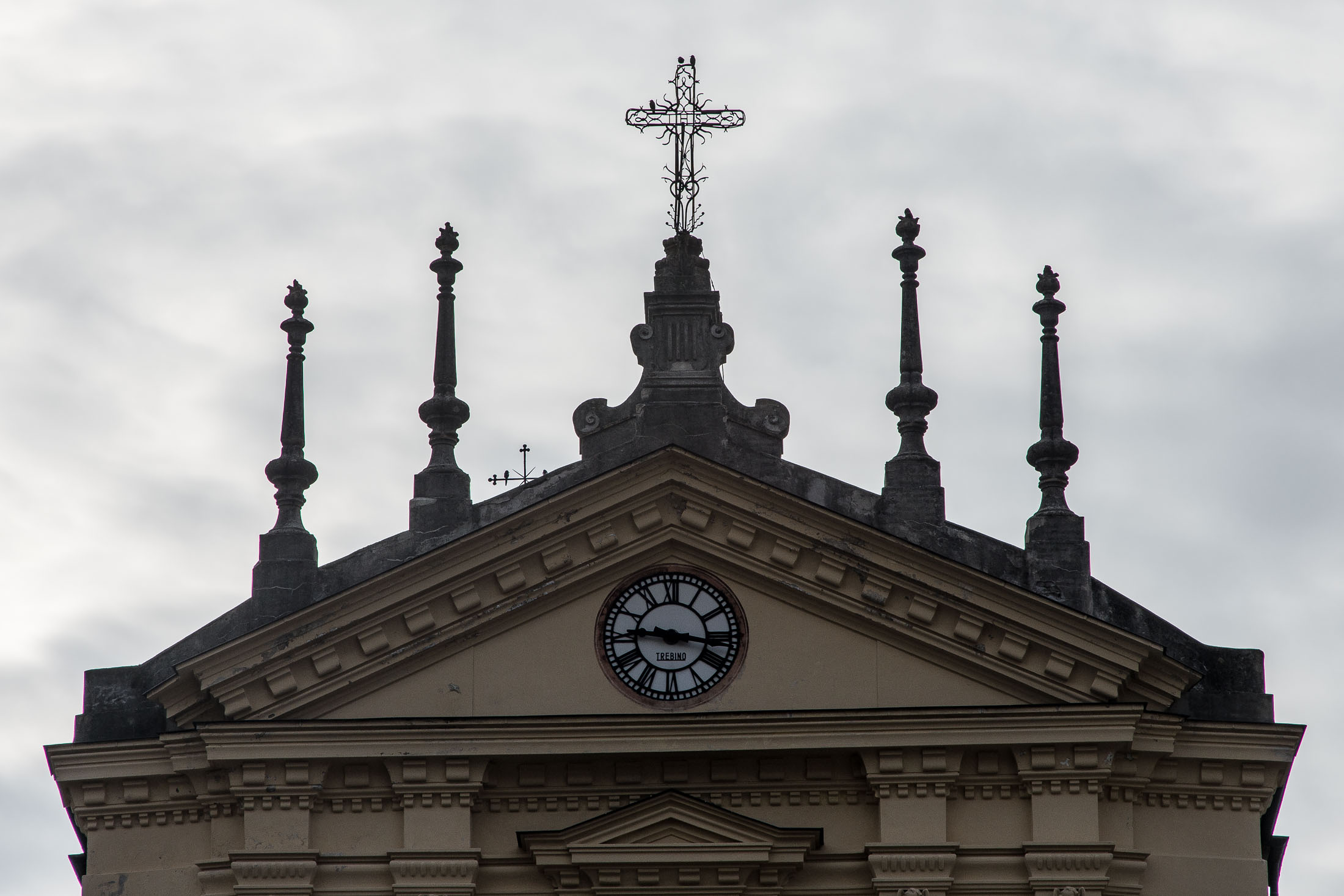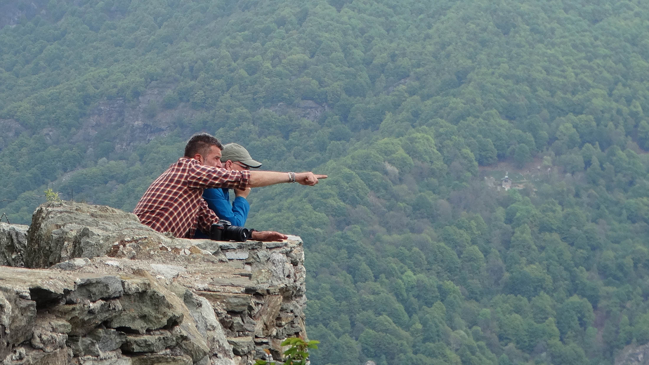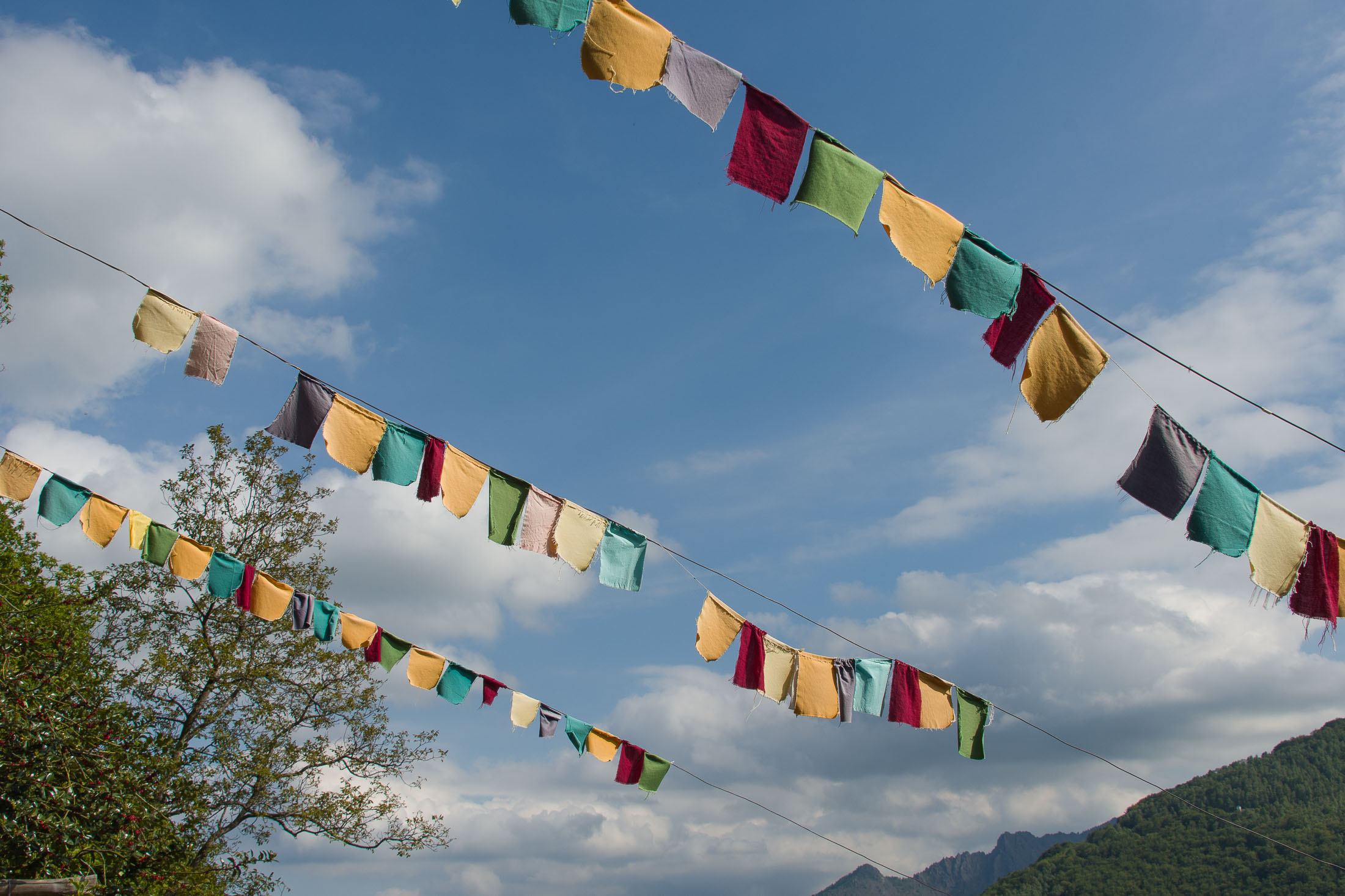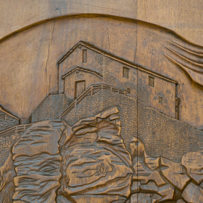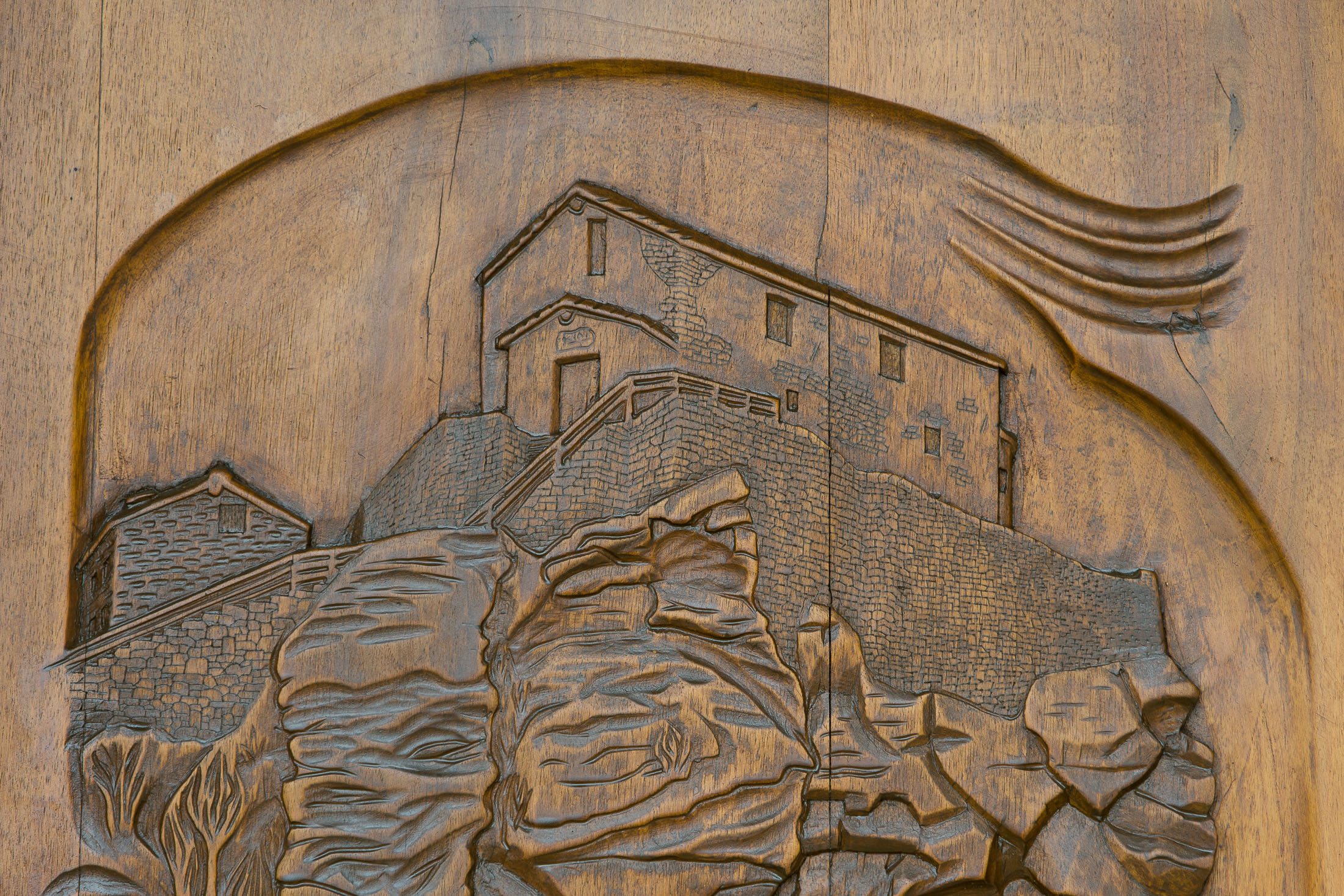 Nach einer Weile erreicht man den Pian di Ceres (891 m), eine ehemalige Sommersiedlung auf einer aussichtsreichen Lichtung, die heute nicht mehr bewohnt ist. Verschlossene Türen und Fenster, an den Häusern bröckelt der Putz. Es ist still, nur die Blätter der Bäume rascheln im Wind, Menschen scheinen hier schon lange nicht mehr zu wirtschaften. Die Umgebung versinkt im üppigen Grün, wo einst Tiere weideten, stehen heute wieder Bäume und wildes Gestrüpp. Ein stimmungsvoller und friedlich dahinschlummernder Ort, mit traurigem Beigeschmack. Jenseits der Gebäude mündet die Mulattiera in einen unbefestigten Fahrweg, dem man einen kurzen Moment folgt. Am Wegesrand einige verstreute Ruinen, verwildertes Kulturland und die kleine Cappella degli Appestati (940 m). Zumindest der Glaube an Gott scheint hier die Zivilisation überdauert zu haben. Nach wenigen Minuten zweigt rechts die Fortsetzung der Mulattiera ab, kurz darauf kommt man an einer sogenannten Balm vorbei. Eine Balm ist ein meist an den Rändern abgemauerter Felsüberhang, der den früheren Bergbauern als Lagerstätte, Unterschlupf, an manchen Orten sogar als einfache Behausung diente. Der Weg wird steiler, nach einer Weile passiert man die Cappella della Madonna degli Angeli (1080 m). Das beschauliche Kirchlein steht auf einer kleinen Lichtung im Wald und wird von engagierten Einheimischen in ehrenamtlicher Arbeit gepflegt und instandgehalten. Im weiteren Verlauf windet sich der einfach zu begehende Weg zwischen knorrigen Kiefern hinauf auf einen bewaldeten Rücken. Hier lohnt ein ganz kurzer Abstecher, auf Pfadspuren steigt man in Kürze auf eine felsige Anhöhe. Zur Belohnung gibt es bereits einen kleinen Vorgeschmack auf das Ziel des Tages, der Blick auf das gegenüberliegende Santuario di Santa Cristina ist wirklich grandios. Von dem schönen Aussichtspunkt zurück zum Hauptweg, dann geht es überraschend kurz bergab, kurz darauf darf man die verlorenen Höhenmeter prompt wieder aufsteigen. Zum Schluss noch eine steile Treppe hinauf, ein schweisstreibendes Vergnügen. Ziel erreicht. An heissen Sommertagen ist man gekocht, wenn man hier oben ankommt. Erst mal verschnaufen, dann in aller Ruhe umschauen. Hinter den jahrhundertealten dicken Mauern, die das Kirchenareal umziehen, tun sich Abgründe auf, ziemlich steile. Das Santuario di Santa Cristina (1340 m) ist eine spektakulär auf einem exponierten Felsen gelegene Wallfahrtskirche aus dem 15. Jahrhundert. Sie befindet am unmittelbaren Ende des Kammes, der das Val d‘Ala und das Val Grande di Lanzo voneinander trennt, mit schönem Panorama über die beiden Täler.