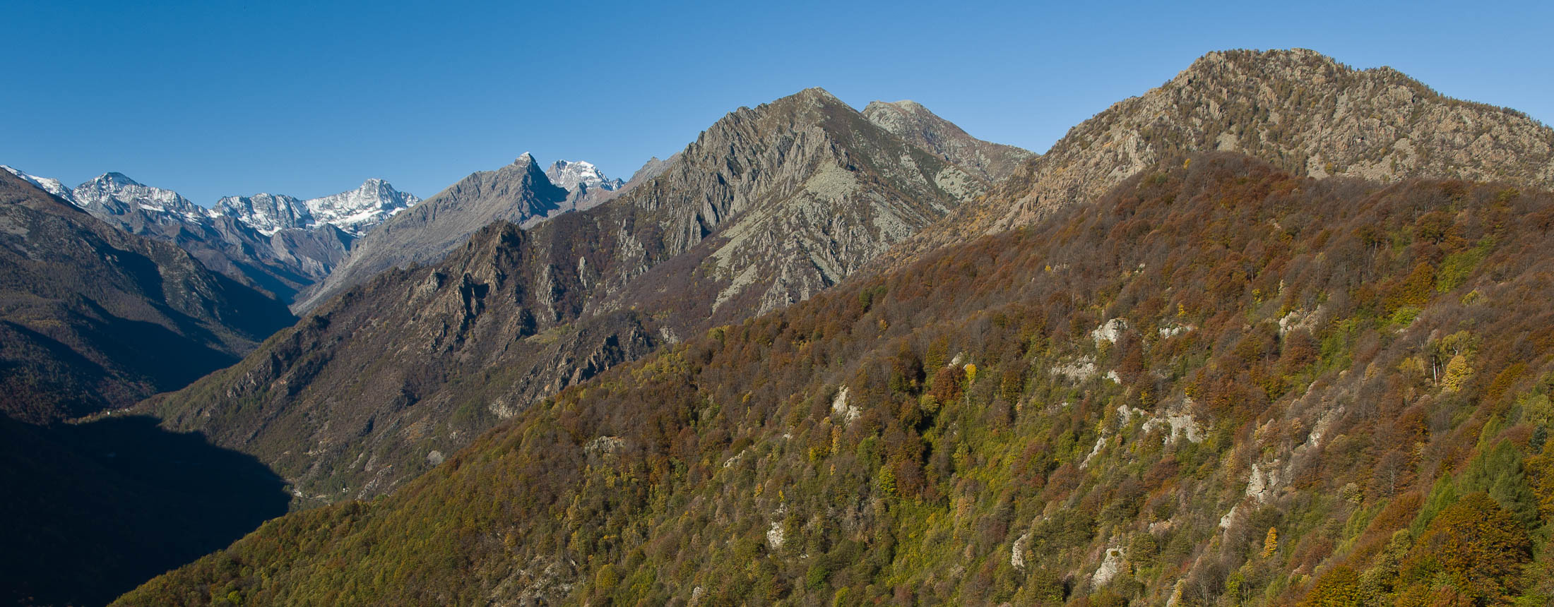 Abwechslungsreiche Rundwanderung auf schattigen Waldwegen über dem unteren Val d‘Ala, ganz besonders schön im Frühjahr und Herbst.