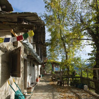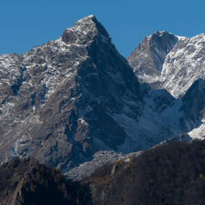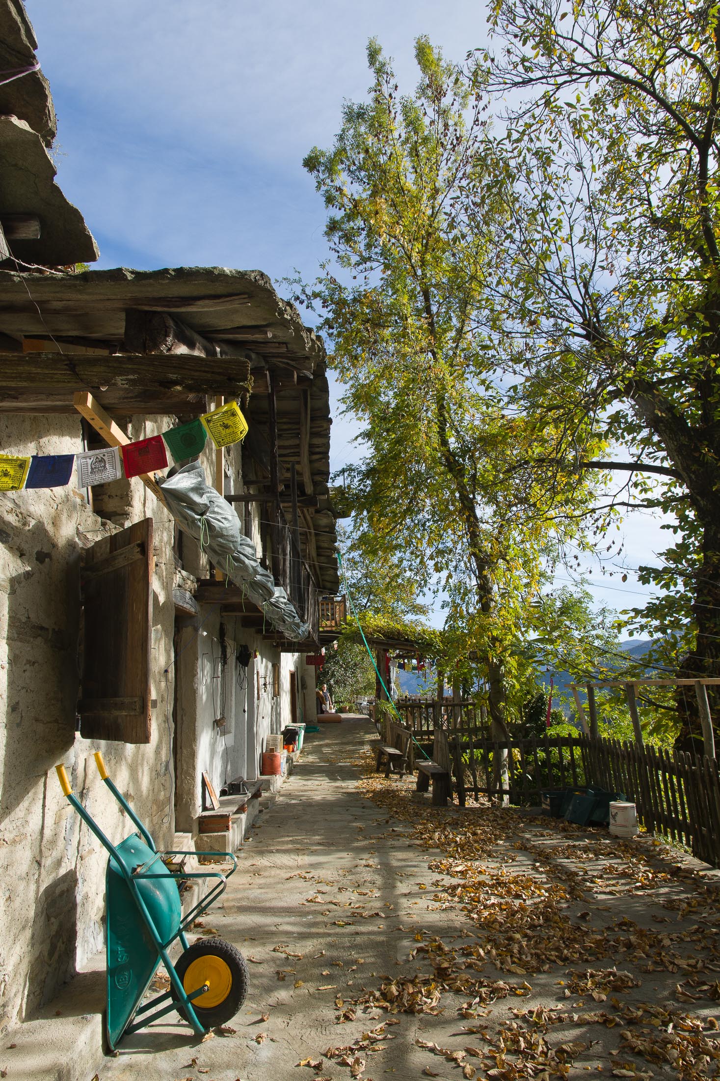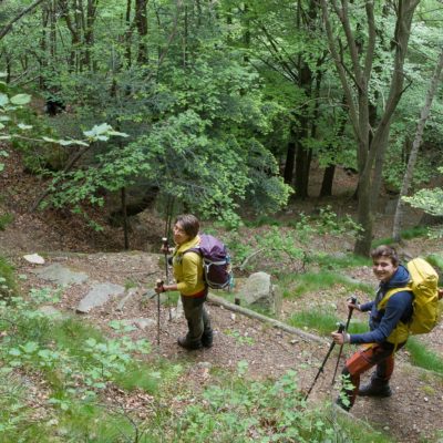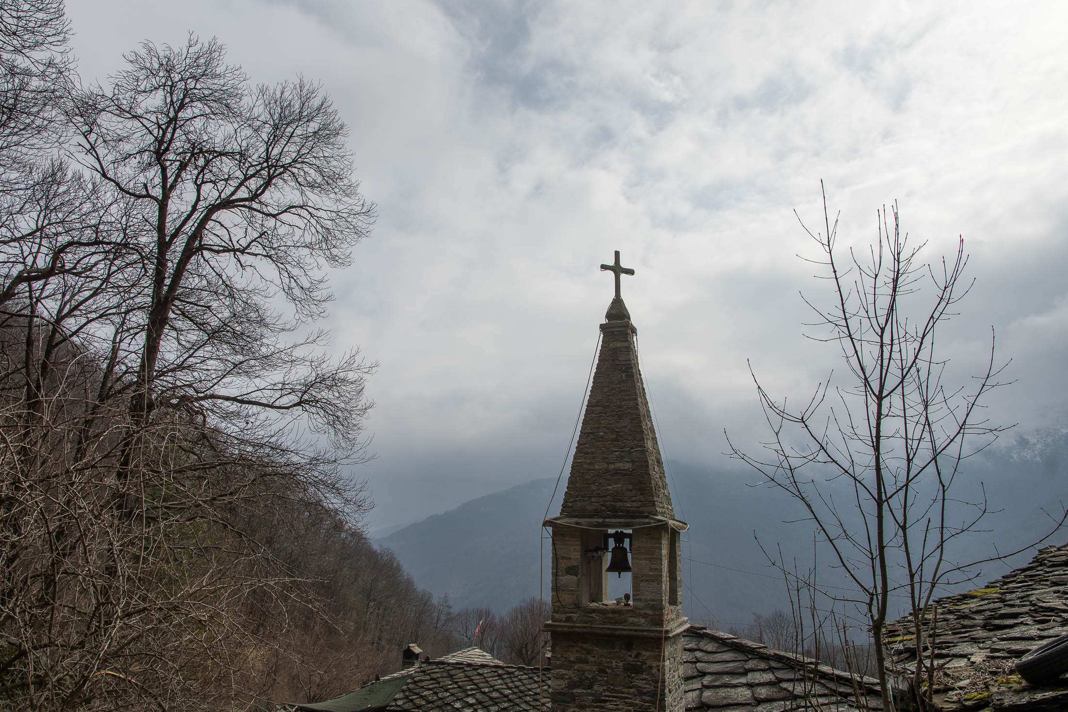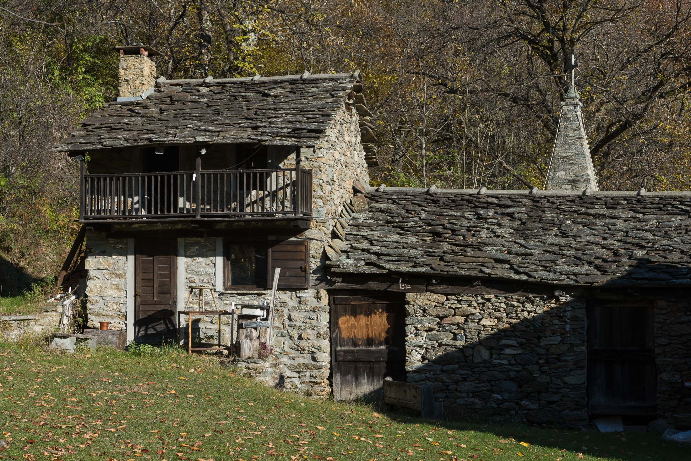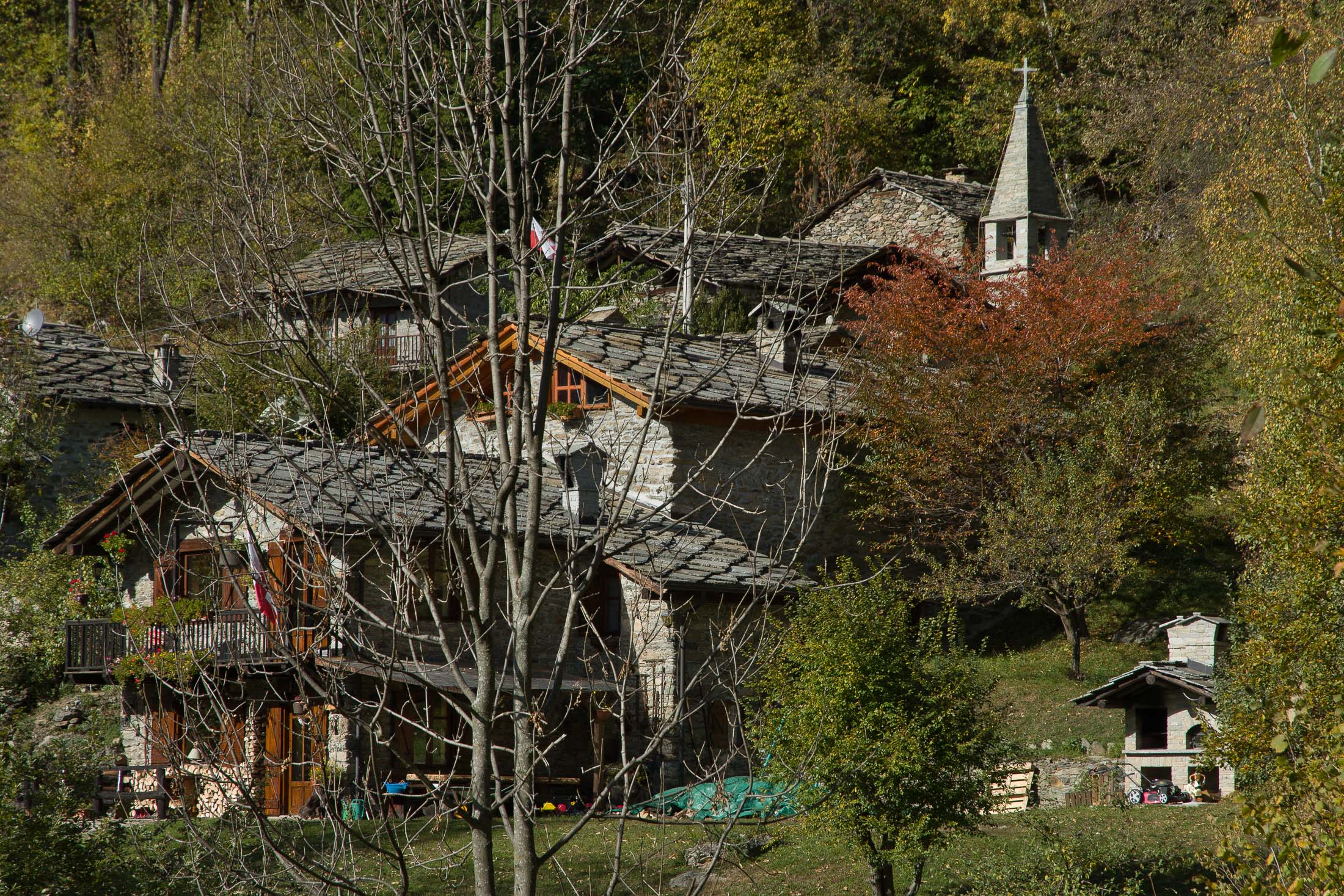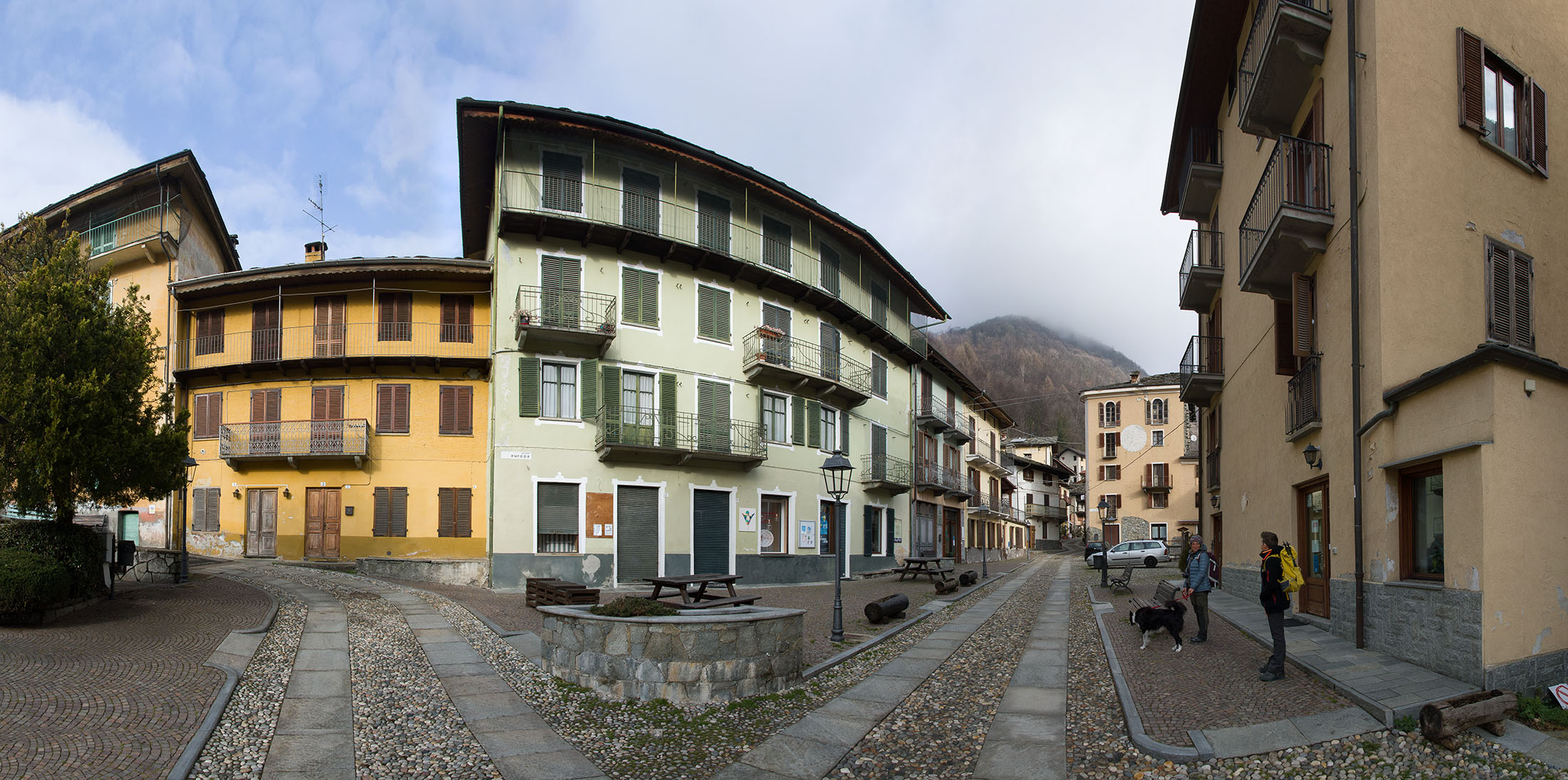 Die Wanderung beginnt in Ceres (703 m), ein kleiner Marktort an den Talausgängen der beiden Täler Val d‘Ala und Val Grande di Lanzo mit verwinkelten Gassen und lebendigen Plätzen. Vom Parkplatz an der Piazza Municipio vor der grossen Kirche geht es wenige Schritte abwärts zur Piazza Europa, dort die Via Roma nehmen, vorbei an einigen sehenswerten Häuserzeilen bis zu einem Wegweiser. Weiter auf der Via Cavalieri di Vittorio Veneti hinauf bis zum oberen Ortsende. Hinter den letzten Häusern beginnt eine wunderschöne, teils gepflasterte Mulattiera (= Saumweg oder Maultierweg), die anfangs auf einer Treppe entlang von aufgeschichteten Trockensteinmauern durch Kastanienwald führt. Die Früchte der Esskastanie, auch Maronen genannt, war eines der Grundnahrungsmittel der einstigen Bergbewohner, unter anderem für die Herstellung von Brot. Kastanien gedeihen auf der Alpensüdseite an sonnigen warmen Hängen gebietsweise bis zu einer Höhe von 1200 m.