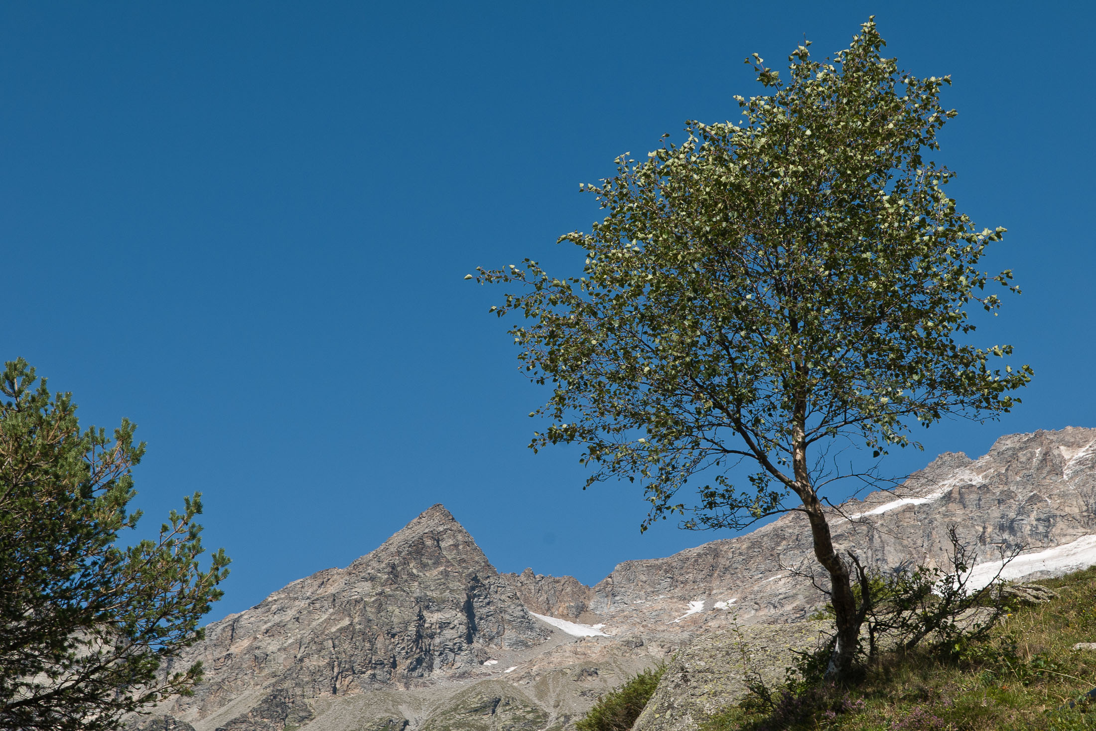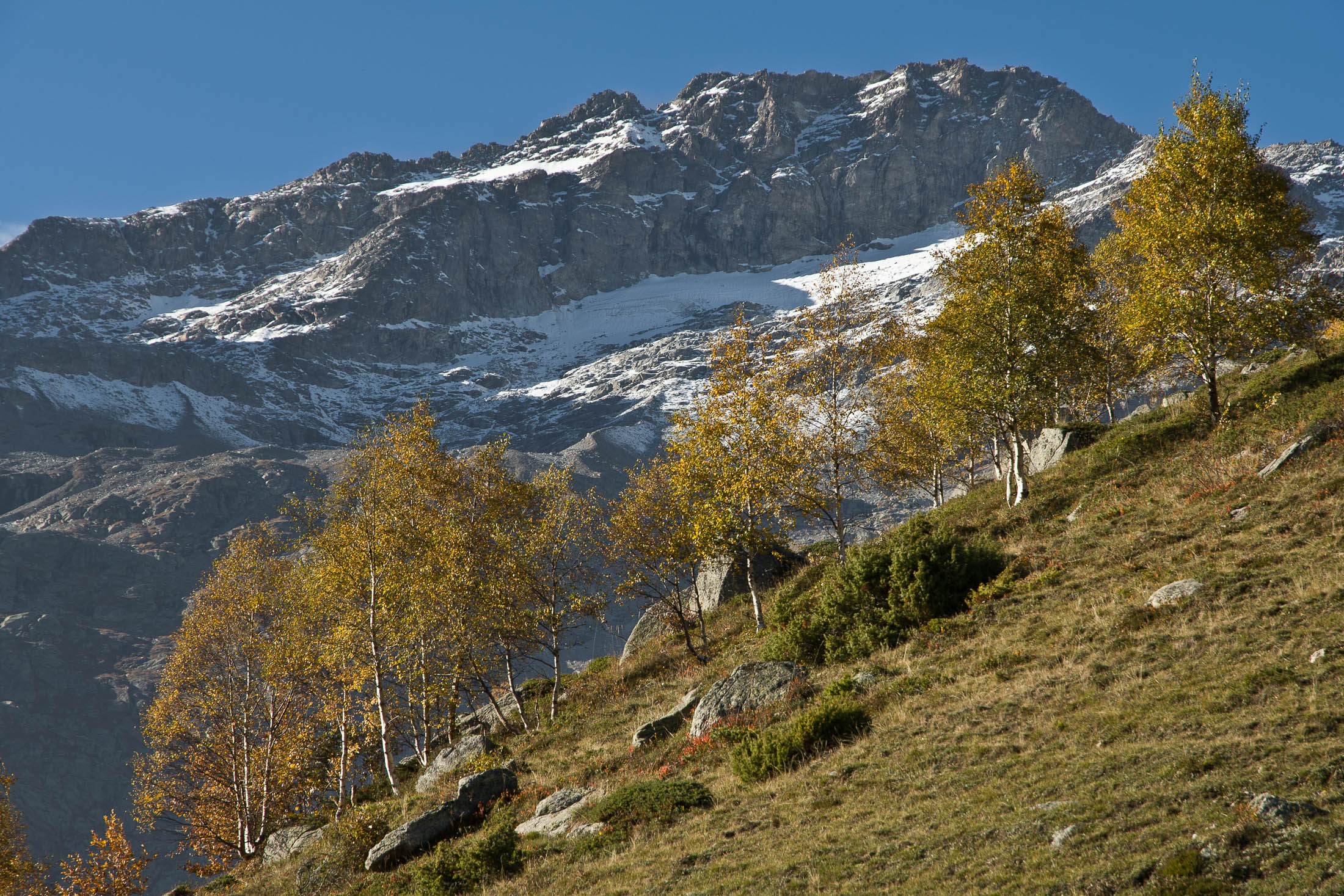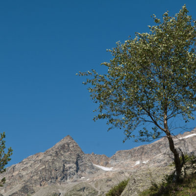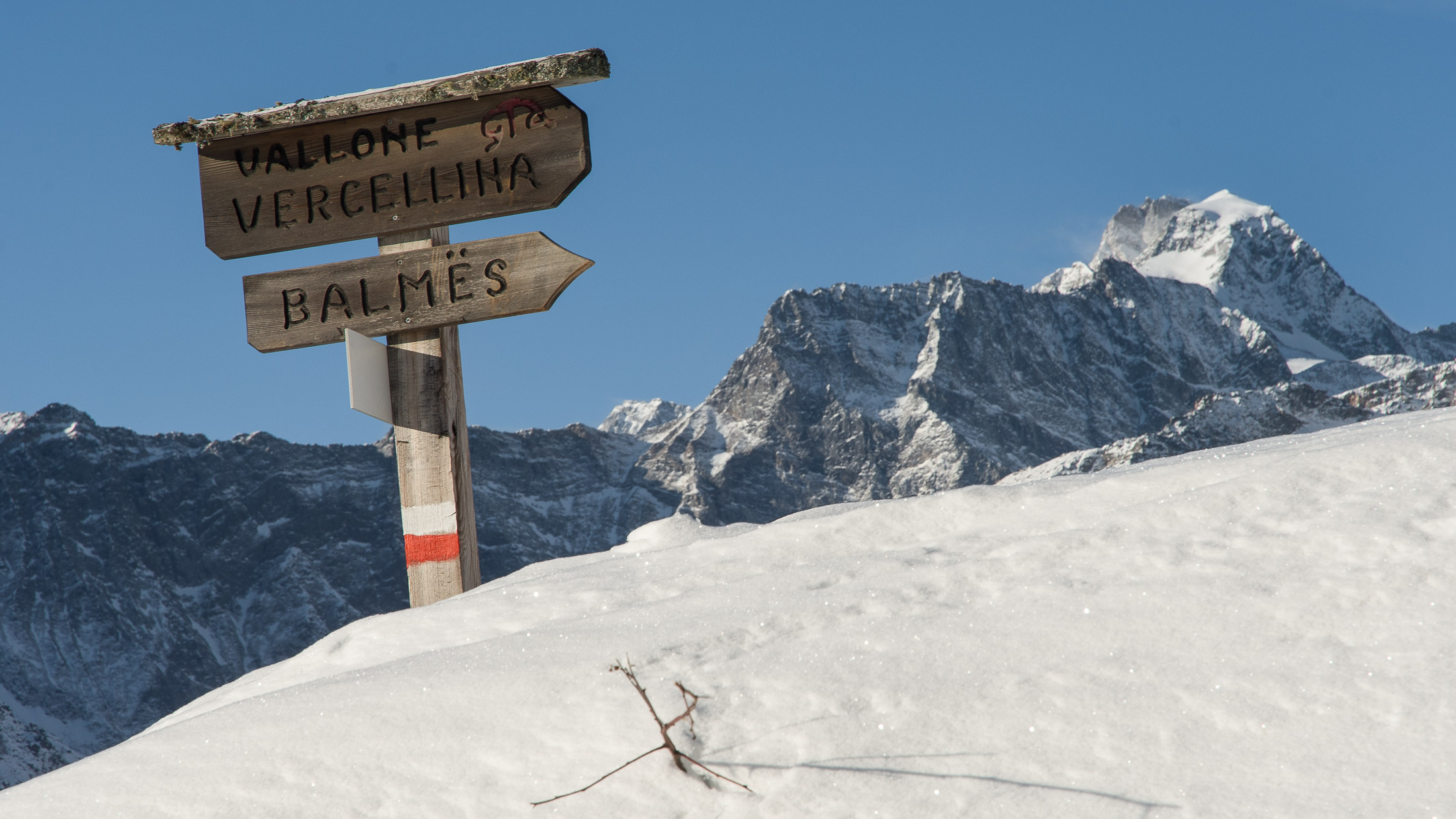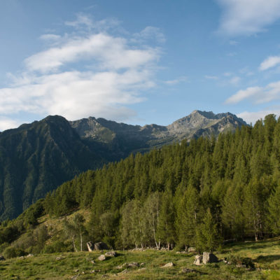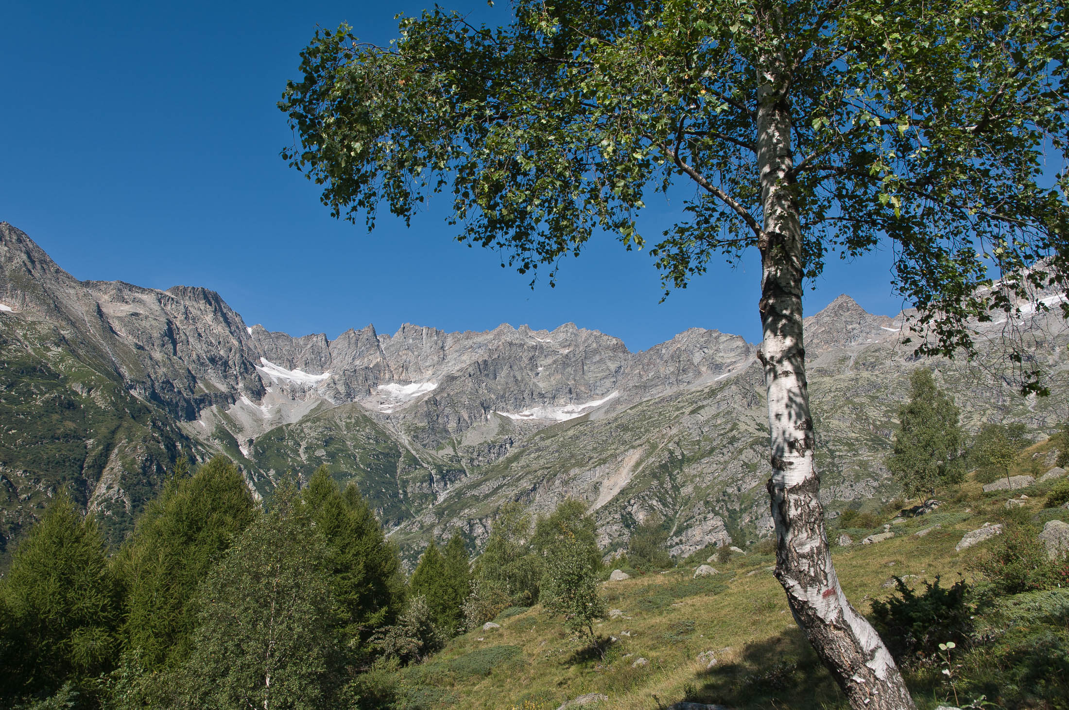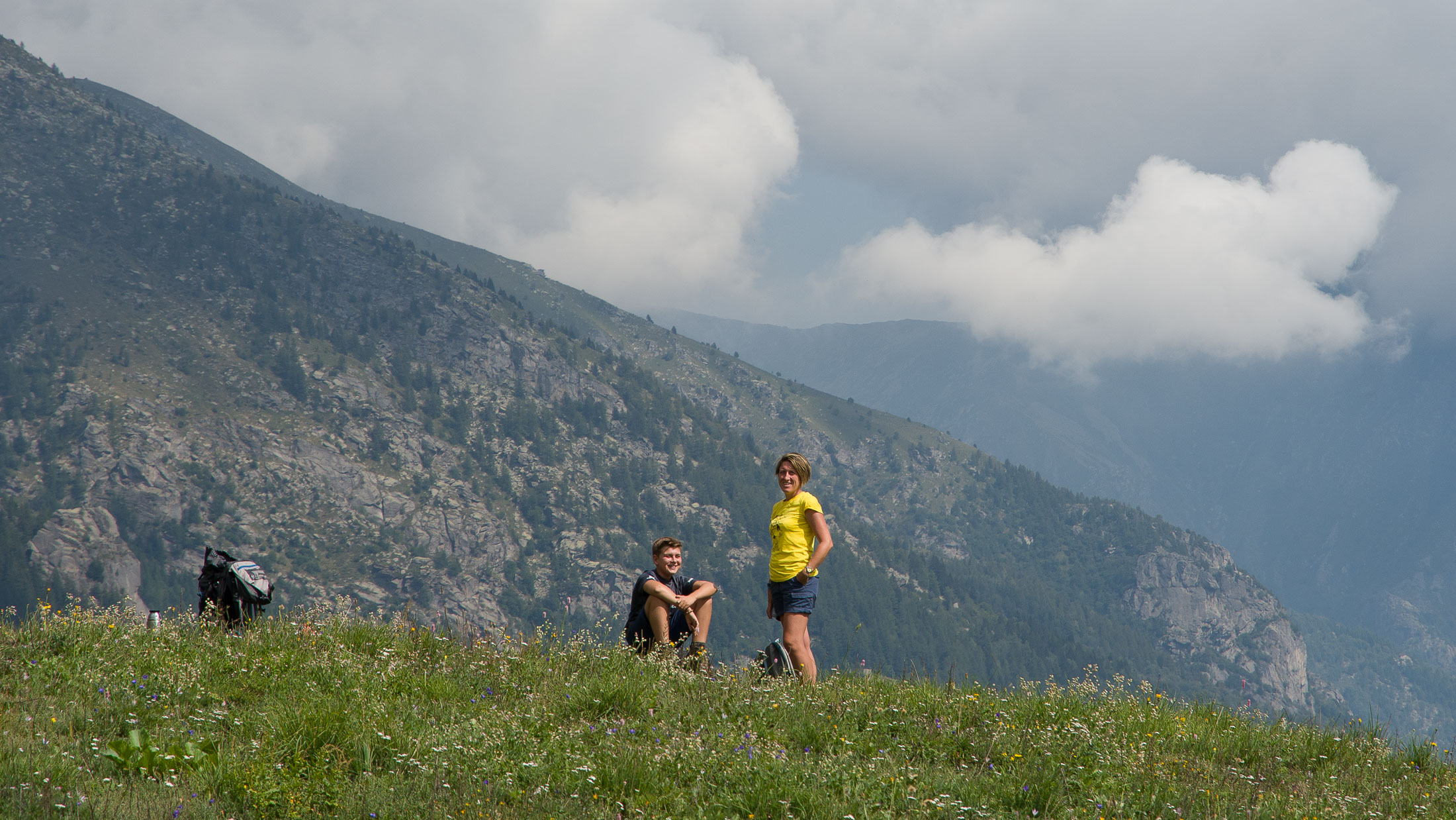 Von Rivotti folgt man zunächst den GTA-Wegweisern und geht in einer Viertelstunde nach Crest (1534 m), eine im Sommer bewirtschaftete Alp mit toller Aussicht auf die umliegenden Berge. Oberhalb der Alp überquert man die Fahrstrasse und wandert in weiteren 10 Minuten zu den teils restaurierten Hütten von Balmes (1604 m), unmittelbar am Talausgang des Vallone di Vercellina. An dieser Stelle erreicht man den sogenannten Sentiero Balcone, ein wunderschöner Höhenweg über dem oberen Val Grande di Lanzo, der erst etwa 6 km weiter westlich bei der Gias Nuovo Fontane endet. Er verläuft auf einem unbefestigten und für den öffentlichen Verkehr gesperrten Fahrweg, der gleichzeitig die Zufahrt zu den Alpgebieten oberhalb von Pialpetta, Groscavallo und Forno ist. Nach einem kurzen Wegstück durch lichten Birkenwald und verbuschendes Kulturland erreicht man bei den Alpgebäuden von Mojes (1705 m, in manchen Karten auch Le Moie genannt) offenes und aussichtsreiches Gelände. Mojes liegt am Rand des Vallone dell‘Alpetta, die saftigen Wiesen in diesem kleinen Seitental werden seit vielen Jahrhunderten als Weideland genutzt. In der Umgebung befinden sich weitere Alpgebiete, die Gias Primavera, die Gias Alpetta und die Gias Pian delle Cialme werden auch heute noch in den Sommermonaten bewirtschaftet.