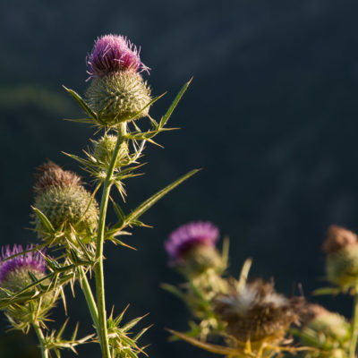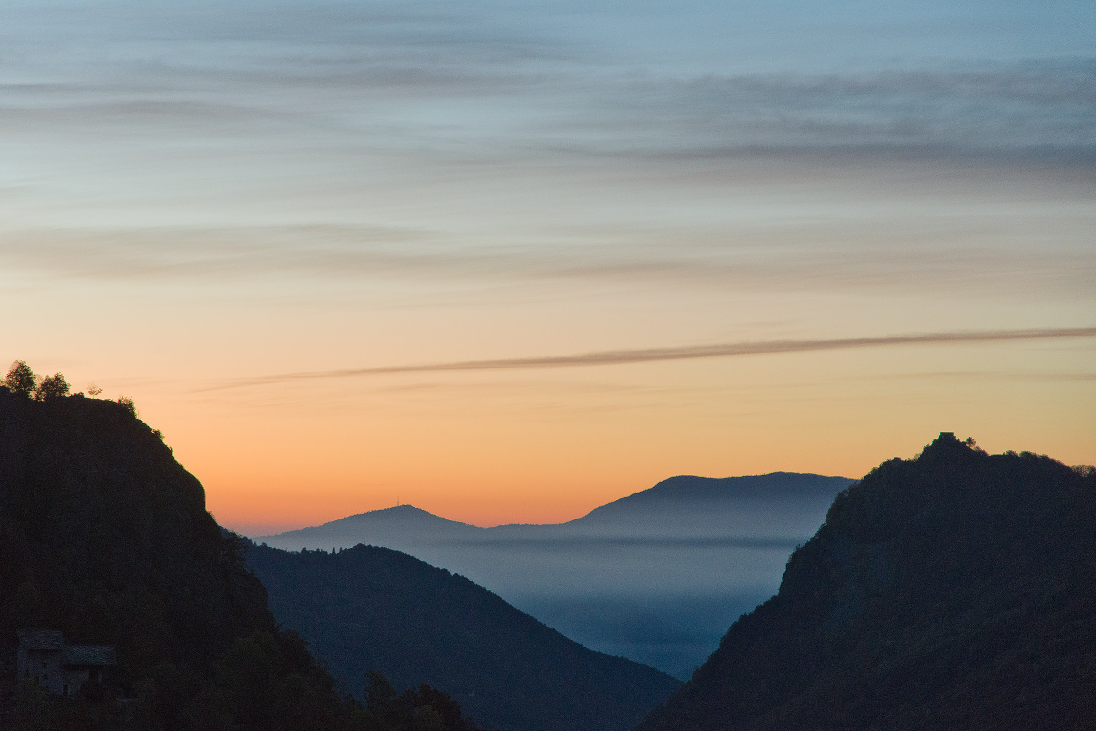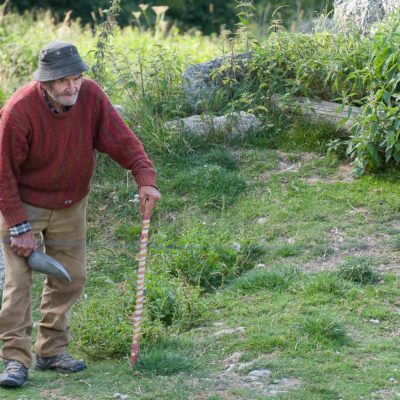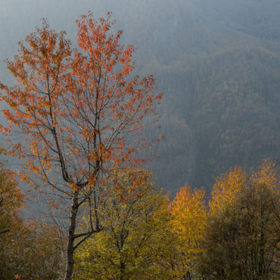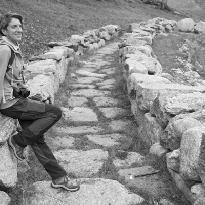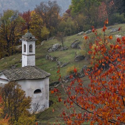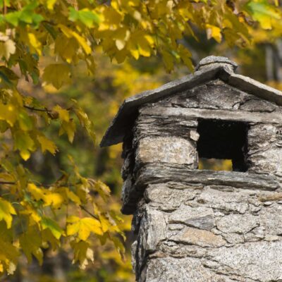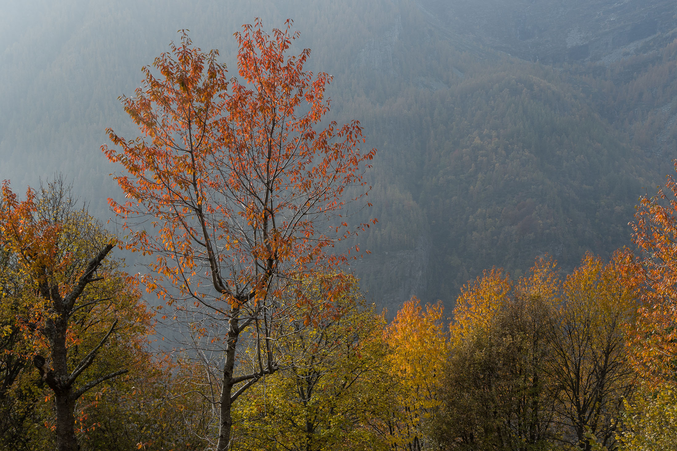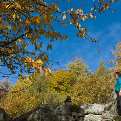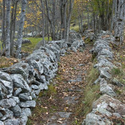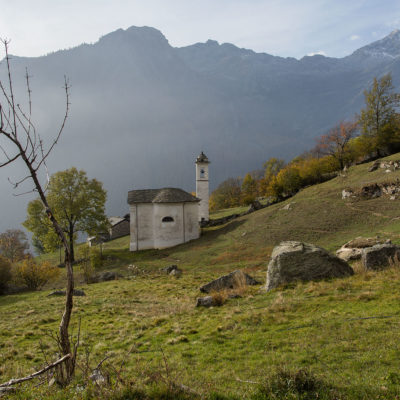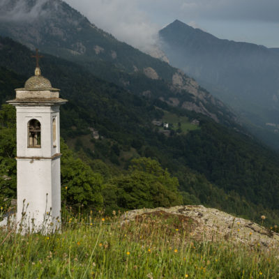 Von der Gias Nuovo Fontane (1986 m) hat man zwei Möglichkeiten, die Wanderung fortzusetzen, entweder man kehrt auf gleichem Weg nach Rivotti oder Alboni zurück, oder man steigt von hier nach Forno Alpi Graie ab, ein sehenswertes Bergdorf im Talboden des Val Grande di Lanzo. Um nach Forno zu gelangen, geht man zunächst eine Viertelstunde auf dem Aufstiegsweg zurück, an dem beschilderten Abzweig hält man sich rechts und steigt auf teils spärlichen Pfadspuren zwischen Wacholdersträuchern, Alpenrosen und verstreuten Lärchen hinab zur Gias Travet di sopra (1829 m). Der alte Alpweg wurde im Jahr 2016 von Freiwilligen des CAI di Lanzo freigeschnitten und neu markiert, bei Nebel sollte man hier dennoch aufpassen, dass man den nicht immer klar ersichtlichen Pfad nicht verliert. Durch verbuschendes ehemaliges Weideland steigt man weiter bis zur Gias Travet di sotto (1754 m) ab. Etwas unterhalb der Alphütten erreicht man den Waldrand, auf nun deutlich erkennbarem Pfad geht es weiterhin abwärts. Nach einer Weile kommt man zu einer ziemlich steilen Passage durch ein fast senkrecht Felsband, das nur an dieser Stelle passierbar ist. Der kurze Abschnitt ist ein wenig mühsam aber unschwierig, bei Nässe ist hier jedoch Trittsicherheit gefragt. Kaum zu glauben, dass man durch diesen schmalen Durchgang einst Tiere hinauf auf die Weiden getrieben hat. Der verbleibende Abstieg führt ohne weitere Schwierigkeiten durch schattigen Wald, schliesslich erreicht man den Talboden mit dem Fiume Stura di Val Grande. Auf einer wunderschönen gepflasterten Mulattiera (= Saumweg oder Maultierweg) wandert man auf der orografisch linken Seite des Flusses in Kürze nach Forno. Auffällig sind hier die grossen Murbrecher, dies sind Sperren im Fluss, die zwar Wasser hindurchlassen, aber keine grösseren Steine oder Baumstämme. Forno war am 24. September 1993 Schauplatz einer grossen Naturkatastrophe, als nach tagelangen sintflutartigen Regenfällen grosse Teile des Dorfes meterhoch von Schlamm- und Geröllmassen vermurt wurden. Die Schutzbauten wurden in den Folgejahren errichtet, um den Ort zukünftig vor weiteren Vermurungen zu schützen.