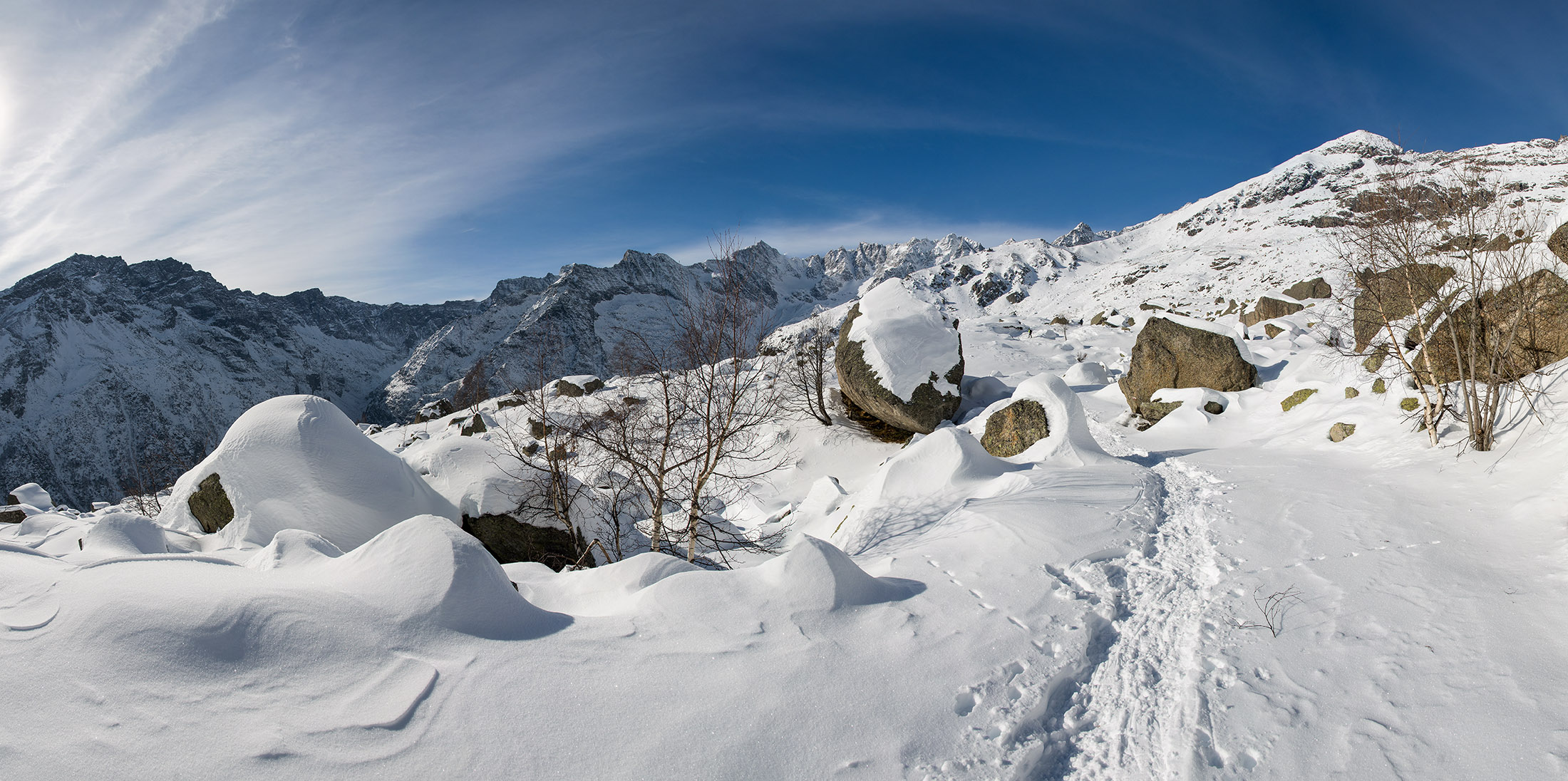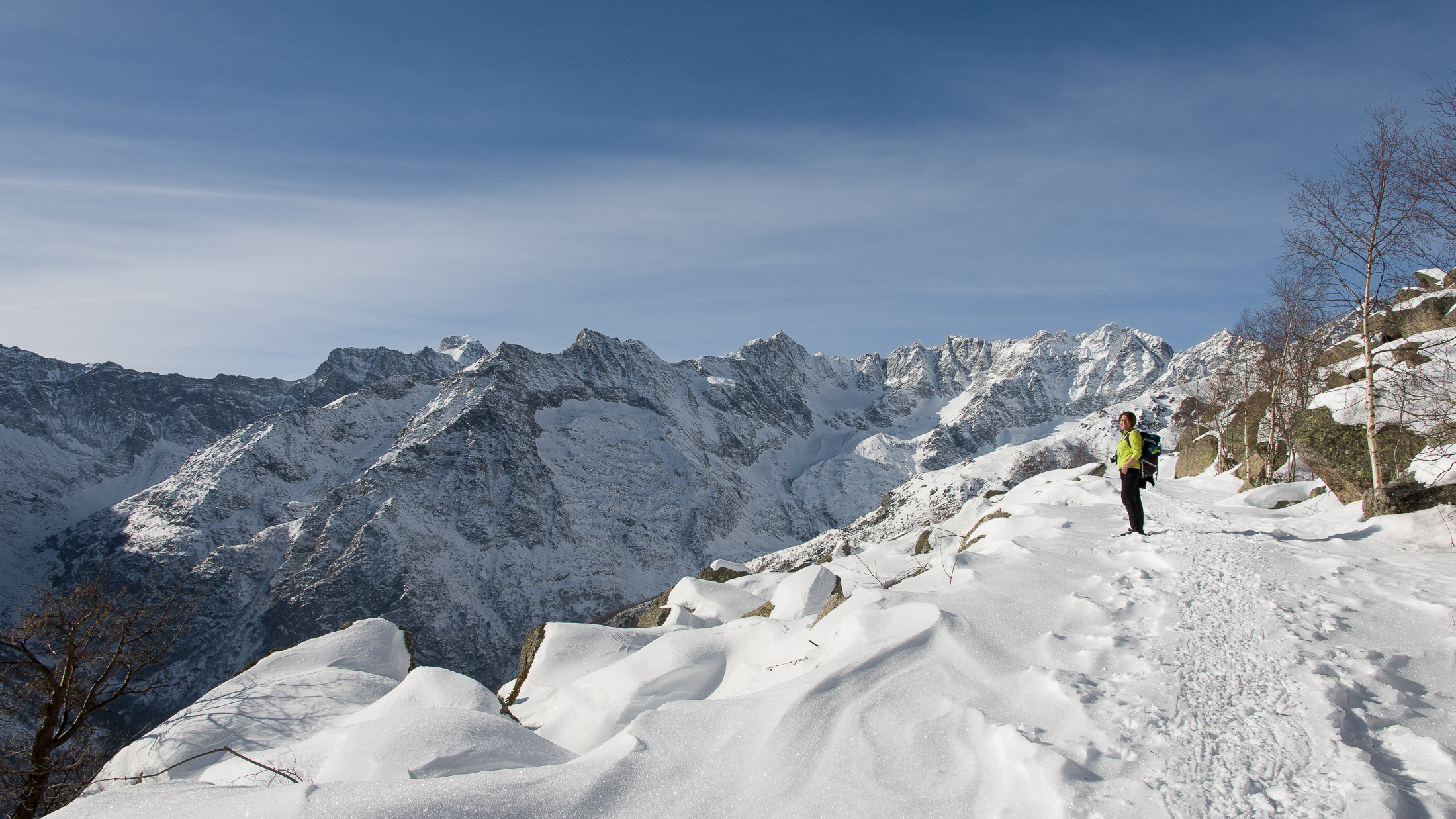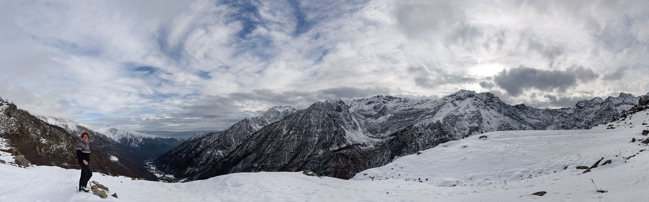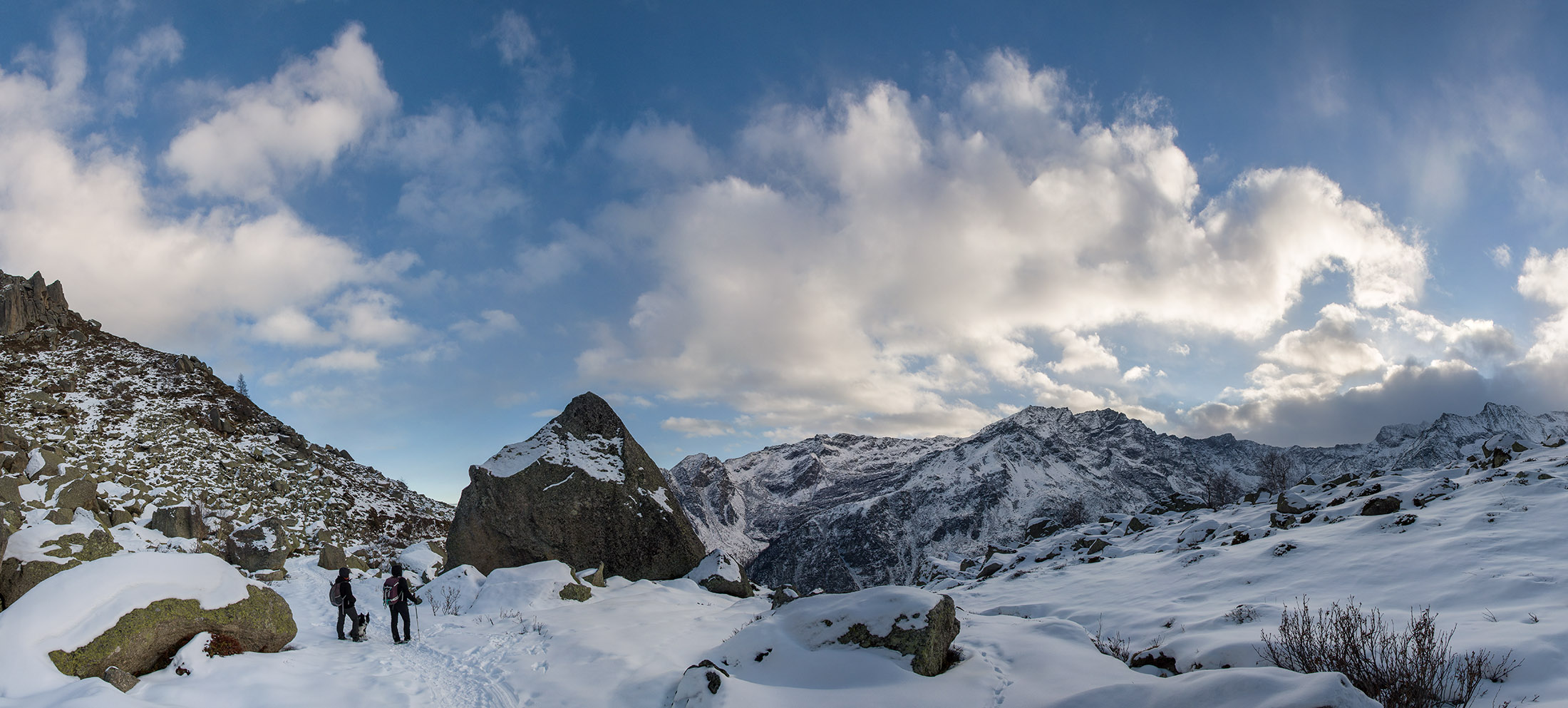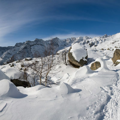 Panoramareiche Wanderung auf dem Sentiero Balcone, ein einfach zu begehender Höhenweg auf der Sonnenseite des Val Grande. Einer der Klassiker der Valli di Lanzo, an Schönwetterwochenenden auch bei den Italienern ein beliebtes und dementsprechend frequentiertes Ausflugsziel, ohne jedoch überlaufen zu sein. Unter der Woche trifft man selbst im Sommer (bis auf den Ferienmonat August) unterwegs kaum eine Menschenseele. Die Tour kann man sich nach eigenem Belieben flexibel gestalten, entweder als Streckenwanderung von Rivotti nach Forno Alpi Graie, oder man beschränkt sich nur auf einzelne Abschnitte und kehrt auf dem Aufstiegsweg zum Ausgangspunkt zurück. Hierzu habe ich einige Vorschläge aufgelistet (> siehe unten). Bei normalen Schneeverhältnissen ist der Sentiero Balcone auch in den Wintermonaten problemlos und unschwierig zu begehen.