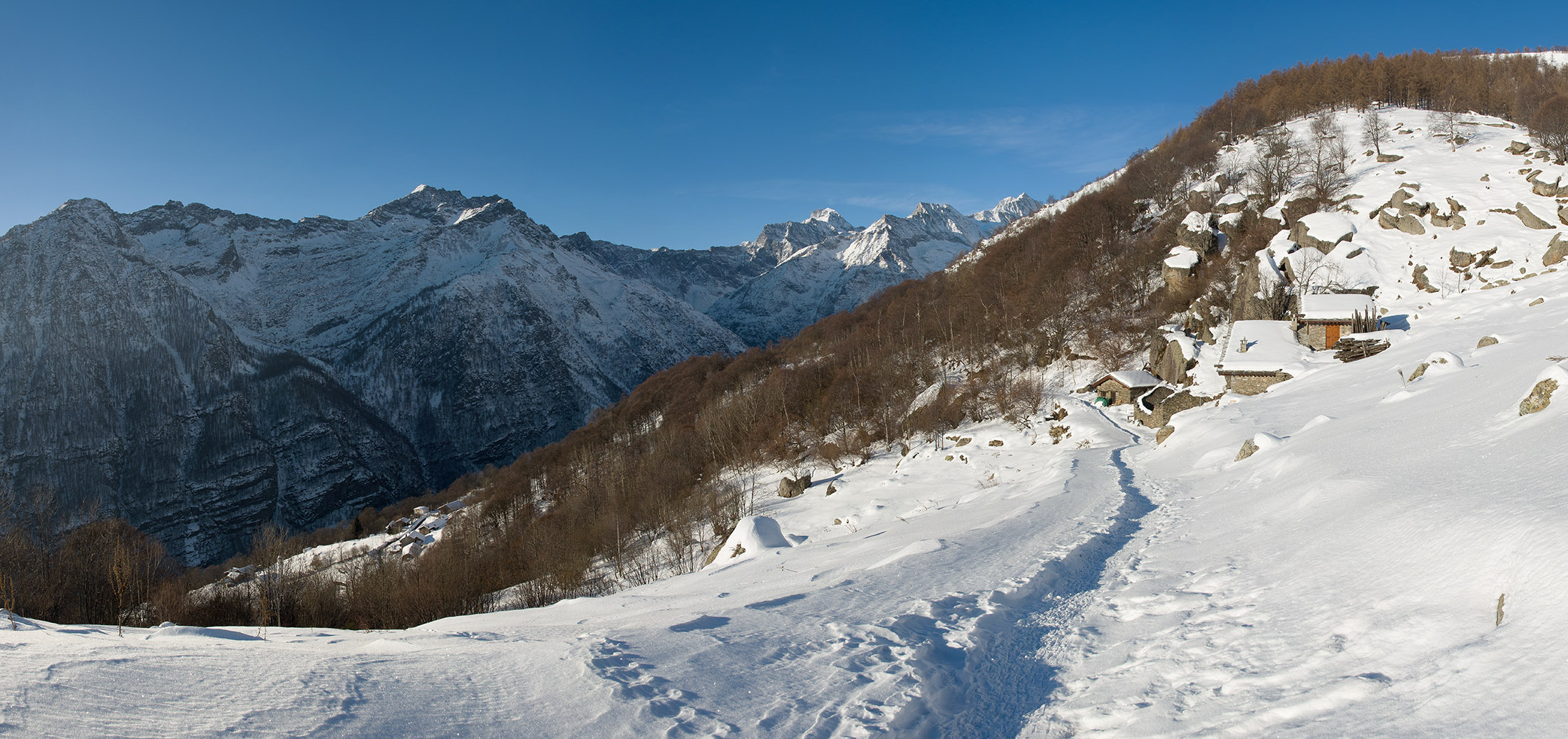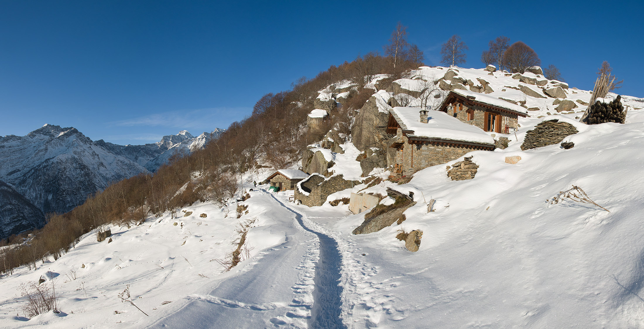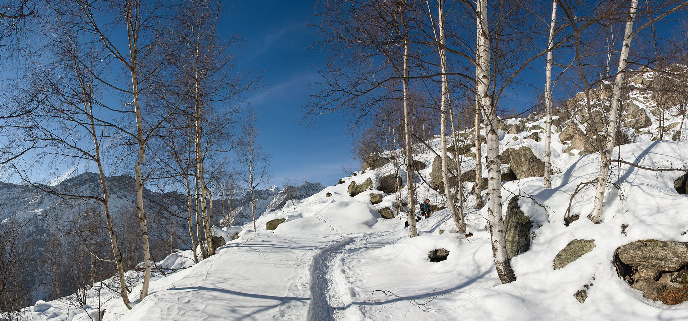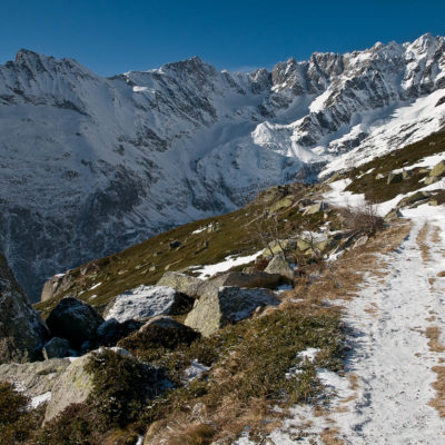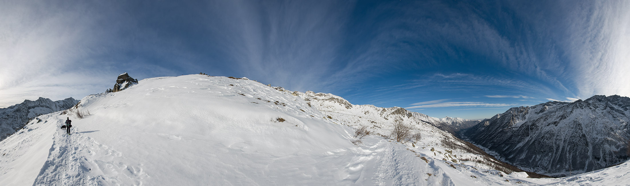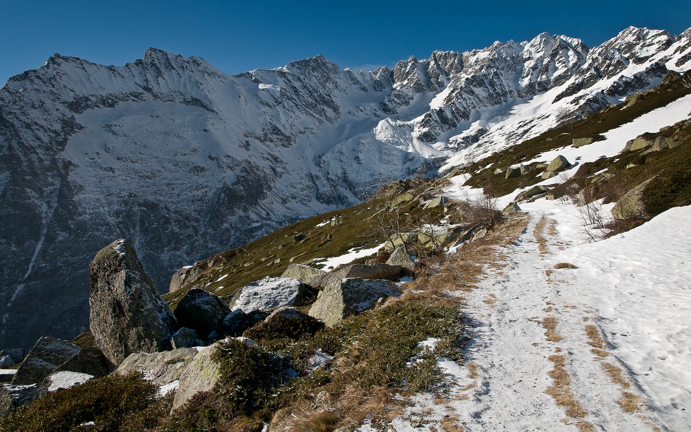 Panoramareiche Wanderung auf dem Sentiero Balcone, ein einfach zu begehender Höhenweg auf der Sonnenseite des Val Grande. Einer der Klassiker der Valli di Lanzo, an Schönwetterwochenenden auch bei den Italienern ein beliebtes und dementsprechend frequentiertes Ausflugsziel, ohne jedoch überlaufen zu sein. Unter der Woche trifft man selbst im Sommer (bis auf den Ferienmonat August) unterwegs kaum eine Menschenseele. Die Tour kann man sich nach eigenem Belieben flexibel gestalten, entweder als Streckenwanderung von Rivotti nach Forno Alpi Graie, oder man beschränkt sich nur auf einzelne Abschnitte und kehrt auf dem Aufstiegsweg zum Ausgangspunkt zurück. Hierzu habe ich einige Vorschläge aufgelistet (> siehe unten). Bei normalen Schneeverhältnissen ist der Sentiero Balcone auch in den Wintermonaten problemlos und unschwierig zu begehen.