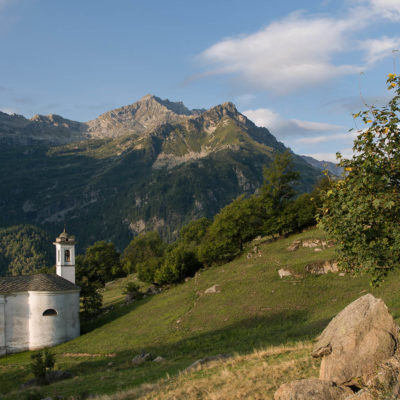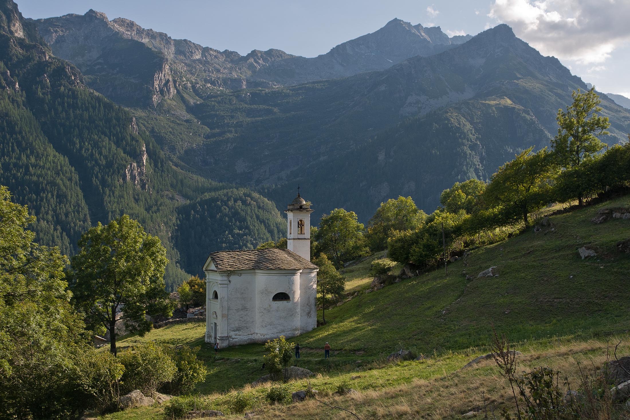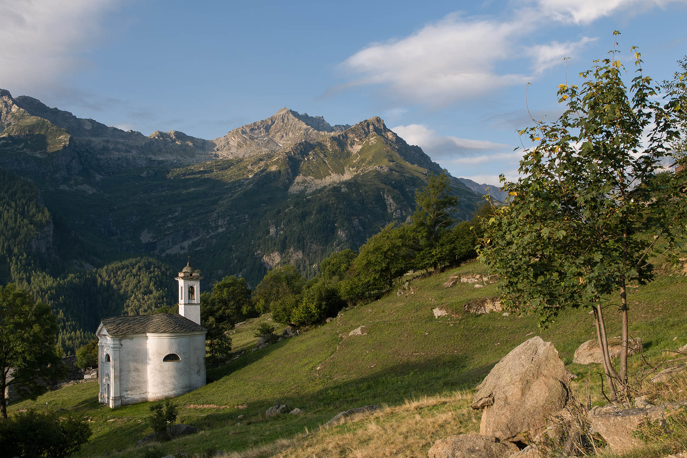 Ausgangspunkt der Wanderung ist die mitten auf einer Wiese stehende Kirchenkapelle von Rivotti (1452 m), ein abgeschiedener Ortsteil von Groscavallo auf einer sonnigen und aussichtsreichen Lichtung über dem Val Grande di Lanzo. Der Ort besteht aus mehreren verstreuten Häusergruppen, man blickt auf gepflegte und teils aufwendig renovierte Anwesen, die jedoch heute nur noch im Sommer und am Wochenende bewohnt sind. Alternativ kann man die Tour auch in Alboni (1390 m) beginnen, von dort wandert man über Surneis, La Costassa und Pera Berghina in etwa einer Stunde nach Rivotti.
