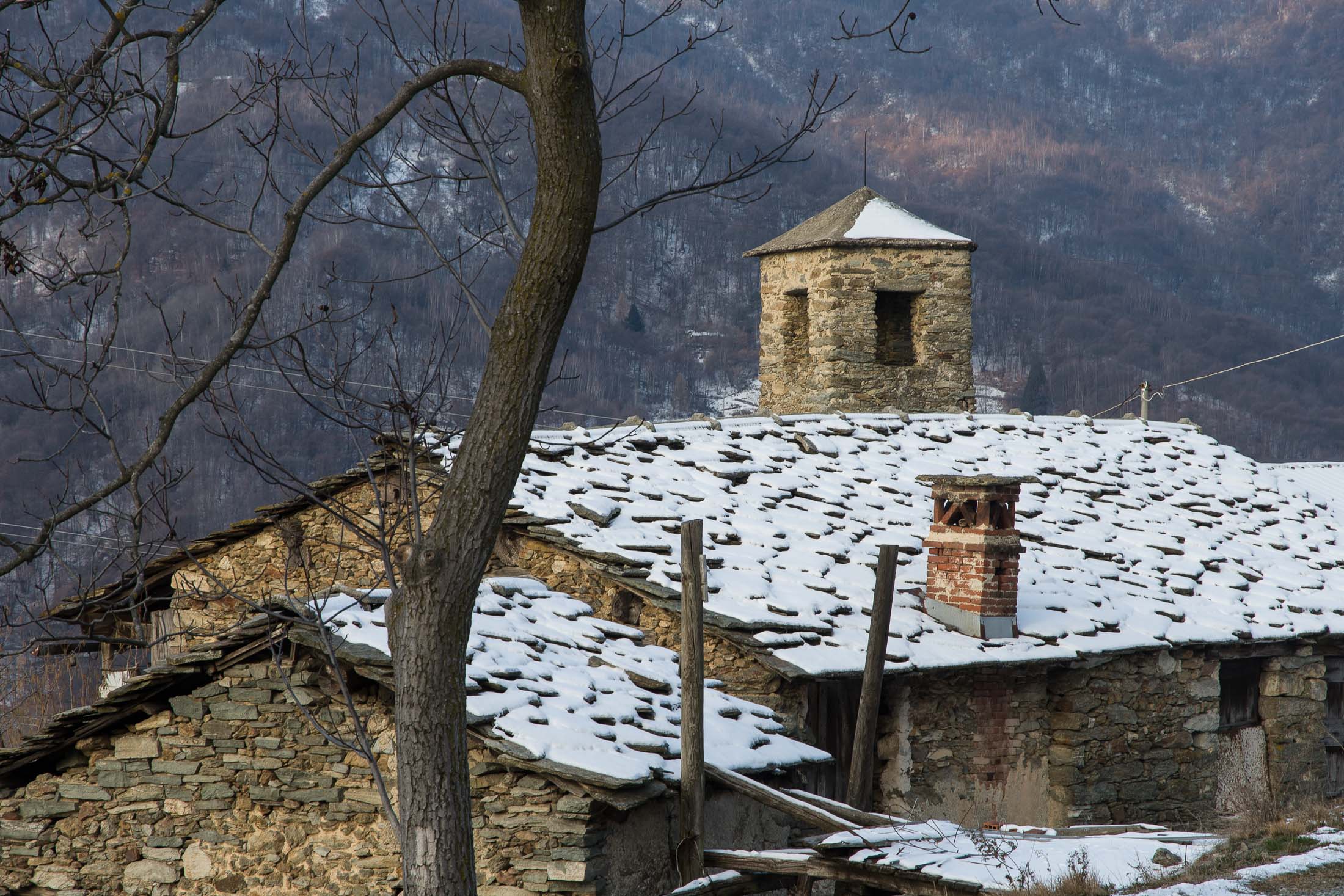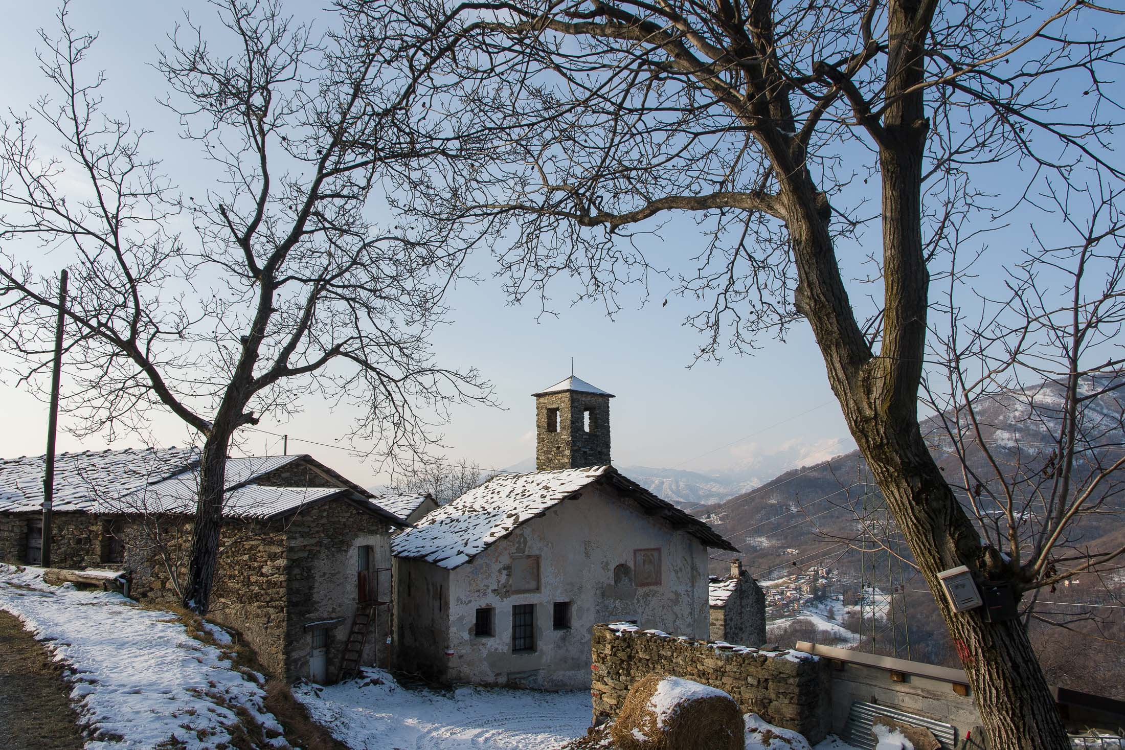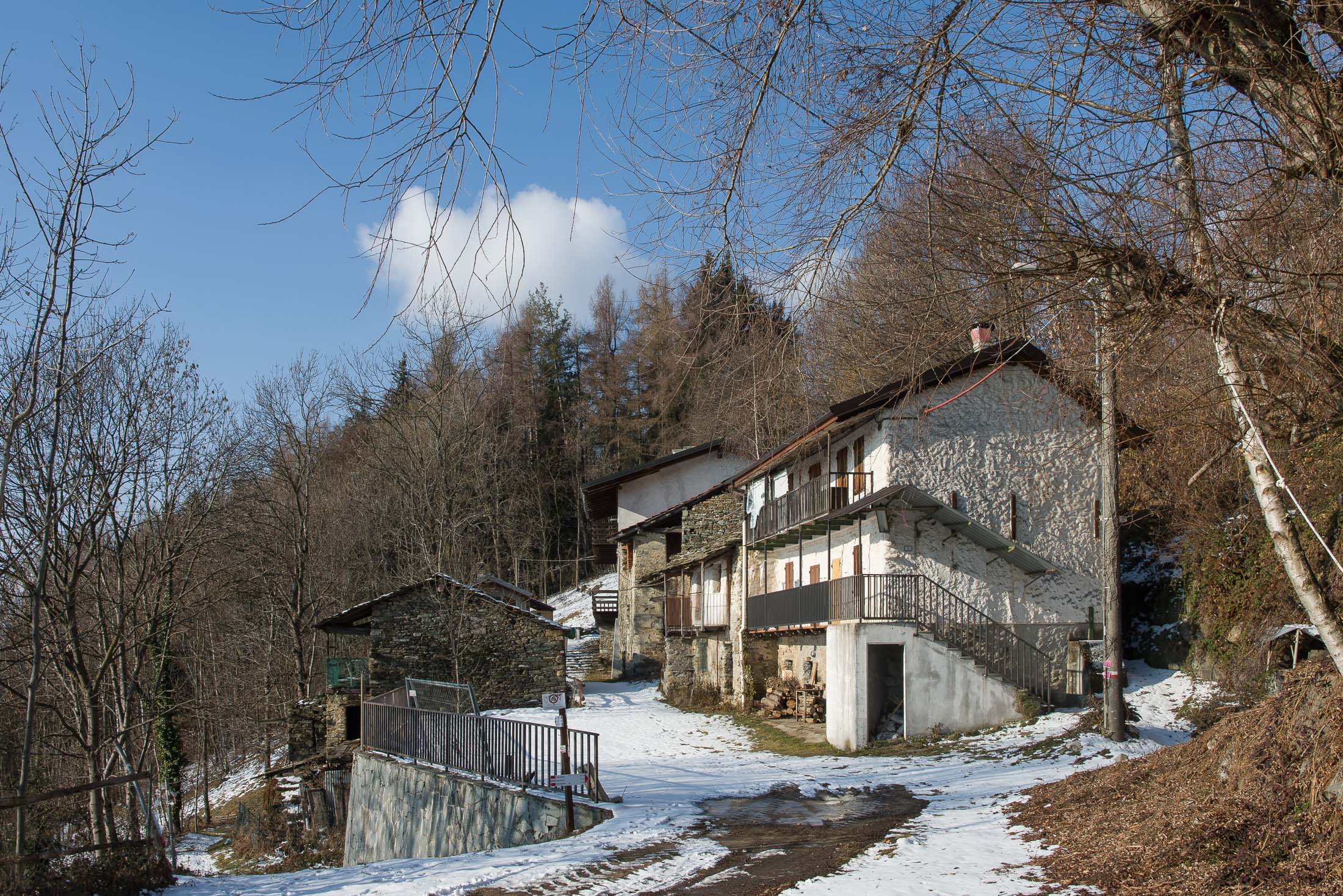 Ausgangspunkt dieser Wanderung ist das kleine Dorf Trinità, ein abgelegener Ortsteil von Corio auf einer sonnigen Anhöhe über dem Val Malone, der nur aus wenigen Häusern besteht. Allein das archaisch anmutende Bergnest ist im Grunde genommen schon einen Ausflug wert. Man fühlt sich in eine andere Zeit zurückversetzt, eine historische Kirche, ringsherum uraltes Gemäuer, an einigen Häusern nagt bereits der Zahn der Zeit. In einer Gasse gackern ein paar Hühner, ansonsten rührt sich hier nicht viel. Einst pulsierte hier das Leben, mittlerweile ist das Dorf nahezu verlassen. Die Einstellung der traditionellen Berglandwirtschaft nach dem zweiten Weltkrieg und die damit verbundene Abwanderung haben den Ort geleert. Nur eine ältere Frau ist bis heute geblieben, sie und ihre Hühner und Hunde halten hier oben die Stellung. Ein paar Kühe sind auch noch da, aus dem grossen Stall nebenan vernimmt man Glockengebimmel, der Bergbauer, dem die Tiere gehören, lebt jedoch unten im Tal. Es ist der Charme des Vergänglichen, der solche Orte liebenswert macht. Auf dem Dorf lastet jedoch ein scheinbar unabwendbares Schicksal. Es ist leider traurige Realität, dass abgelegene Orte wie Trinità in unserer heutigen modernen und schnelllebigen, oft auf permanentem Wachstum ausgerichteten Arbeits- und Alltagswelt aufgrund ihrer schlechten Erreichbarkeit und fehlender Infrastruktur kaum noch eine Zukunft haben und letztendlich als Dauersiedlungsraum aufgegeben werden.