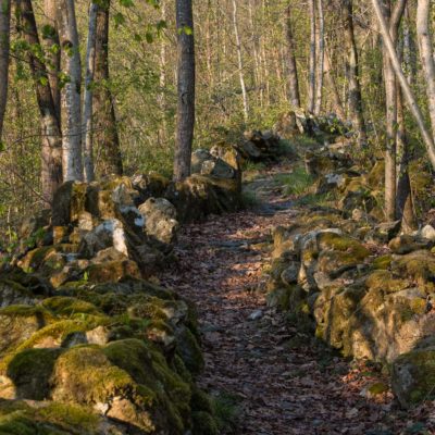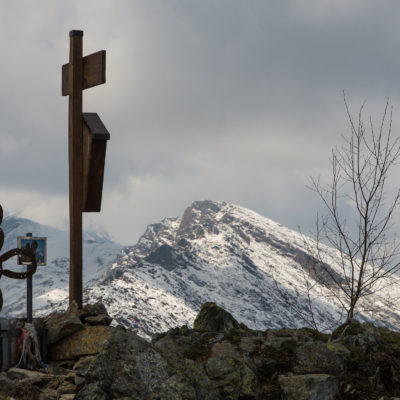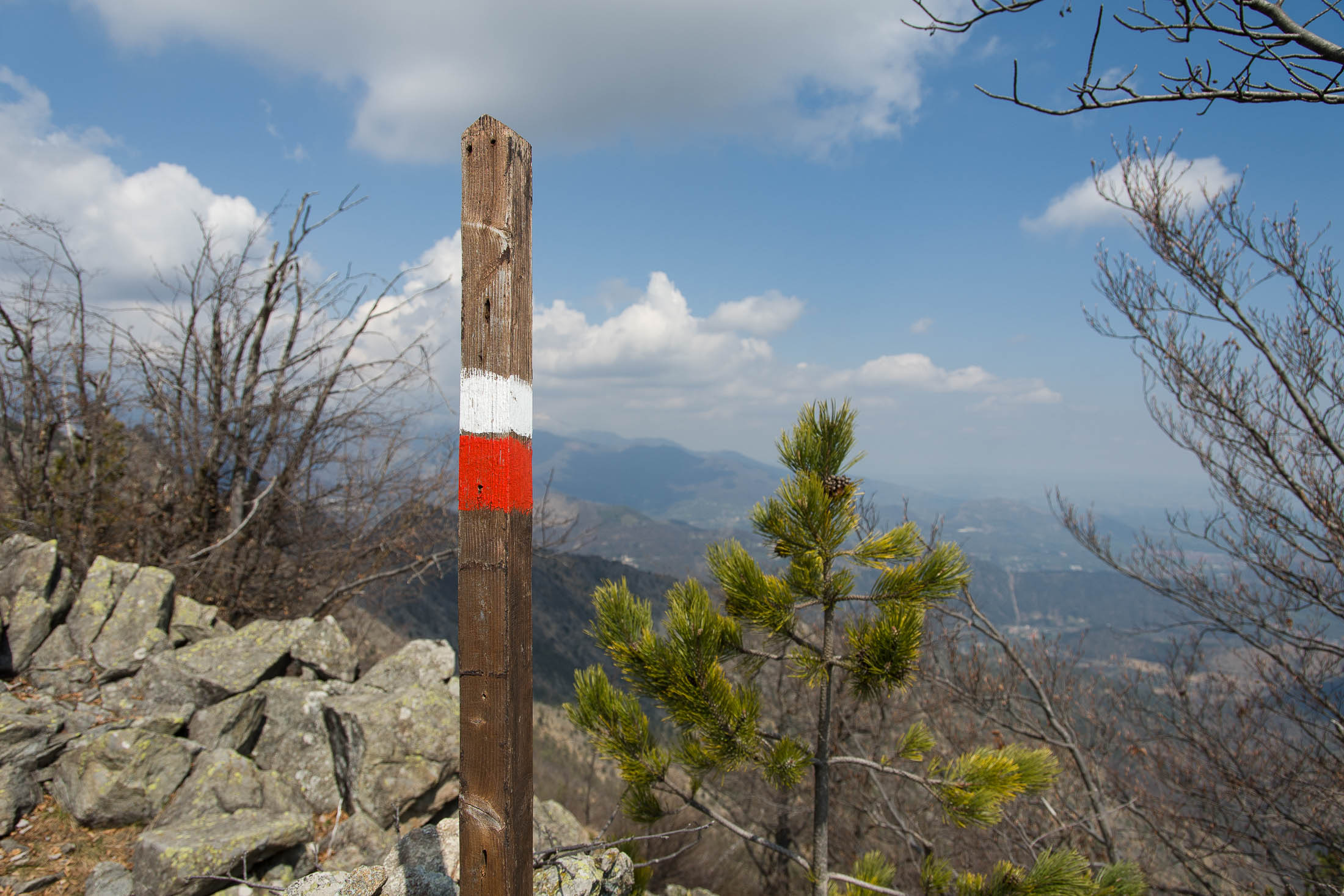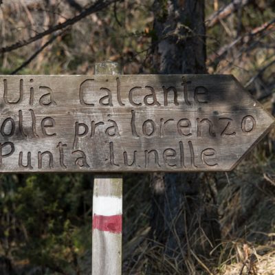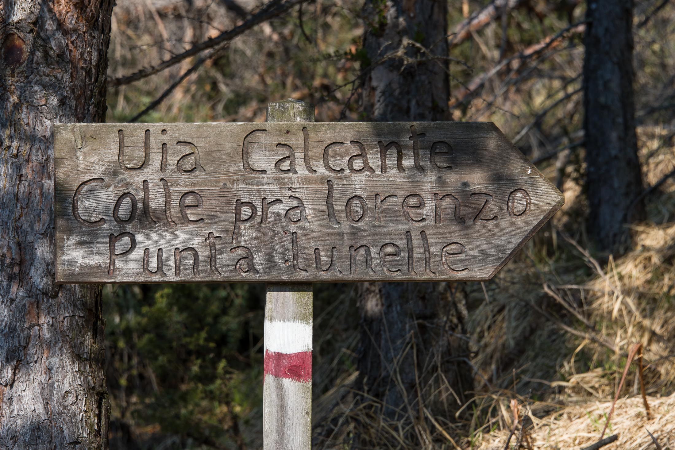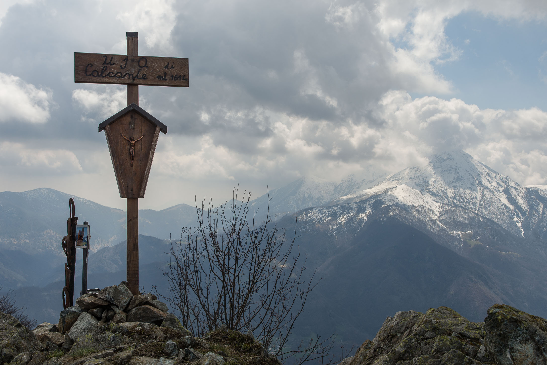 Wenige Schritte hinter der Kirche von Traves folgt man den Wegweisern Richtung Colle Prà Lorenzo, Uja di Calcante und Punta Lunelle und geht durch die schmalen Gassen des Ortes. Hinter den letzten Häusern überquert man eine Wiese und folgt der wunderschönen teils gepflasterten Mulattiera (= Saumweg oder Maultierweg), die zwischen Trockensteinmauern durch verwildertes ehemaliges Kulturland und jungen Stangenwald zunächst sanft ansteigt. Nach etwa 40 Minuten erreicht man den Pian Bracon (830 m), eine früher als Viehweide genutzte kleine Hochfläche, die heute von Birken überwachsen ist. Hier gibt es einen offenen Unterstand mit Picknicktisch, der zu einer ersten Rast einlädt, ein schönes Plätzchen mitten im Grünen. Am Rand der kleinen Ebene überquert man ein unbefestiges Fahrsträsschen, der bequem zu begehende und gut markierte breite Weg windet sich nun in zahllosen Kehren durch herrlichen Kiefernwald hinauf. Auf etwa 1050 m trifft man auf eine Weggabelung, wo man geradeaus auf nun schmälerem Pfad weitergeht. Es folgt ein kurzer steiniger Abschnitt entlang der felsigen Südflanke der Punta Lunelle, am Wegesrand die Überreste eine ehemalige Goldmine. Durch lichten Wald mit verstreuten Lärchen, Kiefern und Birken quert man das obere Ordagna-Seitental und erreicht den Gratrücken mit dem Colle Prà Lorenzo (1388 m). Von hier folgt man dem Grat Richtung Nordwesten und steigt auf steilem und abschnittweise steinigem Pfad zwischen Felsen und vereinzelten Kiefern in einer guten halben Stunde zum Gipfelkreuz der Uja di Calcante. Der Schlussanstieg ist hier und da ein wenig unwegsam aber nicht ausgesetzt, auf den letzten Metern muss man an einer Stelle die Hände zu Hilfe nehmen. Das Panorama von der Uja di Calcante (1614 m) ist umfassend und eindrücklich, hier lohnt eine ausgiebige Gipfelrast. Man blickt auf viele namhafte Erhebungen der Valli di Lanzo, bei klarer Sicht zeigt sich im Norden das Gran Paradiso-Massiv (4061 m), im Osten verliert sich die piemontesische Tiefebene im Dunst.