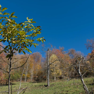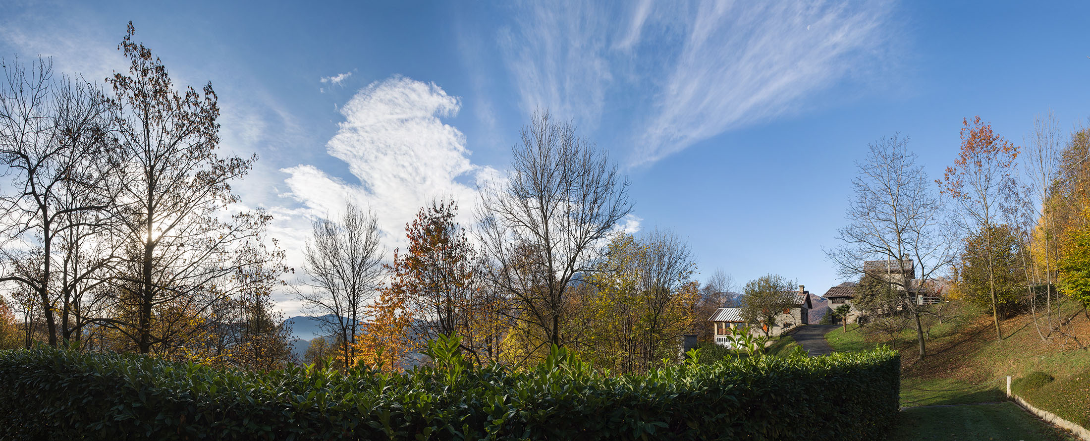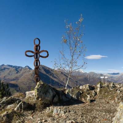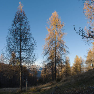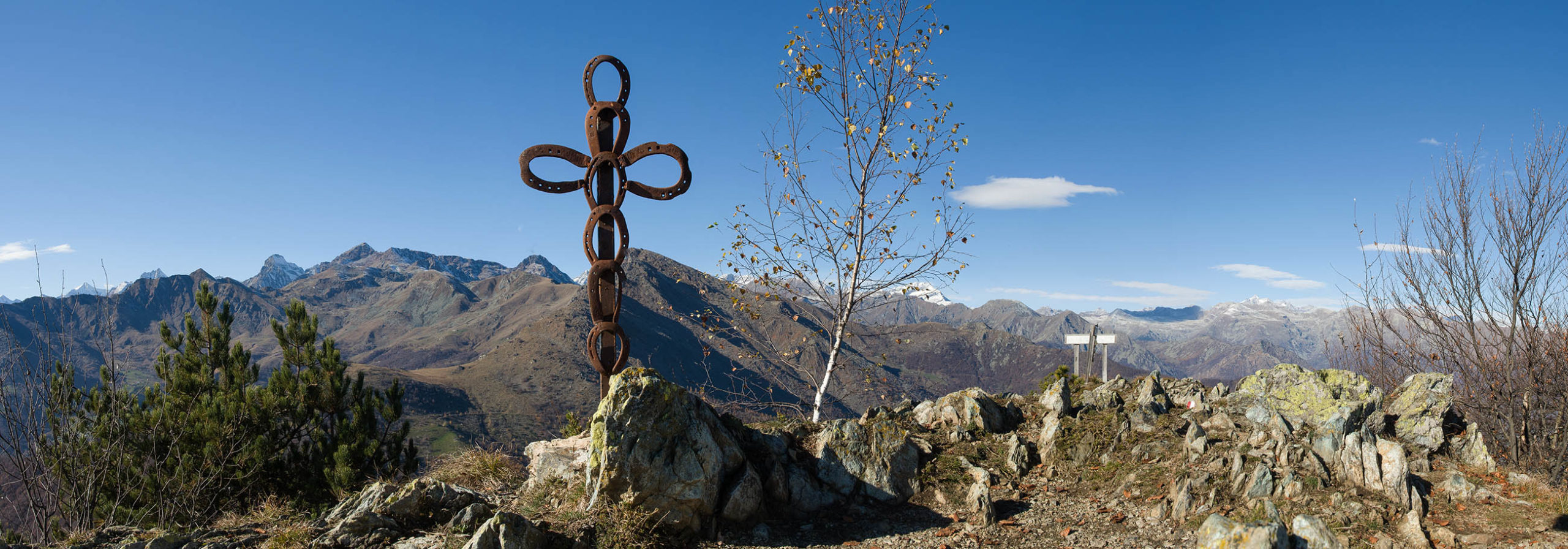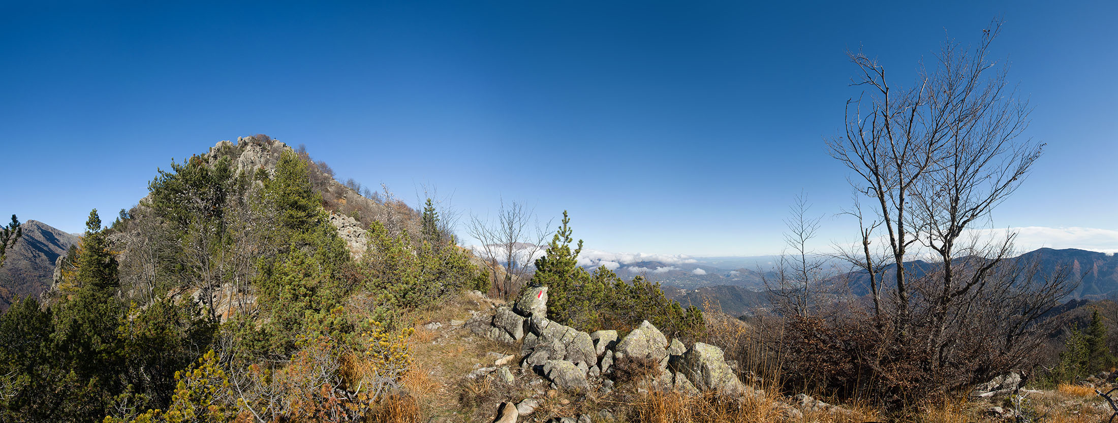 Die Wanderung beginnt bei der Häusergruppe von Ventrunera (966 m) oberhalb von Selvagnengo, ein abgelegener Ortsteil von Viù. Die Gegend war früher dicht besiedelt, nach dem Zusammenbruch der Berglandwirtschaft nach dem zweiten Weltkrieg leben hier heute nur noch wenige Menschen. Das schmale Asphaltsträsschen endet nach wenigen Kehren bei den Häusern von Millanera (1050 m, nicht in den einschlägigen Karten eingezeichnet). Ein idyllischer Ort mitten im Grünen, mit schönem Blick über das Valle die Viù. Die Stille hat das Regiment übernommen, zumindest scheint hier niemand mehr dauerhaft zu wohnen. Verschlossene Fenster und Türen, mittendrin ein grosser Gemüsegarten und ein paar herumstehende Blumentöpfe. Die wenigen Anwesen machen einen gepflegten Eindruck und werden vermutlich noch als Wochenend- oder Feriendomizil genutzt. Bei dem Wegweiser oberhalb des Weilers folgt man dem unbefestigten Fahrweg Richtung Osten bis zu einem offenen Unterstand, wo ein markierter Pfad abzweigt. Dieser führt zunächst in leichtem Auf und Ab entlang einer Trockensteinmauer durch allmählich verwilderndes Kultur- und Weideland, später steiler ansteigend durch einen herrlichen Kiefernwald. Nach einer Weile kommt man zu einer Wegkreuzung (zahlreiche Wegweiser) und überquert den Hauptweg, der von Fubina zum Colle della Cialmetta führt. Im weiteren Verlauf windet sich der bisweilen steile Pfad hinauf zum Colle Prà Lorenzo (1388 m). Hier stösst man auf den Weg, der von Traves aus dem Bassa Valle hinaufkommt. Ein malerisches Fleckchen auf einem aussichtsreichen Gratrücken, das Gipfelziel bereits vor Augen, ringsherum ein paar verstreute Kiefern und Lärchen und Birken, Blätter rascheln leise im Wind. Einsamkeit kann so wohltuend sein...