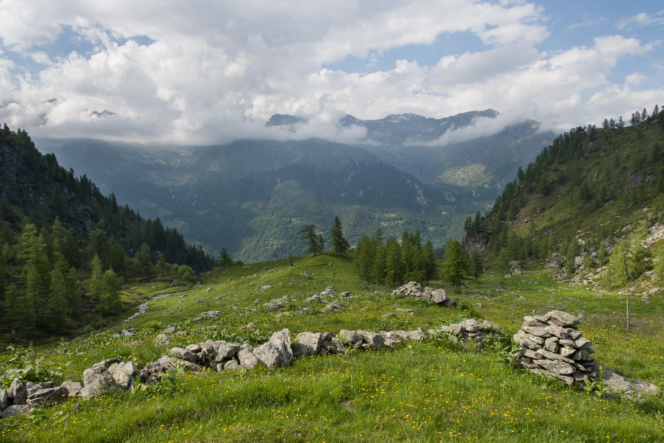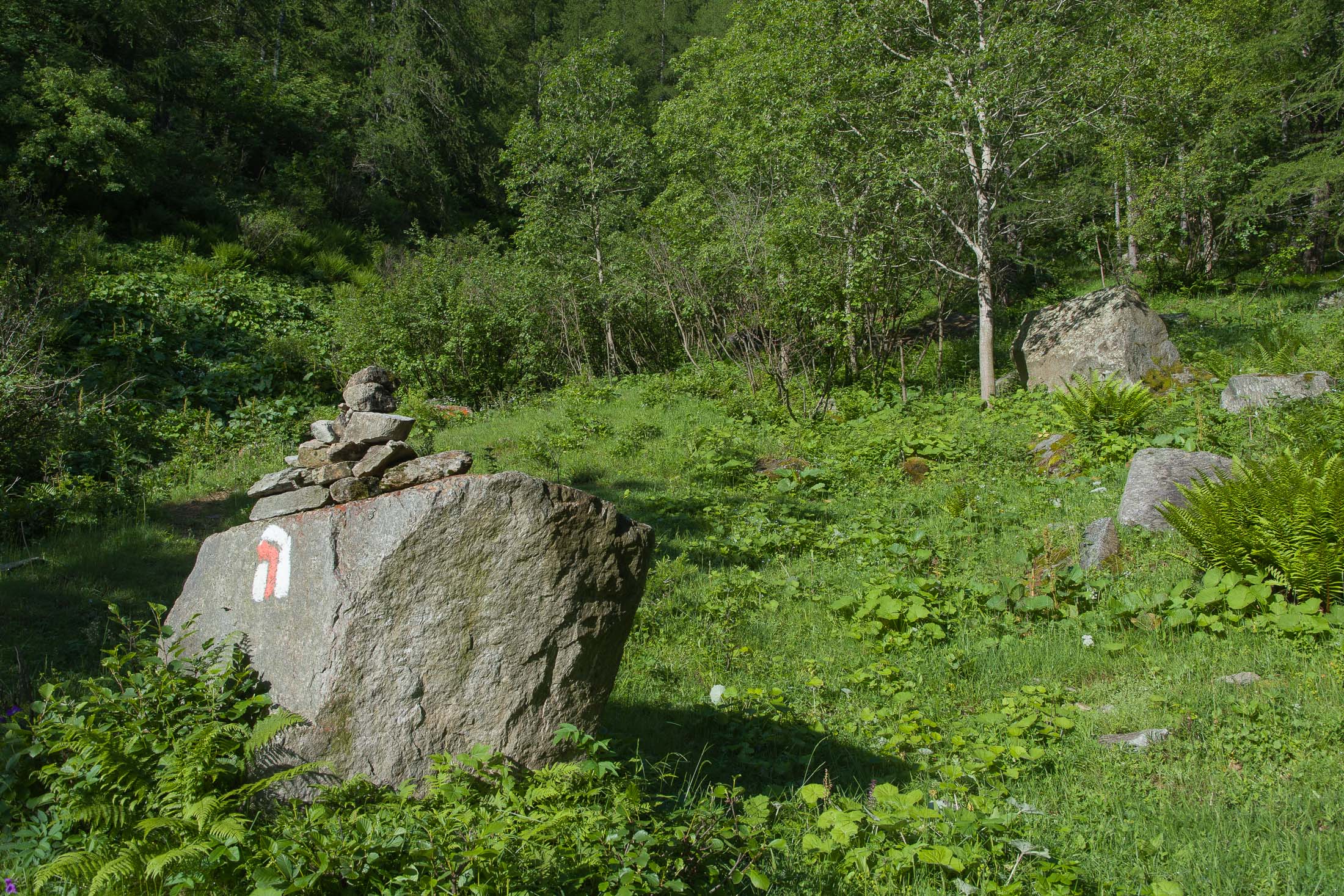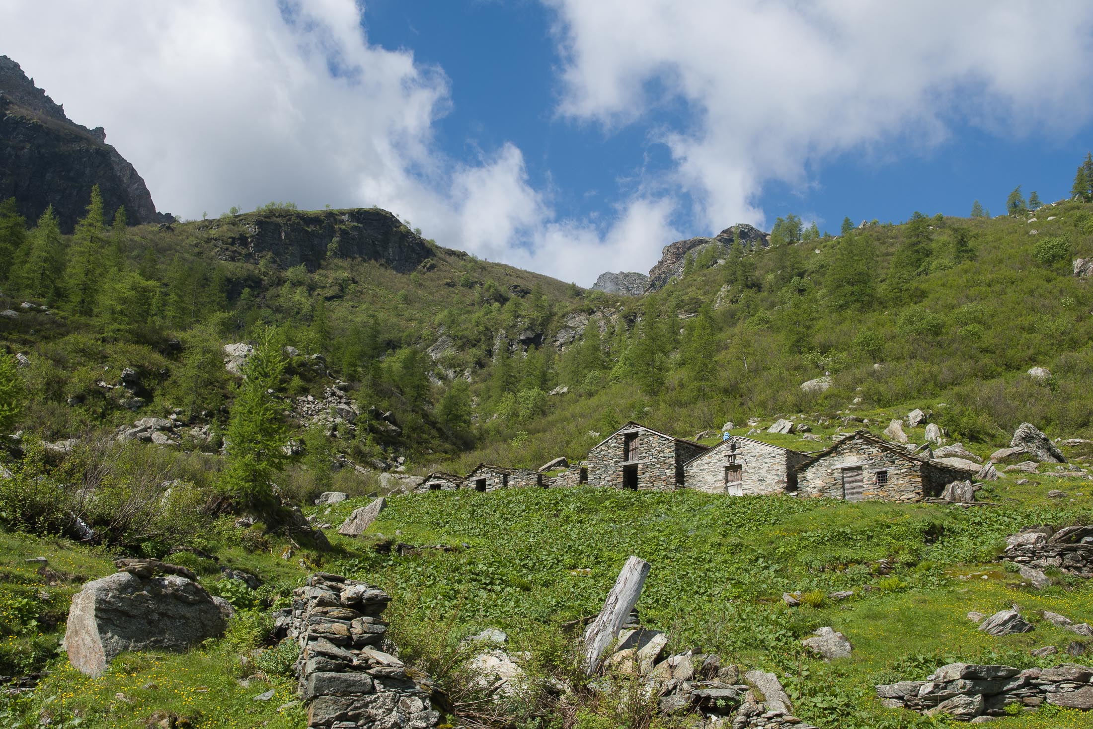 Am westlichen Ortsausgang von Migliere (1054 m) trifft man auf einen GTA-Wegweiser, wenige Minuten später überquert man auf einer Holzbrücke den Fiume Stura di Valgrande. Jenseits des Flusses beginnt bei einem weiteren Wegweiser der gut markierte alte Alpweg, der durch den Wald hinauf ins Vallone del Croset führt. Am Wegesrand spriesst üppige Vegetation in allen Variationen, im Frühsommer blühen die Alpenrosen, Dschungelfeeling pur. Der tosende Rio Croset mit seinen zahlreichen Wasserfällen begleitet einen auf diesem Wegstück auf Schritt und Tritt. Nach etwa zwei Stunden kommt man zu einer kleine Verebnungsfläche mit den Hütten der Gias Croset (1621 m). In der Umgebung der Hütten weiden gelegentlich ein paar Esel, die Umgebung der archaisch anmutenden Alpgebäude versinkt im üppig wucherndem Ampfer. In der subalpinen Höhenstufe ist ganz besonders der Alpen-Ampfer eine dominierende Pflanzengattung der sogenannten Lägerflur, die nur auf stark nitrathaltigen Böden wächst. Diese entstehen auf meist kleinräumigen und lokal begrenzten Flächen durch Überdüngung von Weidetieren wie Kühe und Rinder, die sich meist über einen sehr langen Zeitraum regelmässig am selben Ort aufgehalten haben. Lägerfluren findet man daher recht häufig in der Umgebung von Alpgebäuden, auch noch Jahrzehnte nach der Nutzungsaufgabe. Weitere typische Pflanzenarten einer Lägerflur sind Brennnesseln, Alpen-Greiskraut, Alpendost und blauer Eisenhut.