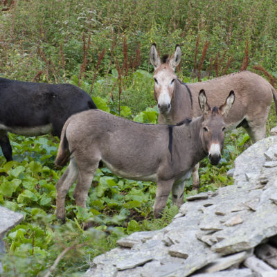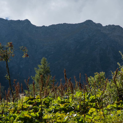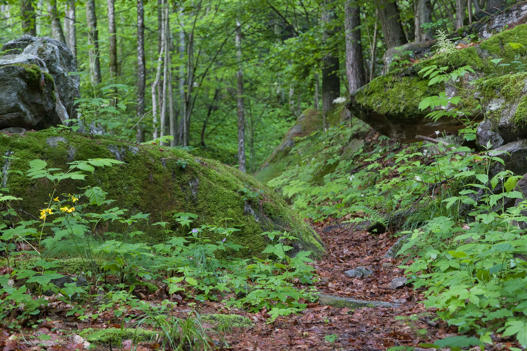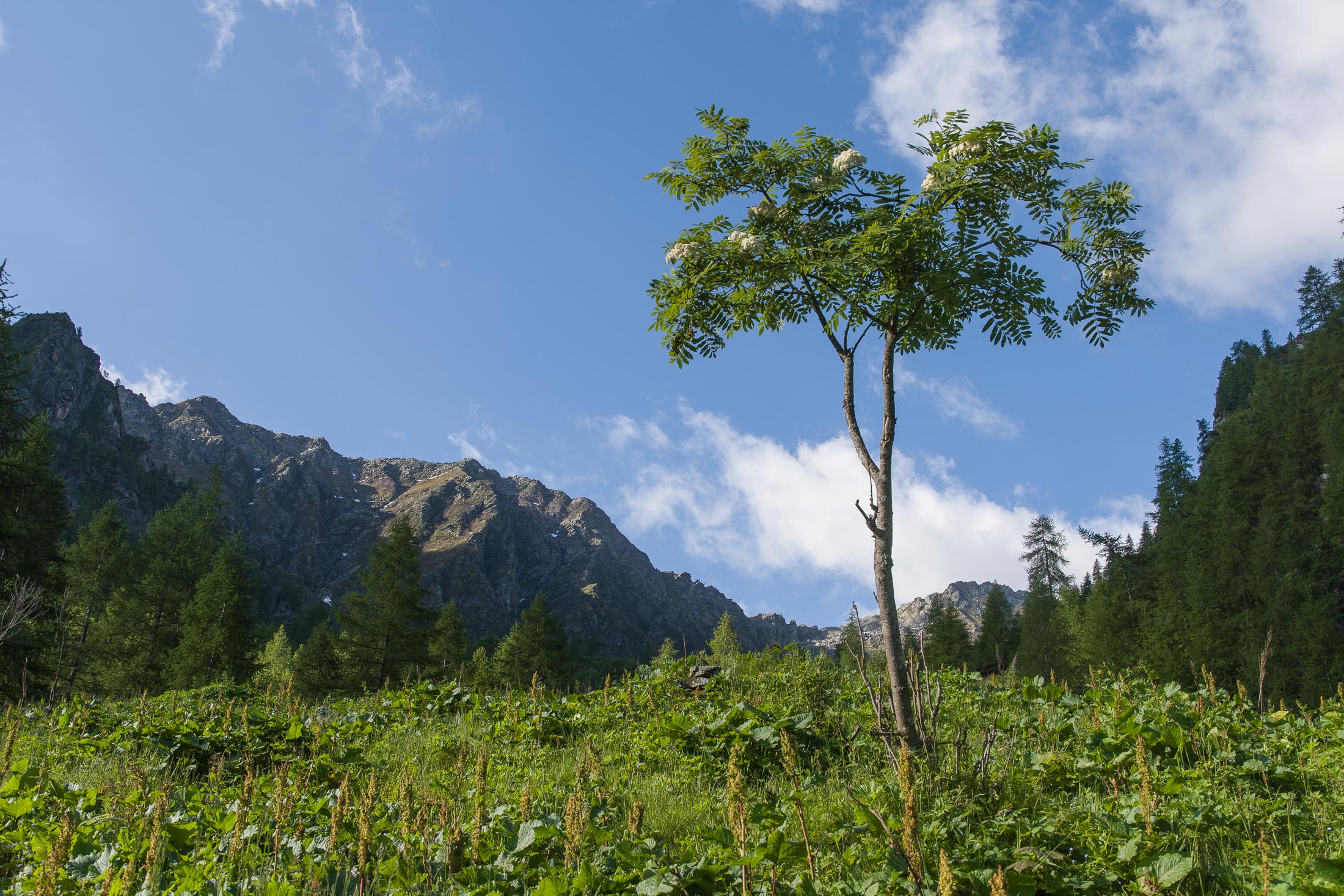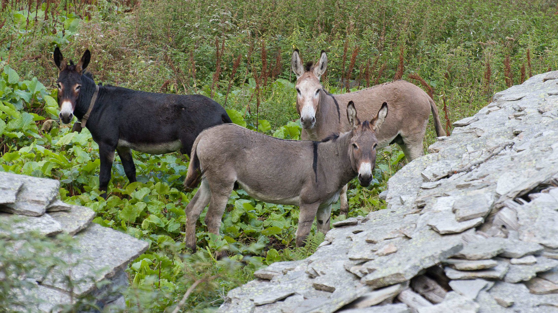 Am westlichen Ortsausgang von Migliere (1054 m) trifft man auf einen GTA-Wegweiser, wenige Minuten später überquert man auf einer Holzbrücke den Fiume Stura di Valgrande. Jenseits des Flusses beginnt bei einem weiteren Wegweiser der gut markierte alte Alpweg, der durch den Wald hinauf ins Vallone del Croset führt. Am Wegesrand spriesst üppige Vegetation in allen Variationen, im Frühsommer blühen die Alpenrosen, Dschungelfeeling pur. Der tosende Rio Croset mit seinen zahlreichen Wasserfällen begleitet einen auf diesem Wegstück auf Schritt und Tritt. Nach etwa zwei Stunden kommt man zu einer kleine Verebnungsfläche mit den Hütten der Gias Croset (1621 m). In der Umgebung der Hütten weiden gelegentlich ein paar Esel, die Umgebung der archaisch anmutenden Alpgebäude versinkt im üppig wucherndem Ampfer. In der subalpinen Höhenstufe ist ganz besonders der Alpen-Ampfer eine dominierende Pflanzengattung der sogenannten Lägerflur, die nur auf stark nitrathaltigen Böden wächst. Diese entstehen auf meist kleinräumigen und lokal begrenzten Flächen durch Überdüngung von Weidetieren wie Kühe und Rinder, die sich meist über einen sehr langen Zeitraum regelmässig am selben Ort aufgehalten haben. Lägerfluren findet man daher recht häufig in der Umgebung von Alpgebäuden, auch noch Jahrzehnte nach der Nutzungsaufgabe. Weitere typische Pflanzenarten einer Lägerflur sind Brennnesseln, Alpen-Greiskraut, Alpendost und blauer Eisenhut.