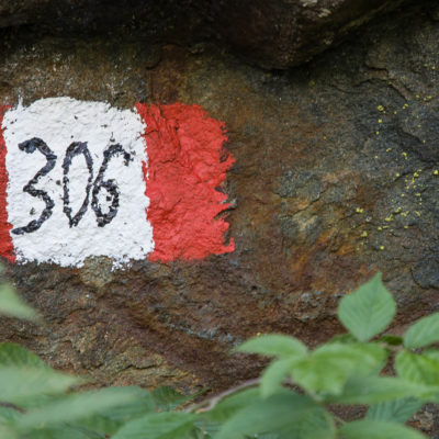 GTA-Wegweiser am westlichen Ortsausgang von Migliere (1054 m, Frazione di Groscavallo)