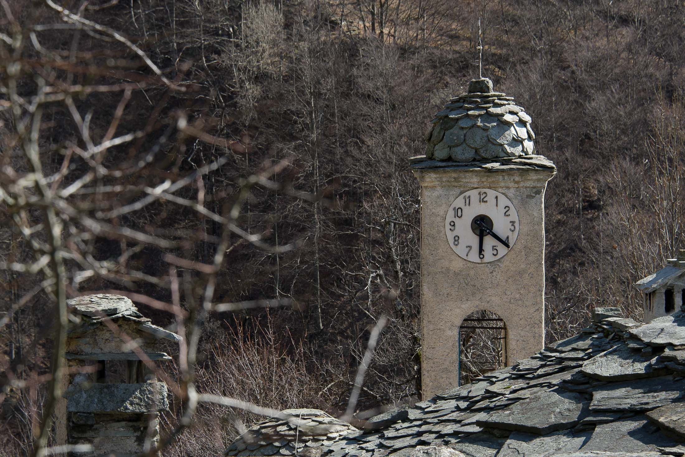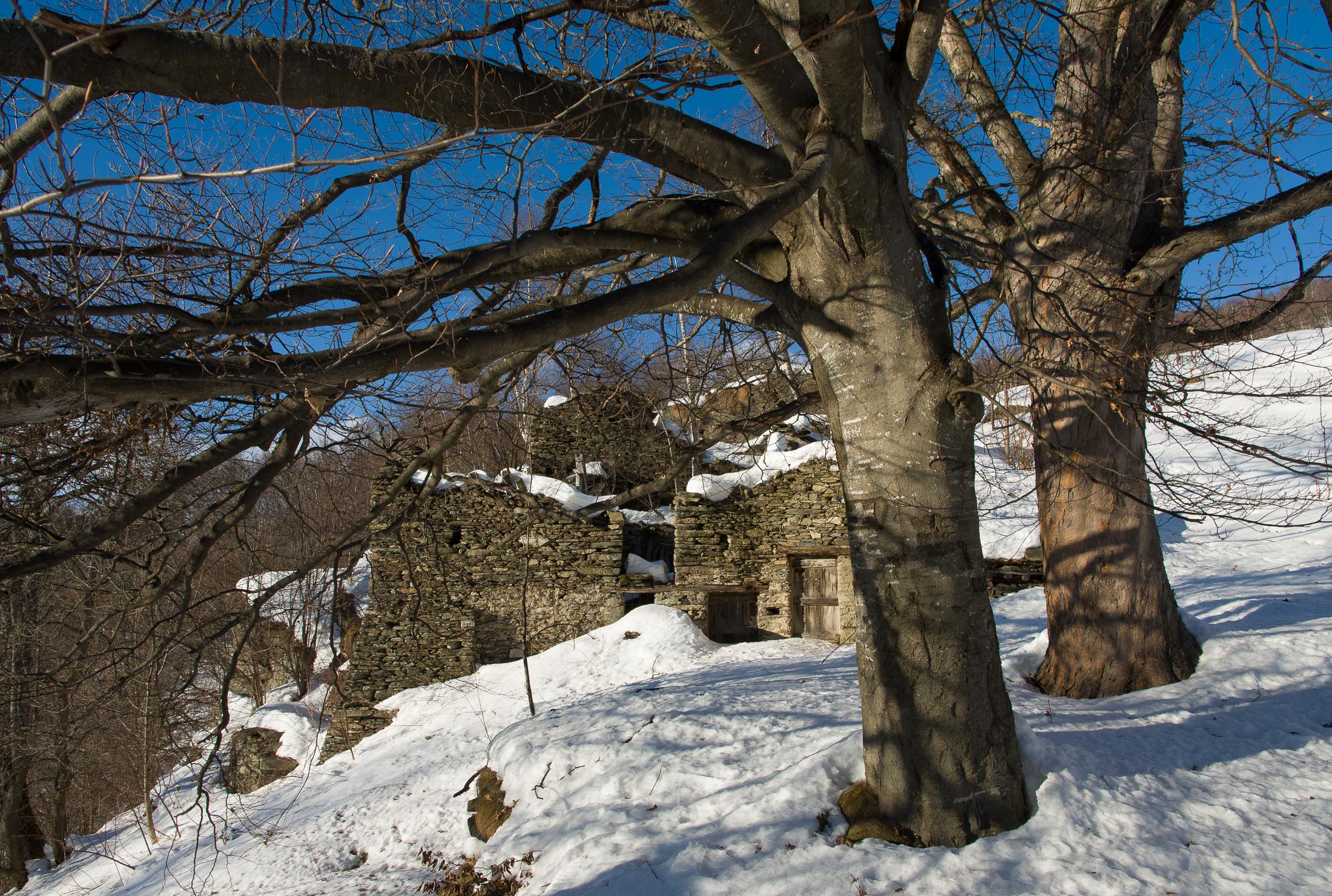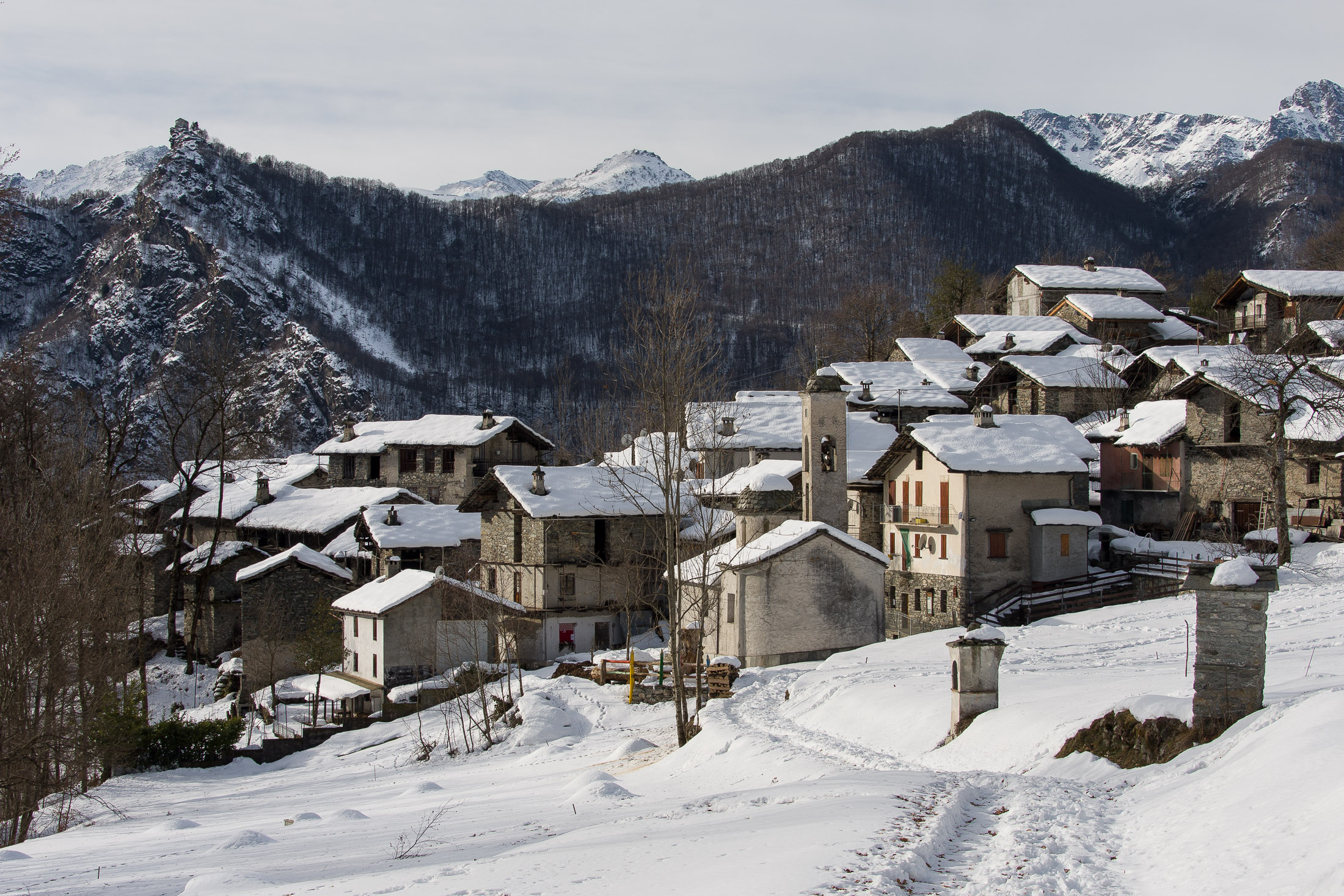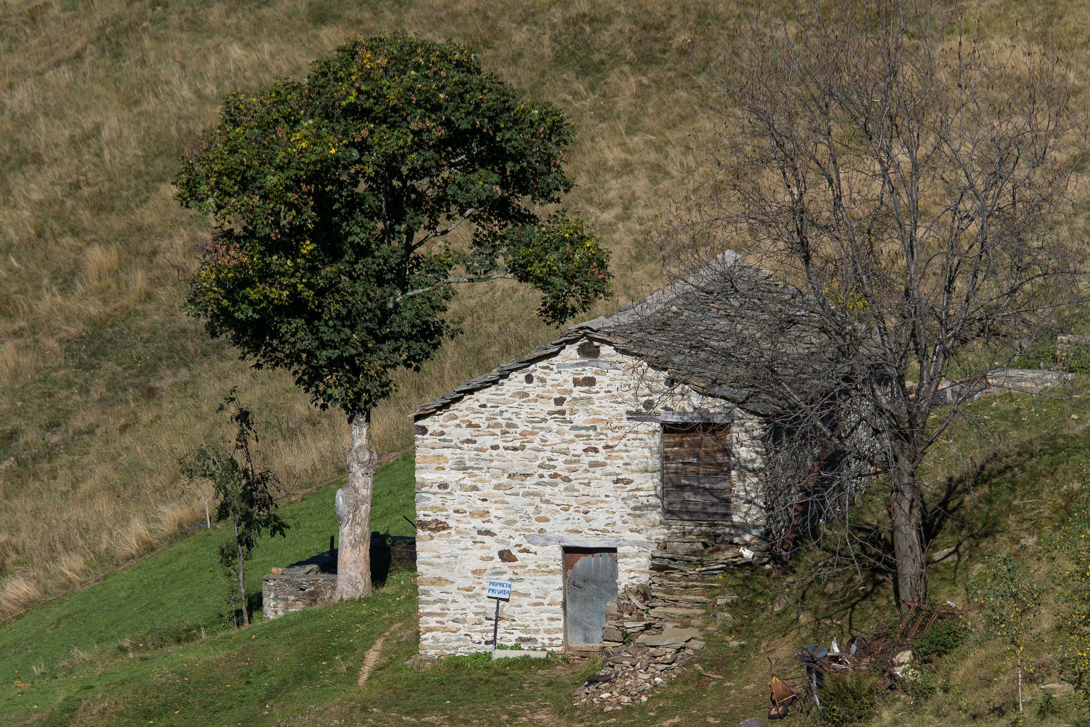 Die Wanderung beginnt in Vrù (1039 m), ein abgelegener Ortsteil der Gemeinde Cantoira im Val Grande di Lanzo. Bevor man aufbricht, sollte man sich unbedingt ein wenig Zeit nehmen, um die zahlreichen Besonderheiten dieses aussergewöhnlich schönen und authentischen kleinen Bergdorfes näher zu erkunden. In den verwinkelten Gassen gibt es viel zu entdecken, dekoratives und künstlerisches, unter anderem auch ein kleines und sehenswertes Dorfmuseum. Darin befindet sich ein sogenanntes mechanisches Krippenspiel, ein überaus interessantes und beeindruckendes Kunstwerk, das einst von einem der Bewohner von Vrù begonnen und später von seinem Sohn im Laufe der Jahre fortgeführt wurde. Eine wahrlich beeindruckende Arbeit mit ganz vielen filigranen Details, die man insbesondere in den Bewegungsabläufen der einzelnen Figuren beobachten kann. Weitere künstlerische Arbeiten befinden sich in dem nur wenige Schritte entfernten Weiler Rivirin (1106 m), wo man die Miniaturnachbauten des schiefen Turms von Pisa und der Mole Antonelliana von Torino bewundern kann. In Vrù leben nur noch eine handvoll Menschen dauerhaft, vor allem im Winter wirkt der Ort nahezu verlassen. Viele Häuser werden nur noch am Wochenende oder in den italienischen Ferien von den Nachfahren der früheren Bewohner aufgesucht, auch die kleine Dorfbar öffnet nur in den Sommermonaten am Samstag und Sonntag. Die Wiesen und das noch genutzte Kulturland in der Umgebung des Dorfes werden von einem ansässigen Bergbauern gemäht und gepflegt.