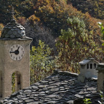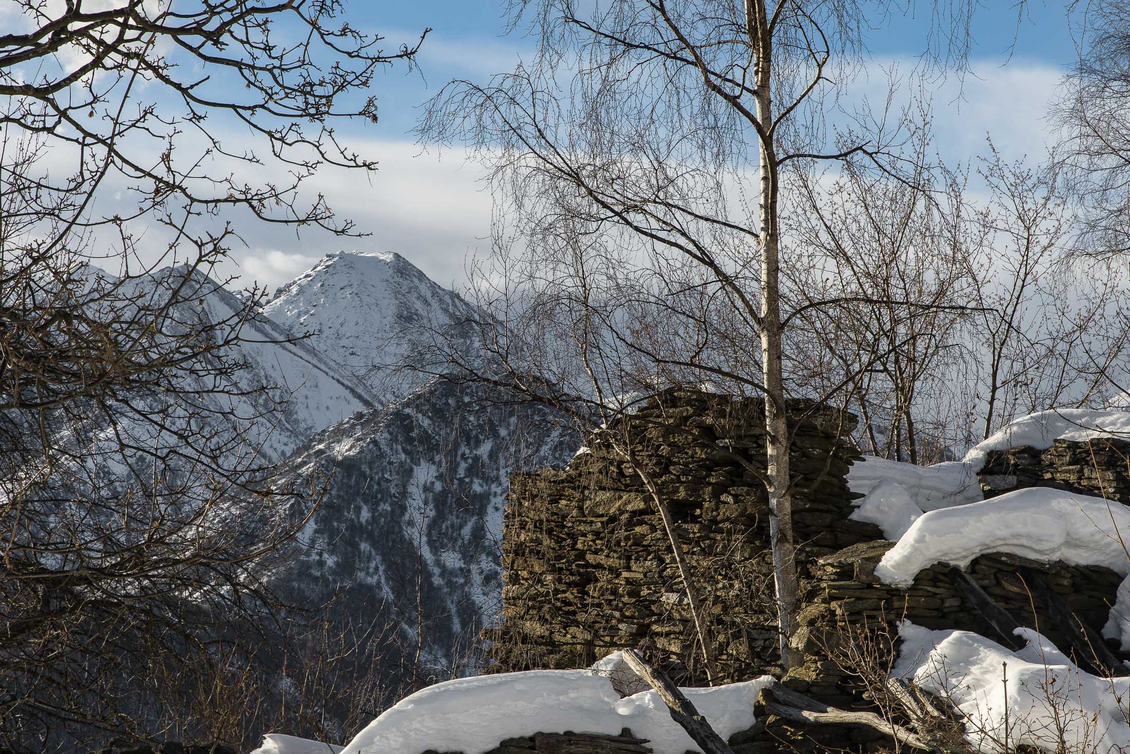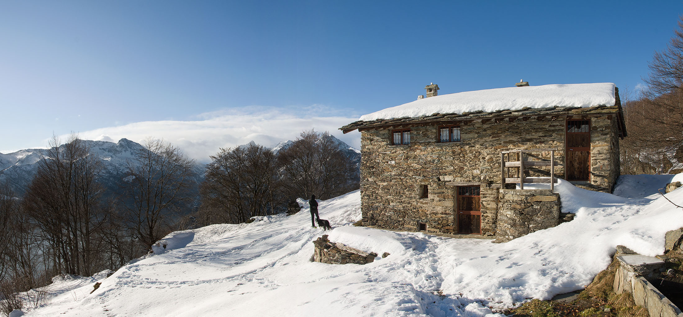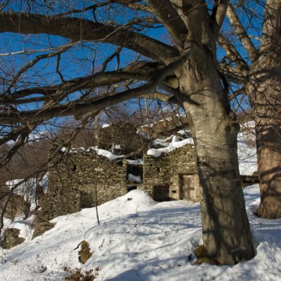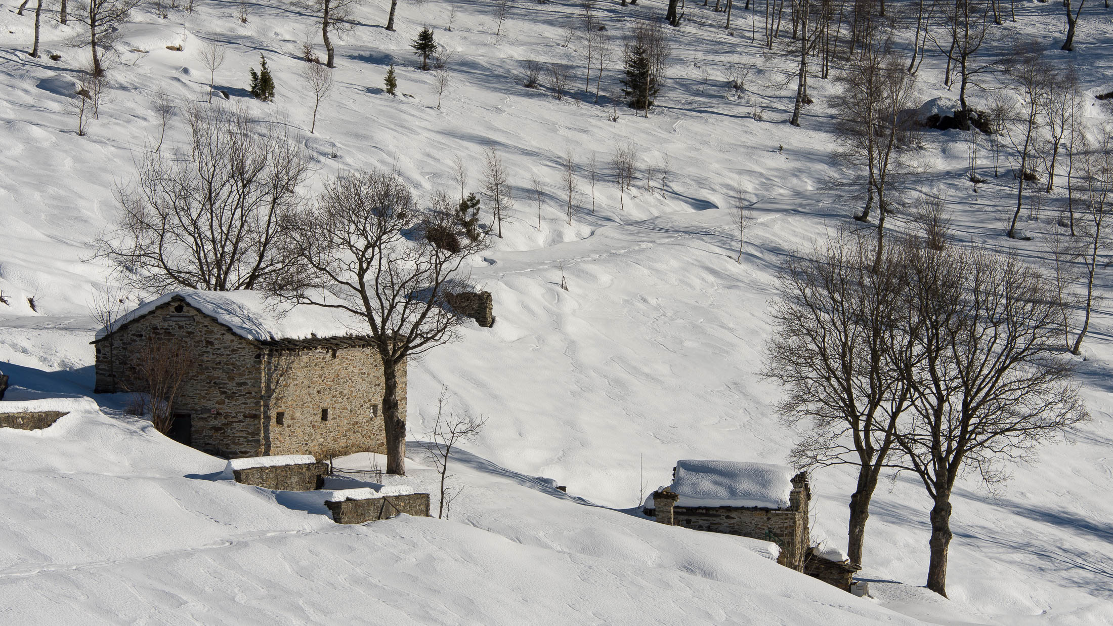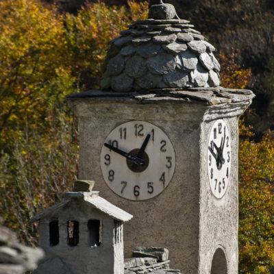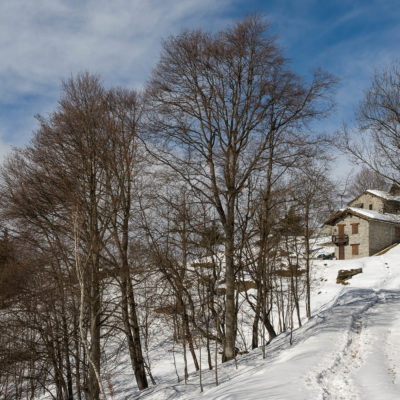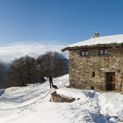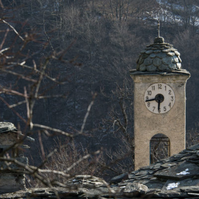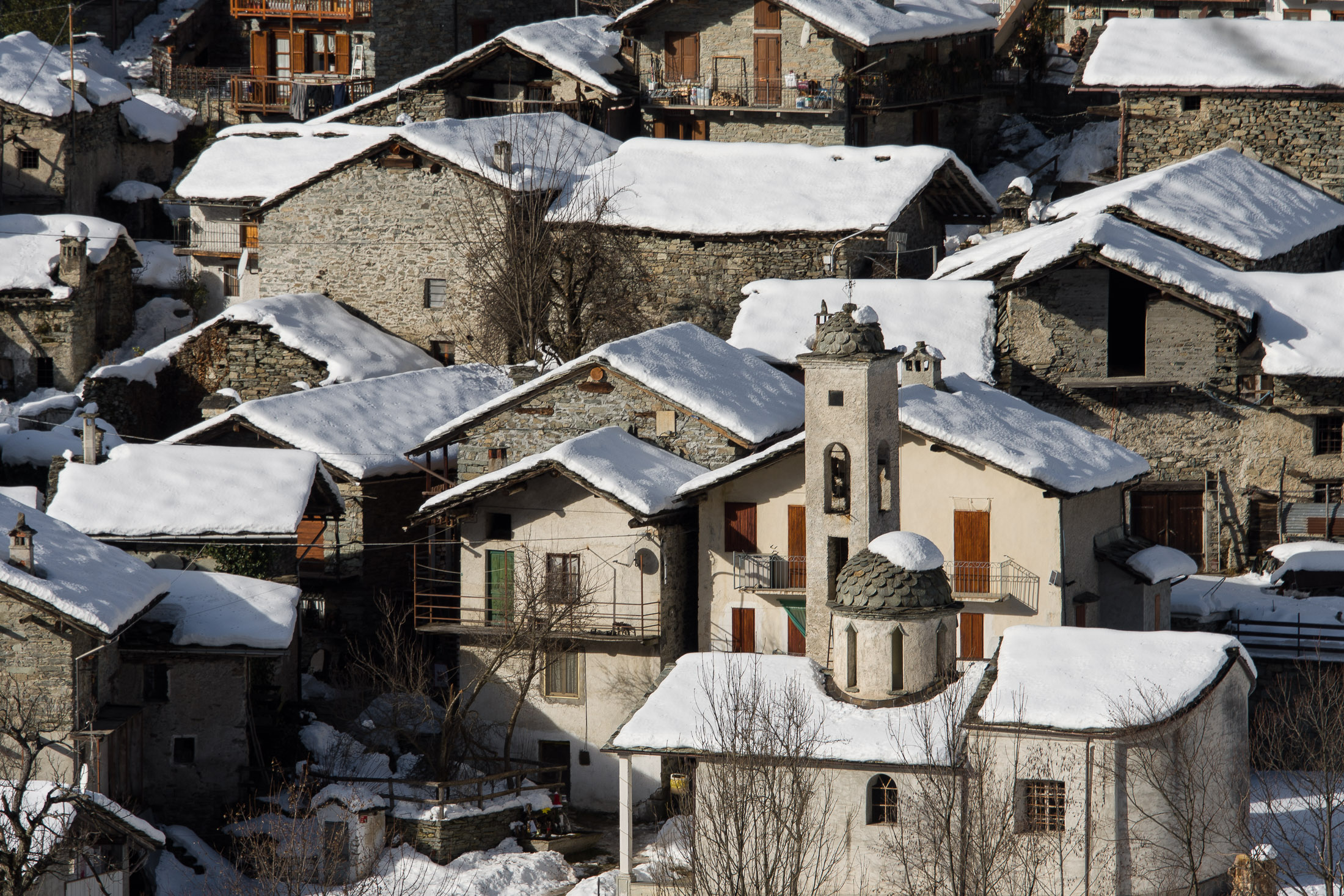 Die Wanderung beginnt in Vrù (1039 m), ein abgelegener Ortsteil der Gemeinde Cantoira im Val Grande di Lanzo. Bevor man aufbricht, sollte man sich unbedingt ein wenig Zeit nehmen, um die zahlreichen Besonderheiten dieses aussergewöhnlich schönen und authentischen kleinen Bergdorfes näher zu erkunden. In den verwinkelten Gassen gibt es viel zu entdecken, dekoratives und künstlerisches, unter anderem auch ein kleines und sehenswertes Dorfmuseum. Darin befindet sich ein sogenanntes mechanisches Krippenspiel, ein überaus interessantes und beeindruckendes Kunstwerk, das einst von einem der Bewohner von Vrù begonnen und später von seinem Sohn im Laufe der Jahre fortgeführt wurde. Eine wahrlich beeindruckende Arbeit mit ganz vielen filigranen Details, die man insbesondere in den Bewegungsabläufen der einzelnen Figuren beobachten kann. Weitere künstlerische Arbeiten befinden sich in dem nur wenige Schritte entfernten Weiler Rivirin (1106 m), wo man die Miniaturnachbauten des schiefen Turms von Pisa und der Mole Antonelliana von Torino bewundern kann. In Vrù leben nur noch eine handvoll Menschen dauerhaft, vor allem im Winter wirkt der Ort nahezu verlassen. Viele Häuser werden nur noch am Wochenende oder in den italienischen Ferien von den Nachfahren der früheren Bewohner aufgesucht, auch die kleine Dorfbar öffnet nur in den Sommermonaten am Samstag und Sonntag. Die Wiesen und das noch genutzte Kulturland in der Umgebung des Dorfes werden von einem ansässigen Bergbauern gemäht und gepflegt.