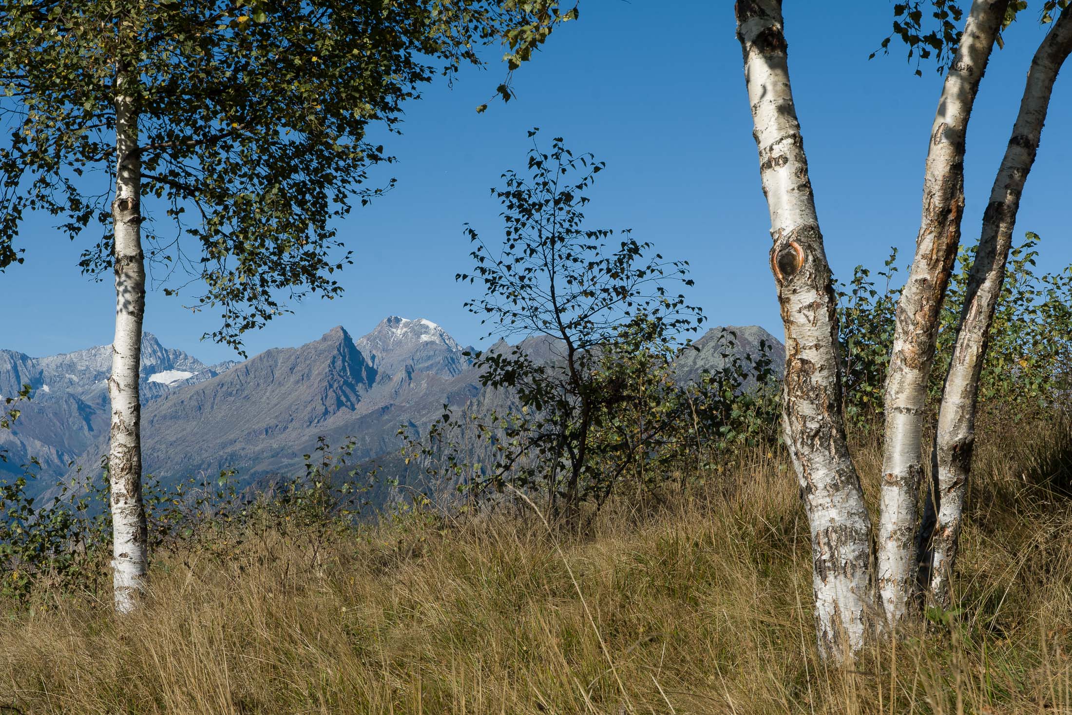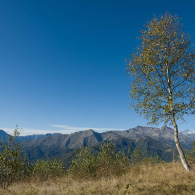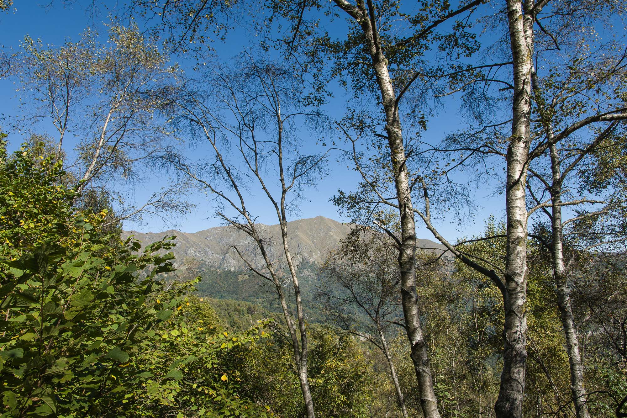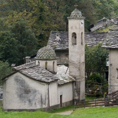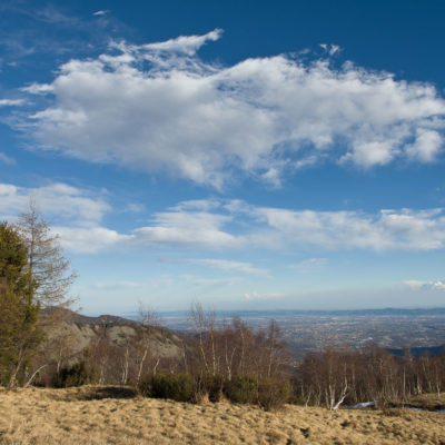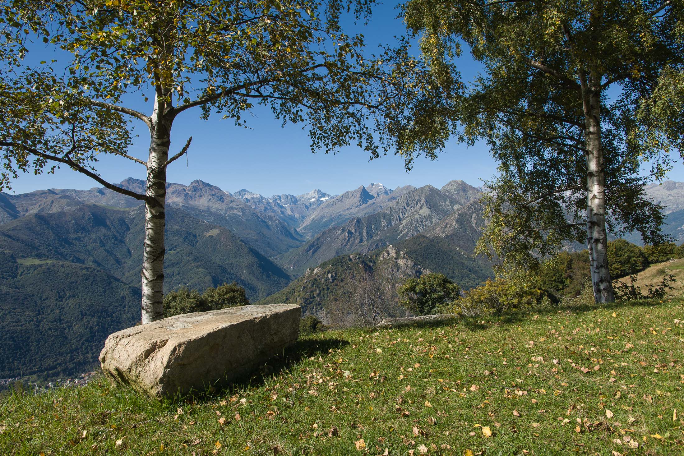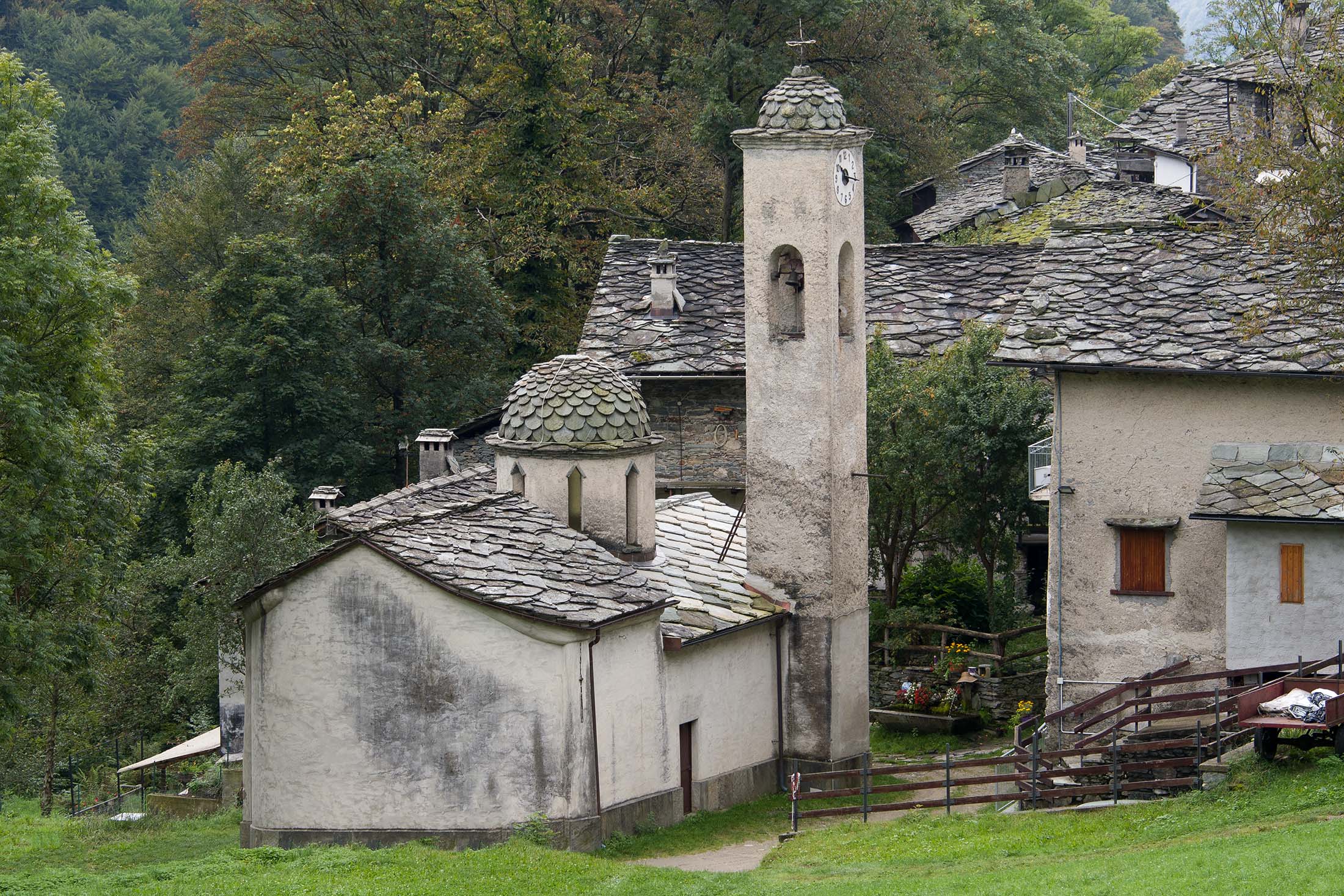 Am oberen Ortsrand von Vrù (1039 m) zweigt ein unbefestigter und für den öffentlichen Verkehr gesperrter Forstweg ab, der alsbald im schattigen Buchenwald verschwindet. In zahllosen Kehren windet sich der Weg hinauf nach Blinant (1304 m), eine schön gelegene kleine Alpsiedlung auf einer sonnigen Lichtung mit einigen hübsch renovierten Hütten, die heute als Wochenendhäuschen genutzt werden. Weiter oben lichtet sich der Wald und man wandert durch ein Weidegebiet, was jedoch immer mehr verbuscht und von Farnen, Alpenrosen und vielen Birken überwachsen ist. Der Weiterweg führt ein weiteres Stück durch lauschigen Wald, wenig später erreicht man den weitläufigen Colle San Giacomo (1460 m), mit tollem Panorama auf die Berge der drei Lanzo-Täler. Im Osten erstreckt sich die nahe piemontesische Tiefebene, bei klarem Wetter blickt man auf die Millionenmetropole von Turin. Der Colle San Giacomo befindet sich auf einer kleinen Hochebene auf dem langen Gratrücken, der das Val Grande di Lanzo von dem östlich gelegenen Valle Tesso trennt. Am Pass folgt man dem Wegweiser und steigt in Kürze hinab zu der im Sommer bestossenen Alpe San Giacomo (1414 m), von dort sind es nur noch wenige Schritte bis zur Cappella di San Giacomo. Die sehenswerte kleine Kirchenkapelle wird von Einheimischen in ehrenamtlicher Arbeit gepflegt und instandgehalten. Ein friedvoller Ort, das beschauliche Gotteshaus ist genau die richtige Kulisse zum Entschleunigen.