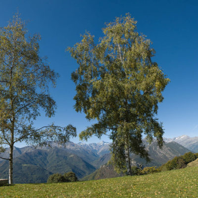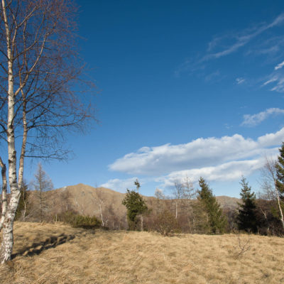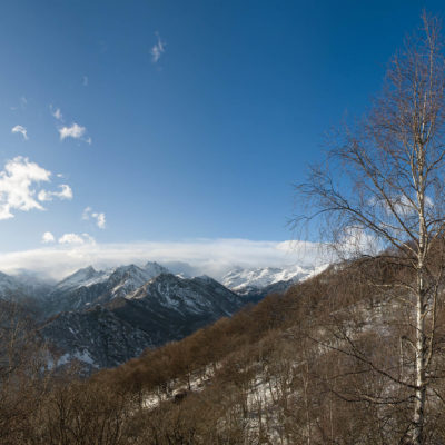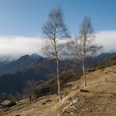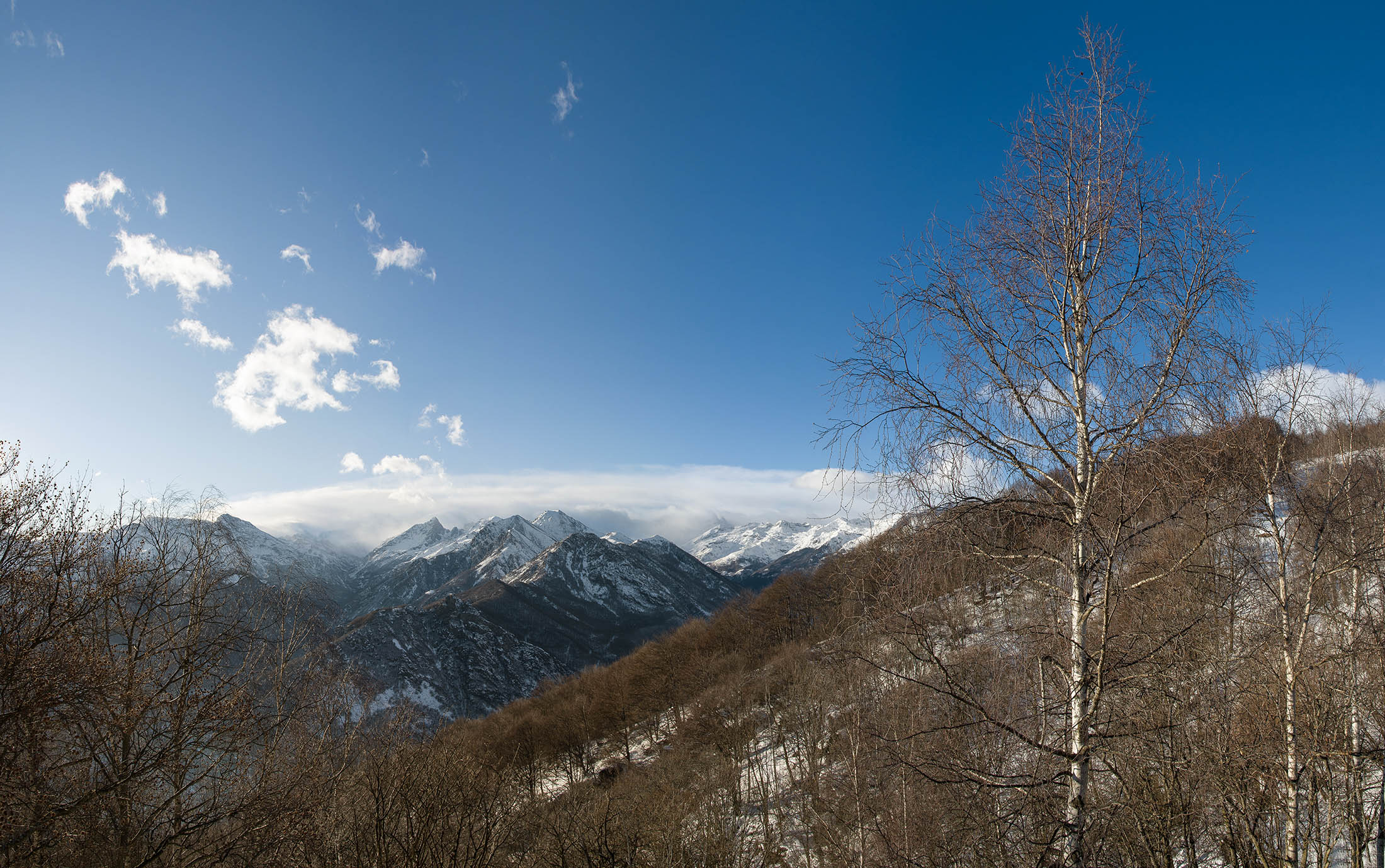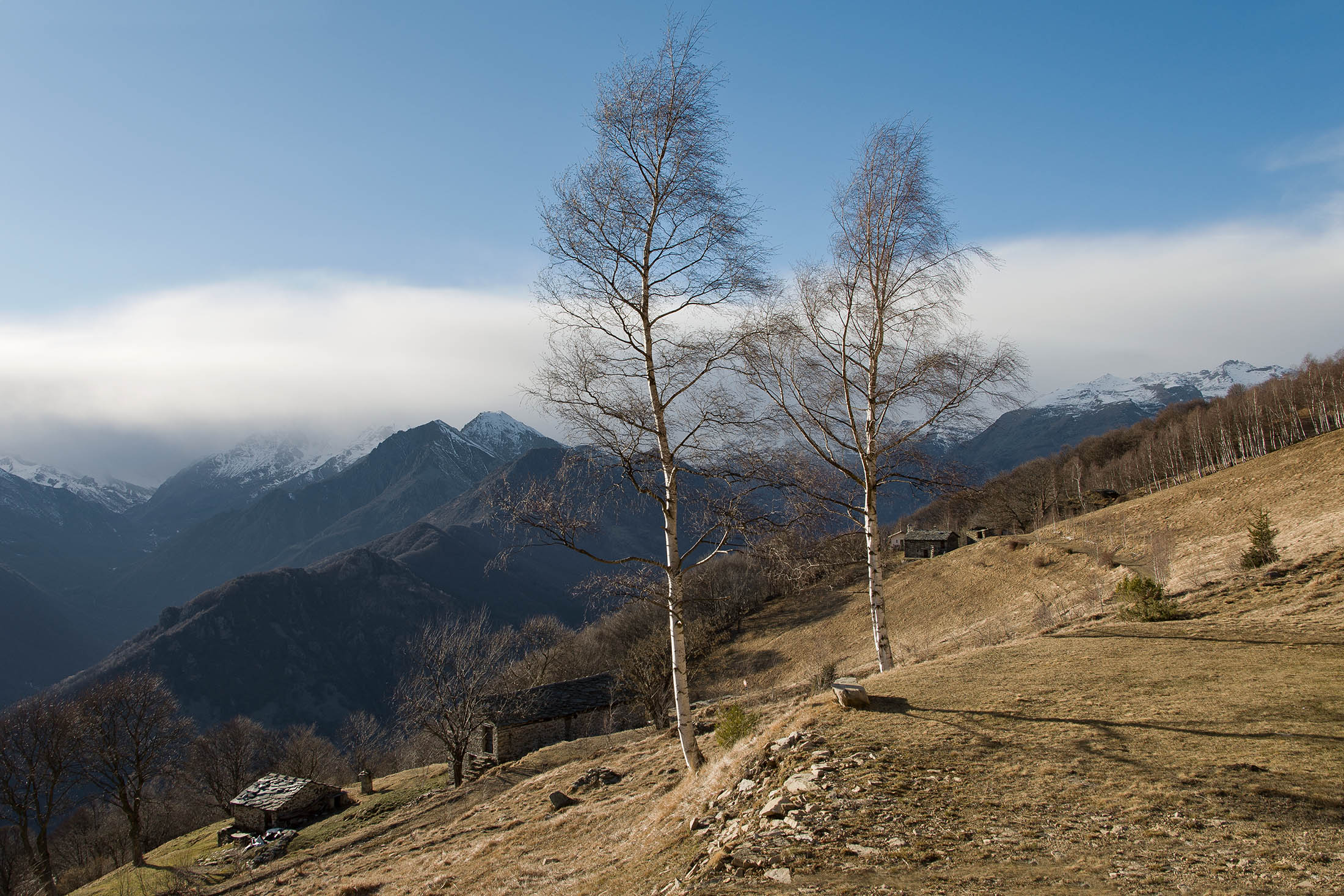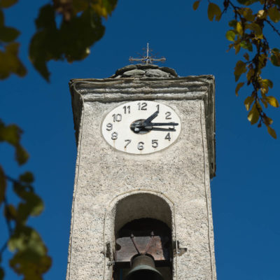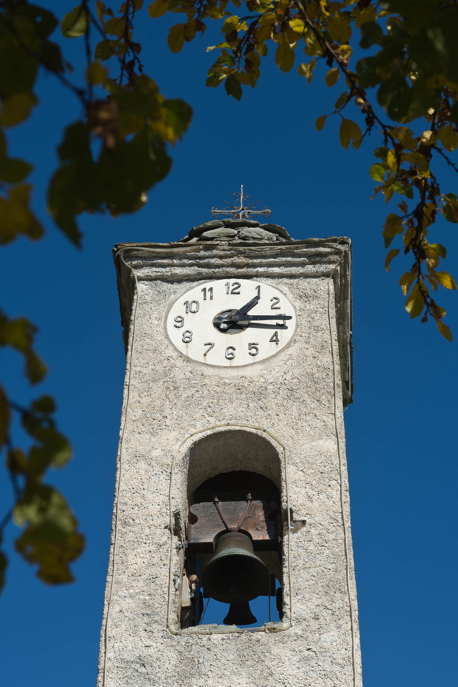 Am oberen Ortsrand von Vrù (1039 m) zweigt ein unbefestigter und für den öffentlichen Verkehr gesperrter Forstweg ab, der alsbald im schattigen Buchenwald verschwindet. In zahllosen Kehren windet sich der Weg hinauf nach Blinant (1304 m), eine schön gelegene kleine Alpsiedlung auf einer sonnigen Lichtung mit einigen hübsch renovierten Hütten, die heute als Wochenendhäuschen genutzt werden. Weiter oben lichtet sich der Wald und man wandert durch ein Weidegebiet, was jedoch immer mehr verbuscht und von Farnen, Alpenrosen und vielen Birken überwachsen ist. Der Weiterweg führt ein weiteres Stück durch lauschigen Wald, wenig später erreicht man den weitläufigen Colle San Giacomo (1460 m), mit tollem Panorama auf die Berge der drei Lanzo-Täler. Im Osten erstreckt sich die nahe piemontesische Tiefebene, bei klarem Wetter blickt man auf die Millionenmetropole von Turin. Der Colle San Giacomo befindet sich auf einer kleinen Hochebene auf dem langen Gratrücken, der das Val Grande di Lanzo von dem östlich gelegenen Valle Tesso trennt. Am Pass folgt man dem Wegweiser und steigt in Kürze hinab zu der im Sommer bestossenen Alpe San Giacomo (1414 m), von dort sind es nur noch wenige Schritte bis zur Cappella di San Giacomo. Die sehenswerte kleine Kirchenkapelle wird von Einheimischen in ehrenamtlicher Arbeit gepflegt und instandgehalten. Ein friedvoller Ort, das beschauliche Gotteshaus ist genau die richtige Kulisse zum Entschleunigen.
